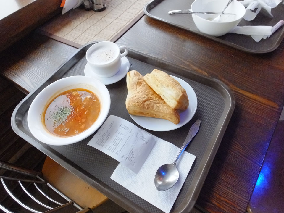 Ich holte mir ’ne warme Soljanka, wollte eigentlich noch eine Mütze kaufen aber fand auch im Einkaufszentrum nichts gescheites. Wieder zurück im Hostel erst kalten, dann heißen Tee. Blog tippen und dann ein paar Vorbereitungen für die nächtliche Abreise.