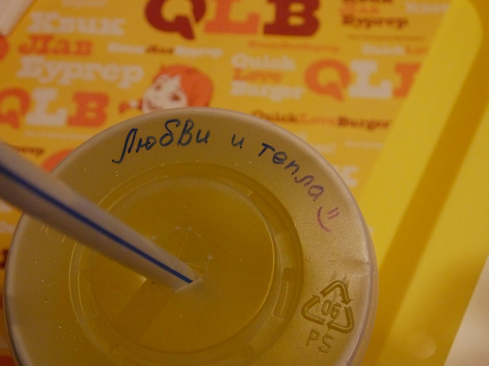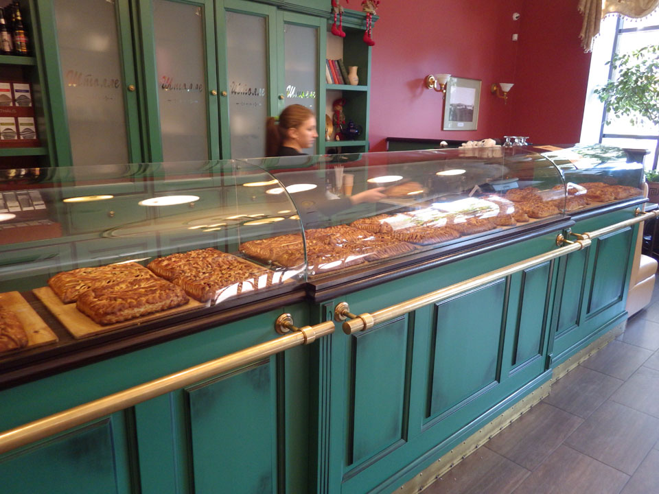 Da hätte ich noch länger schlafen können aber gut. Eine Schwedin kam auch, wir redeten bissel und gingen was essen. In einem Gebäckladen gab’s auch Borschtsch und noch ein Hasen/Pilz-Tasche, die wir uns teilten. Der Cappuccino war auch gut – ein sehr gutes essen für je 350 RUB.