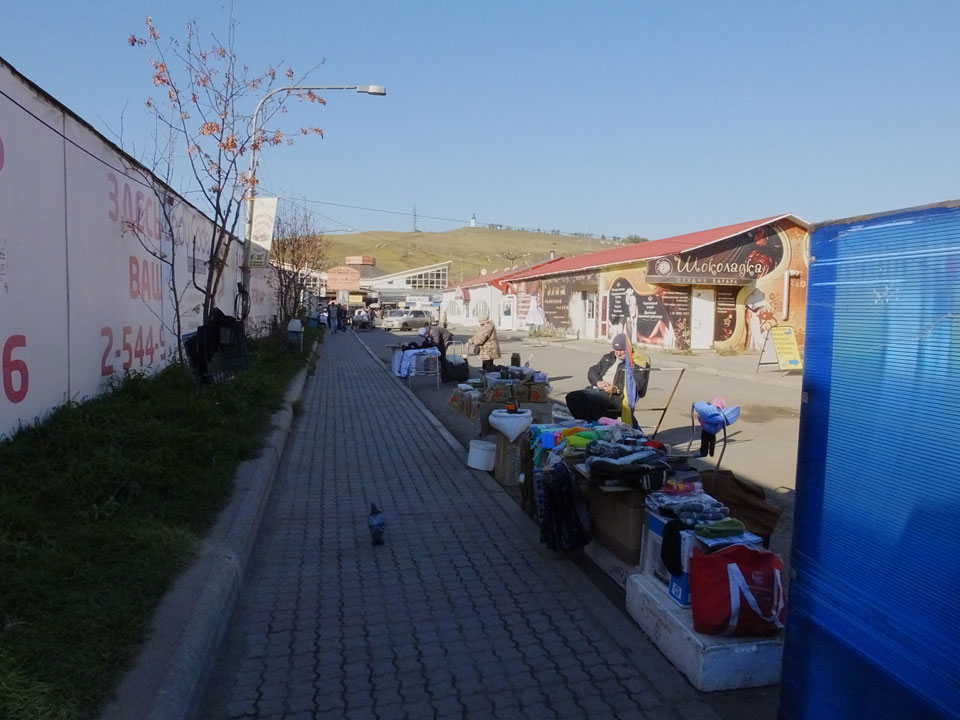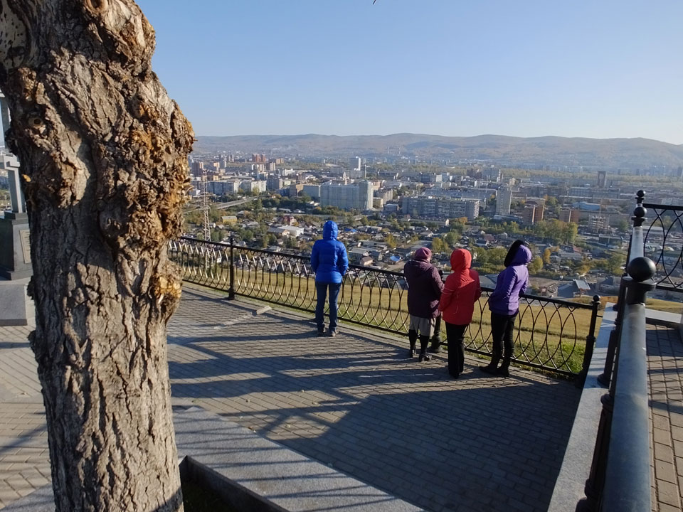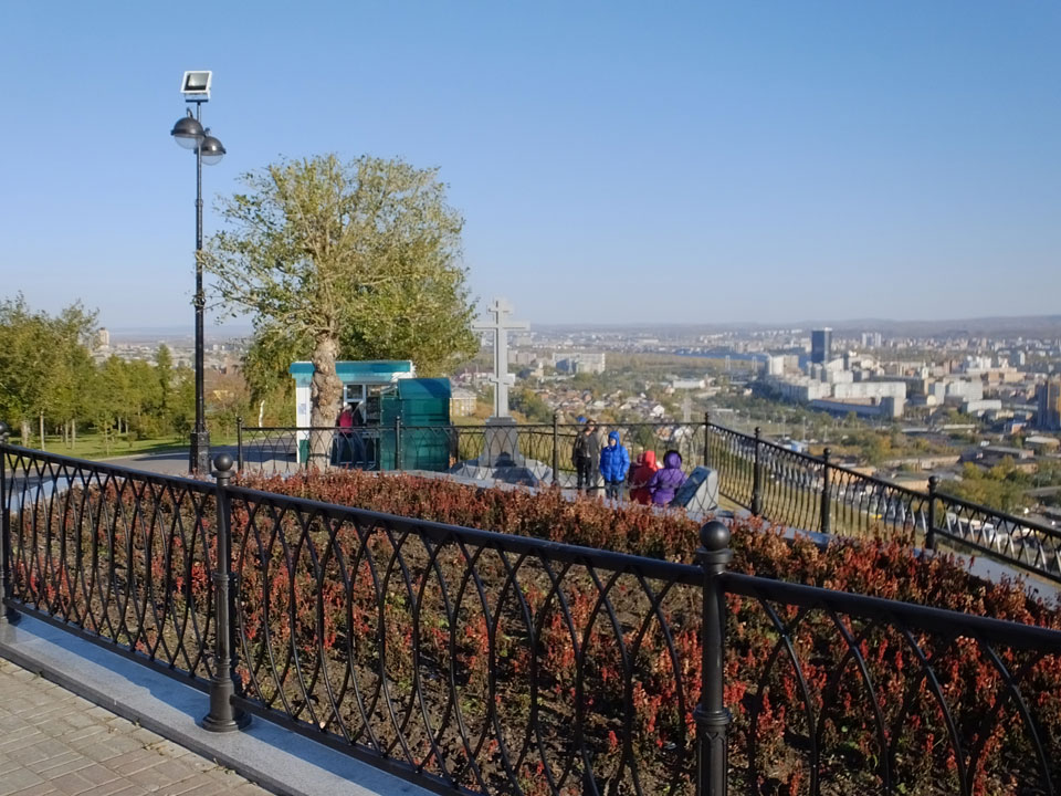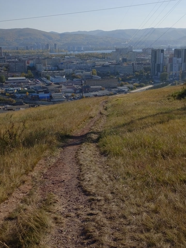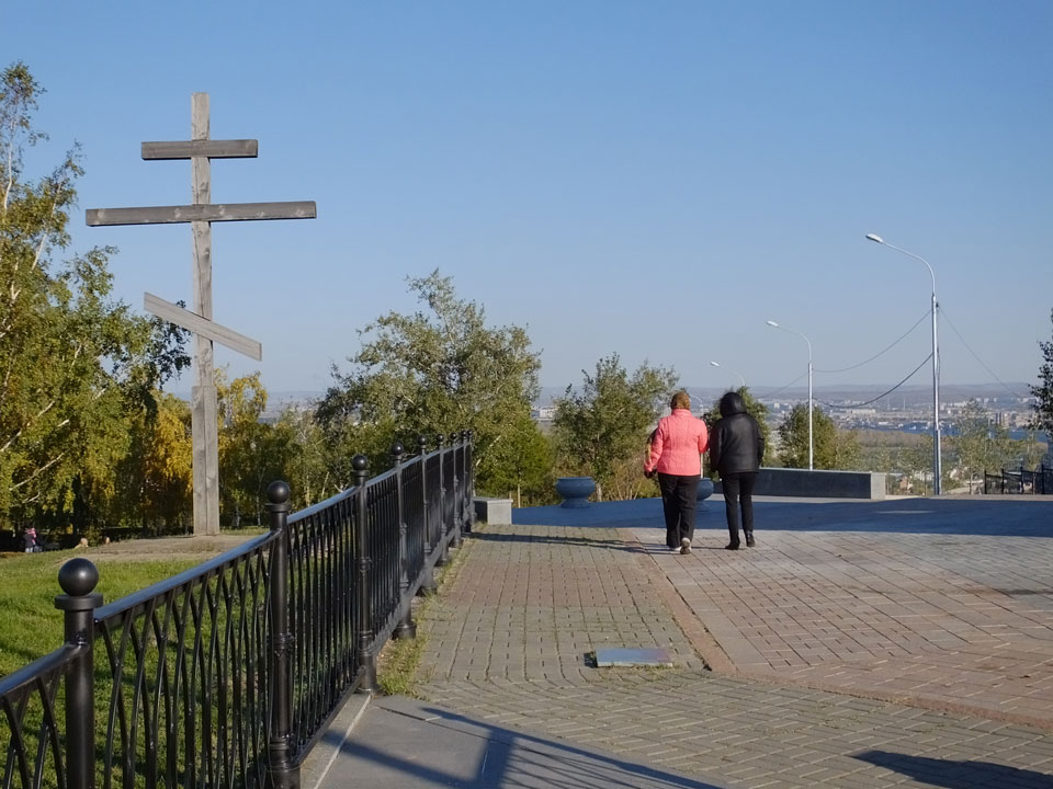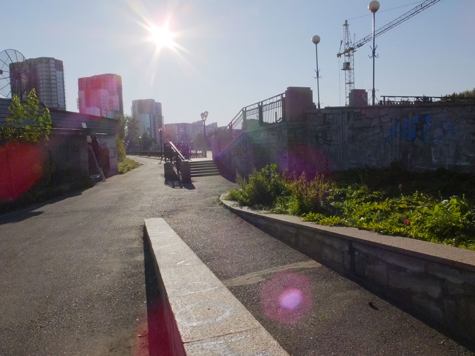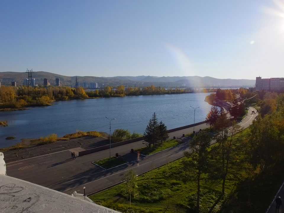 Die Schwedin wollte zum Natur-Reservat, ich zurück zum Hostel für meine Camera. Ich ging dann Nachmittags Richtung Markt, dann den Hügel zu einem Aussichtspunkt hoch. Voll müde aber bissel Sport und frische Luft zum Sonntag taten auch gut. Wieer runter mit einem abenteuerlichen Abstieg wanderte ich weiter durch Krasnoyarsk bei herrlichem Wetter.