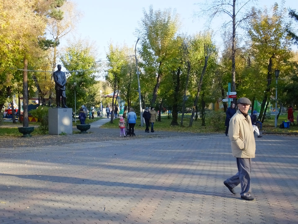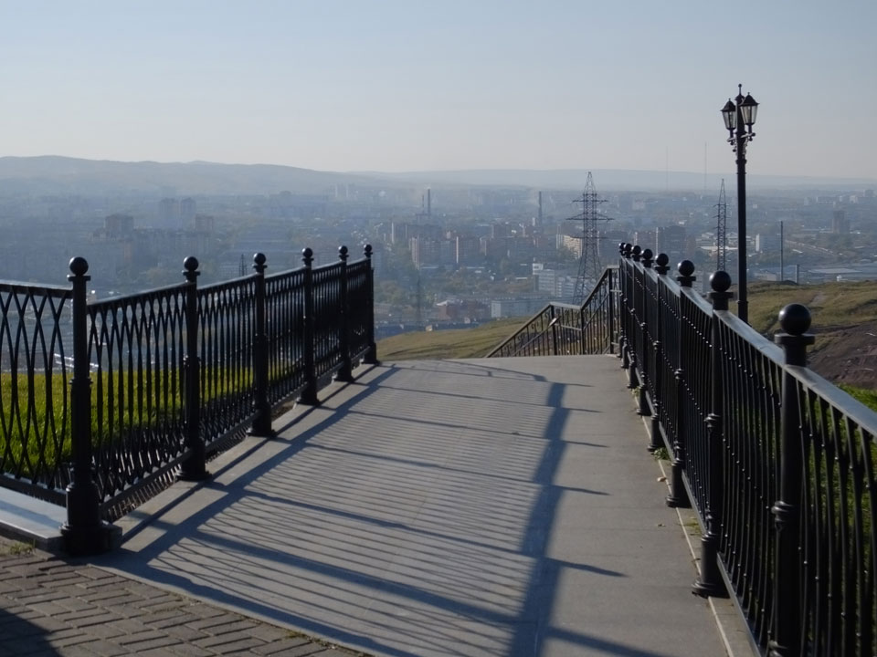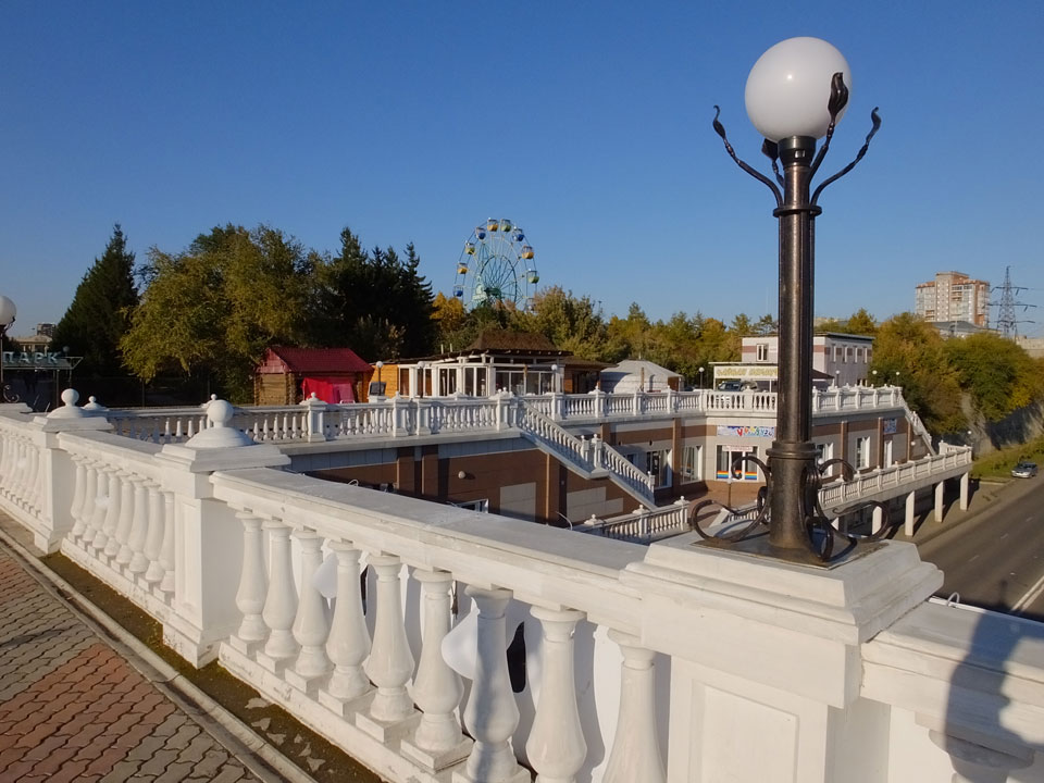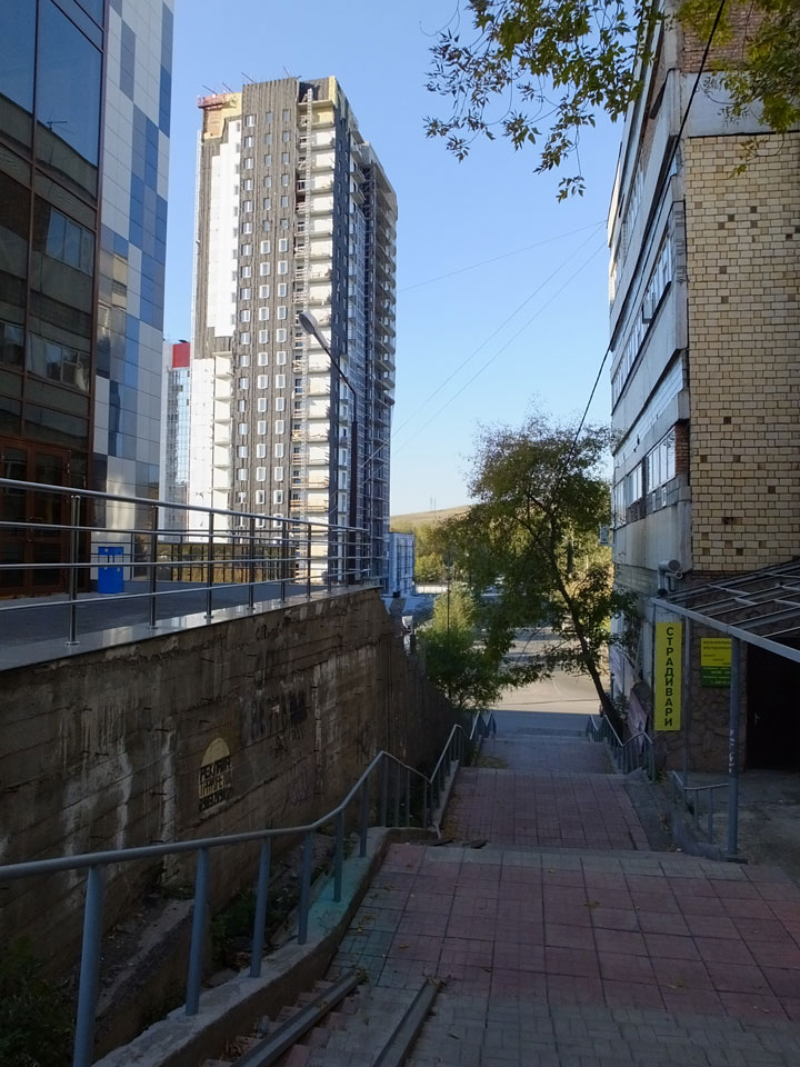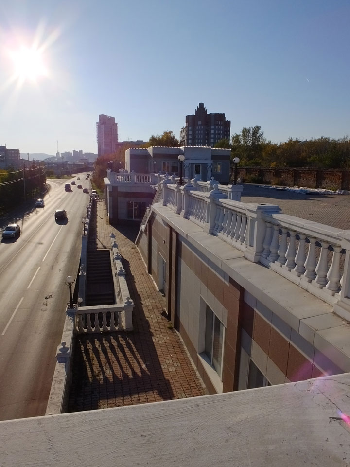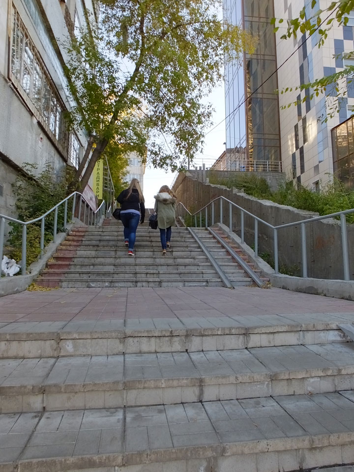 Die Schwedin wollte zum Natur-Reservat, ich zurück zum Hostel für meine Camera. Ich ging dann Nachmittags Richtung Markt, dann den Hügel zu einem Aussichtspunkt hoch. Voll müde aber bissel Sport und frische Luft zum Sonntag taten auch gut. Wieer runter mit einem abenteuerlichen Abstieg wanderte ich weiter durch Krasnoyarsk bei herrlichem Wetter.