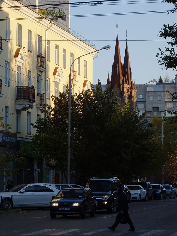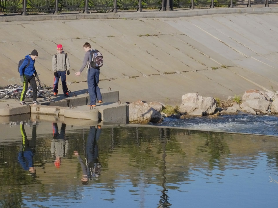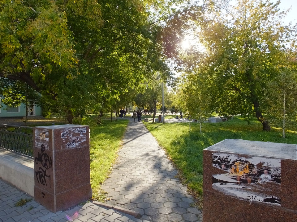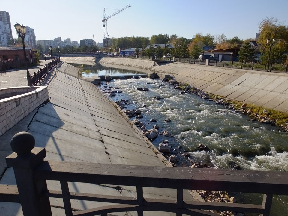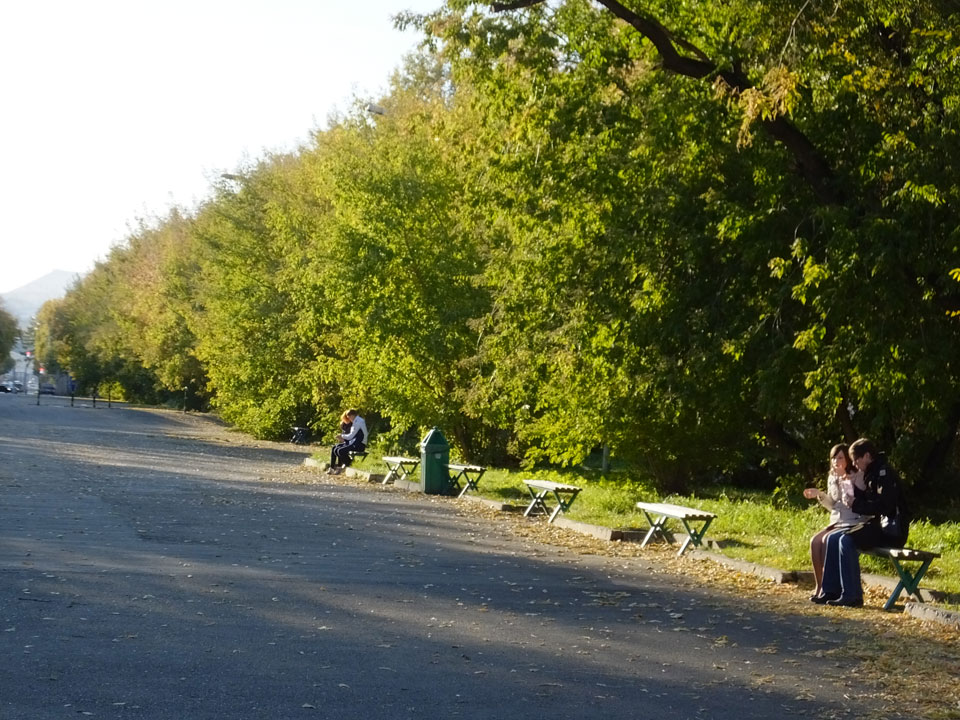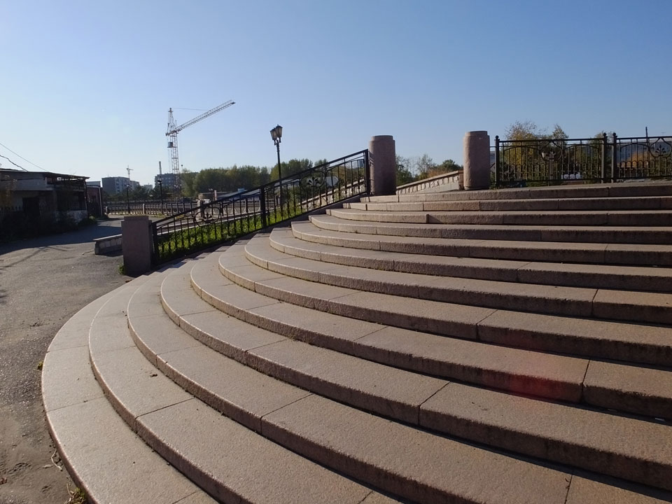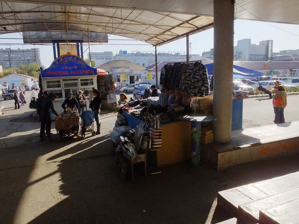 Die Schwedin wollte zum Natur-Reservat, ich zurück zum Hostel für meine Camera. Ich ging dann Nachmittags Richtung Markt, dann den Hügel zu einem Aussichtspunkt hoch. Voll müde aber bissel Sport und frische Luft zum Sonntag taten auch gut. Wieer runter mit einem abenteuerlichen Abstieg wanderte ich weiter durch Krasnoyarsk bei herrlichem Wetter.