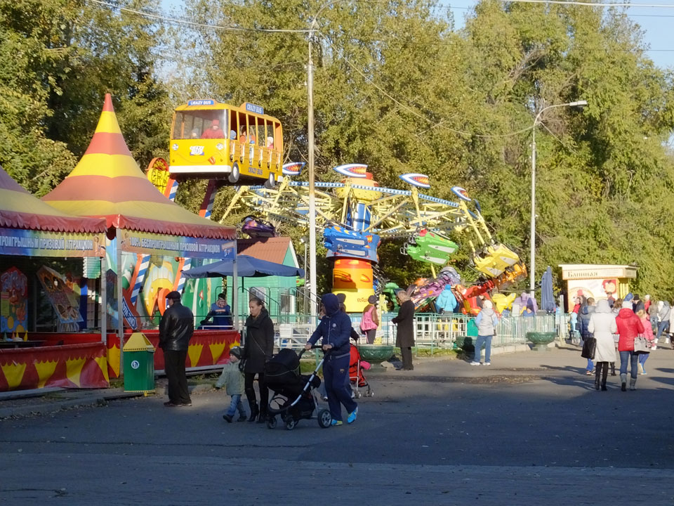 Im zentralen Par gab’s viele Fahrgeschäfte. Ich knipste bissel herum und wollte schließlich zum Bahnhof, wo ich meine nächsten zwei Ticktes für die Weiterfahrt am Automaten ausdrucken ließ.