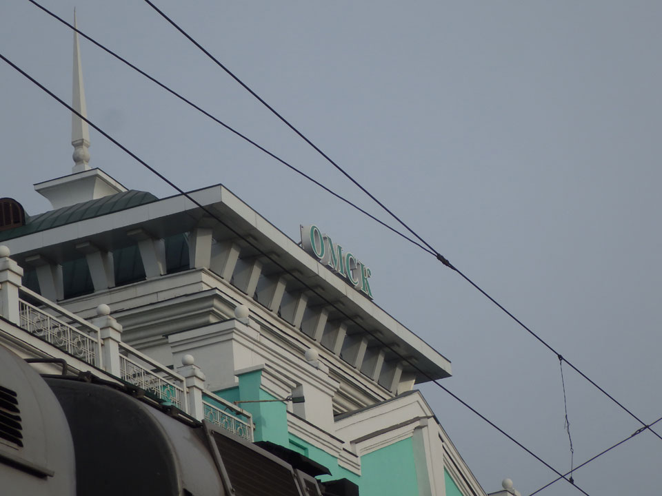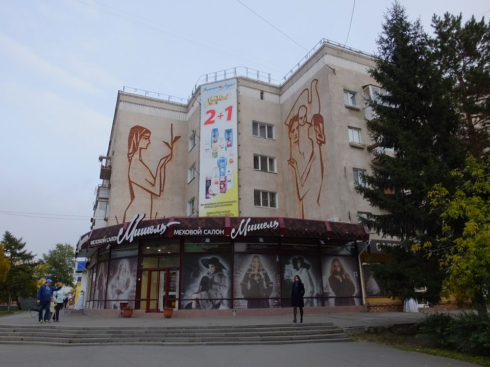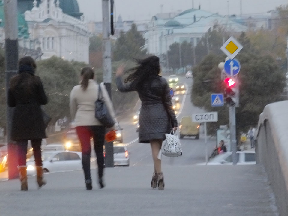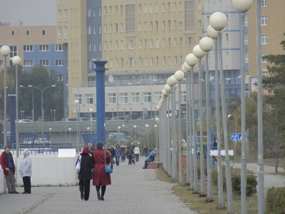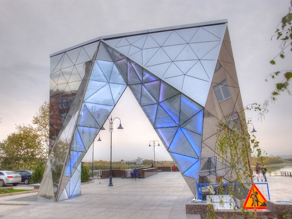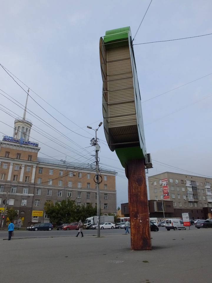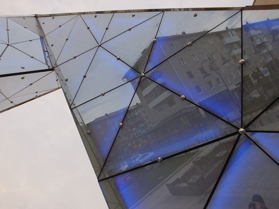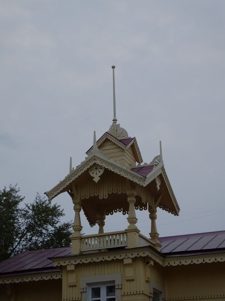 Weiter auf einer Fußgängerzone. Da ein paar Polygon-Strukturen und Museen. Ich wanderte weiter zur Shopping-Gegend über den Fluss. Da war Omsk überraschend teuer. Ein paar Leute können sich die Westklamotten eben überall leisten. Es wurde inzwischen dunkel und so fand ich auch noch eine Kirche, die ganz nett aussah. Ich habe somit in den reichlich 3 Stunden das meiste von Omsk gesehen.