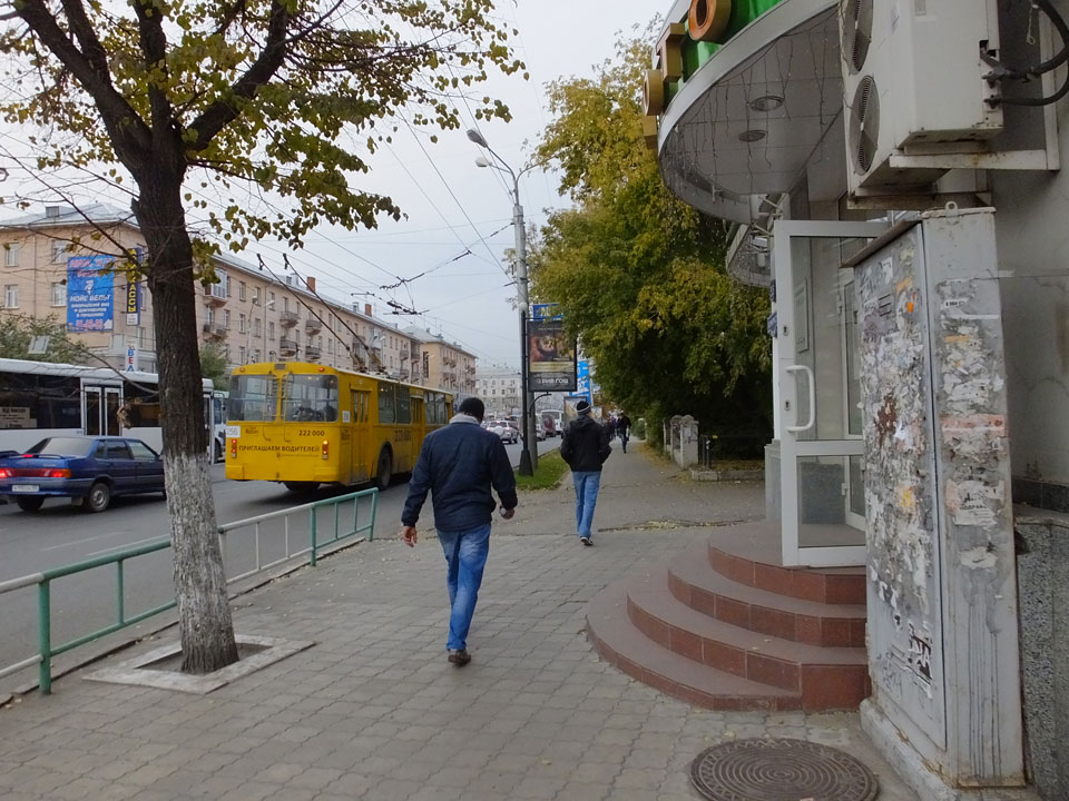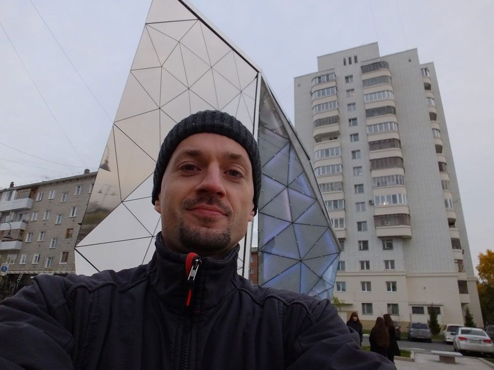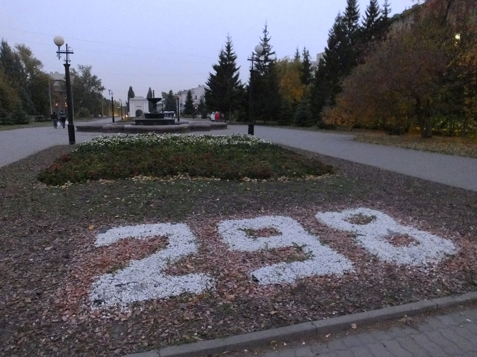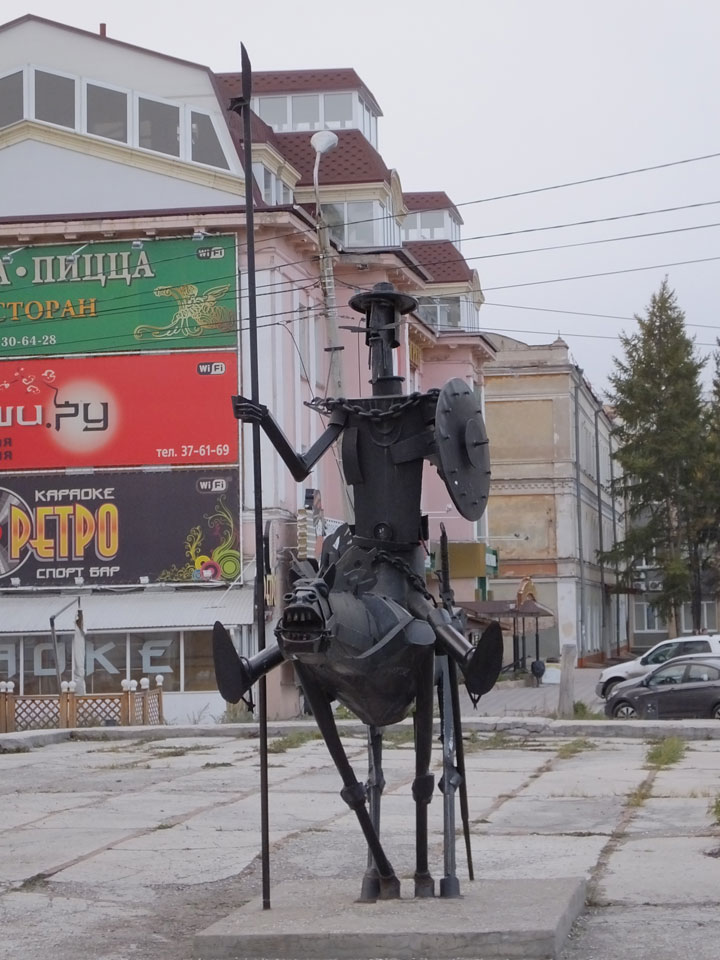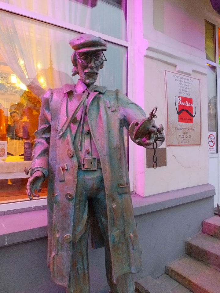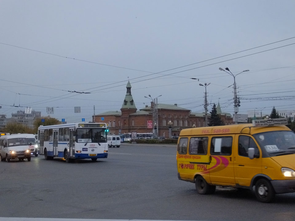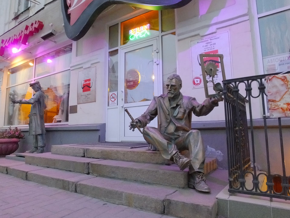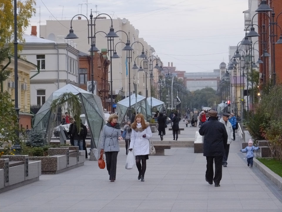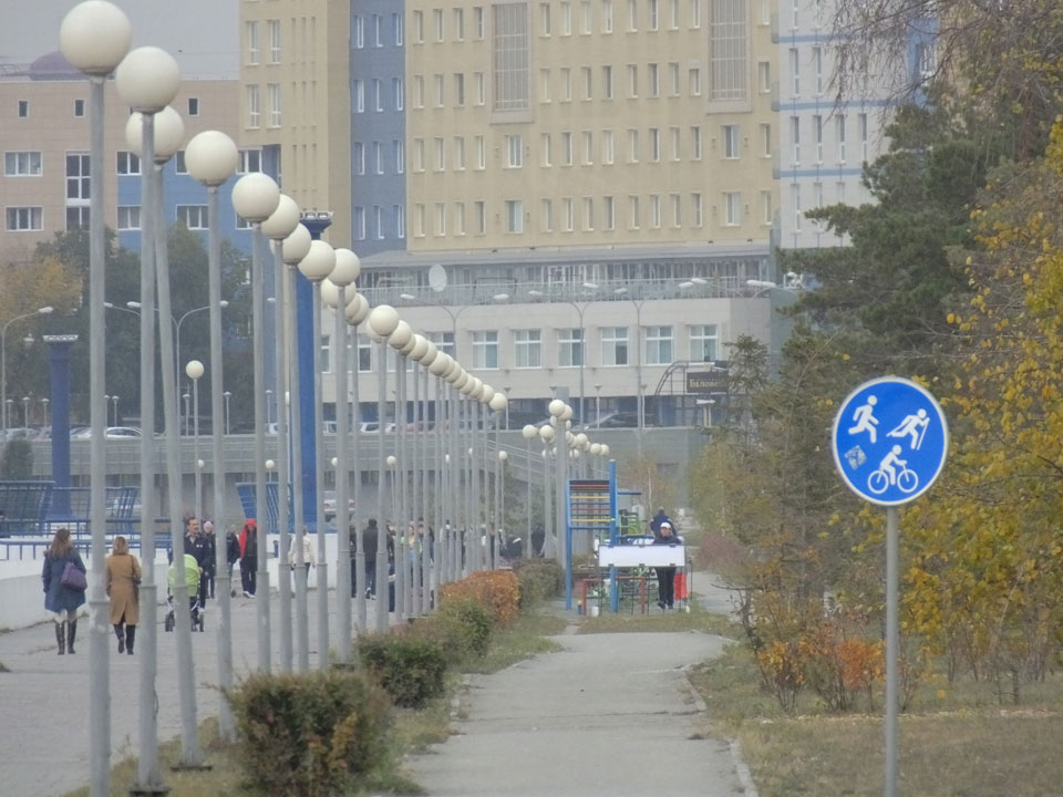 Weiter auf einer Fußgängerzone. Da ein paar Polygon-Strukturen und Museen. Ich wanderte weiter zur Shopping-Gegend über den Fluss. Da war Omsk überraschend teuer. Ein paar Leute können sich die Westklamotten eben überall leisten. Es wurde inzwischen dunkel und so fand ich auch noch eine Kirche, die ganz nett aussah. Ich habe somit in den reichlich 3 Stunden das meiste von Omsk gesehen.