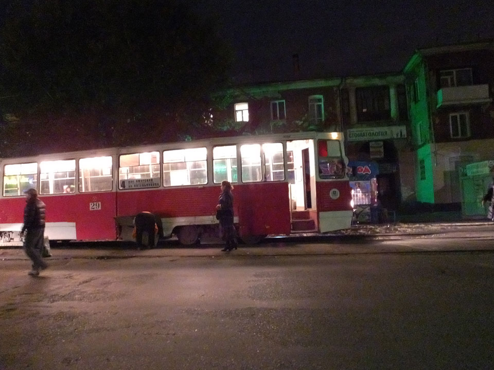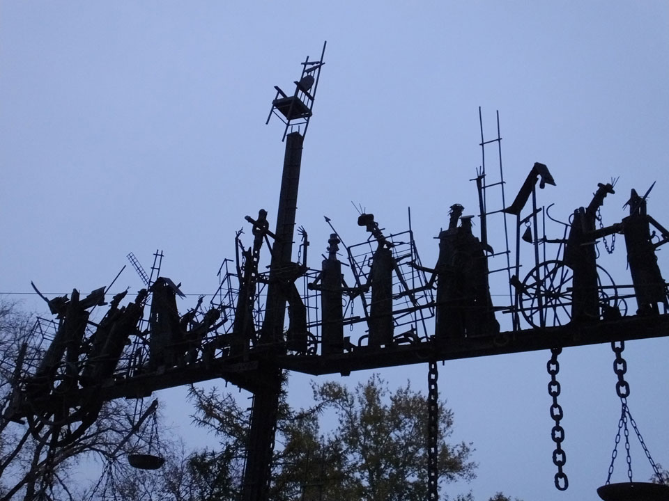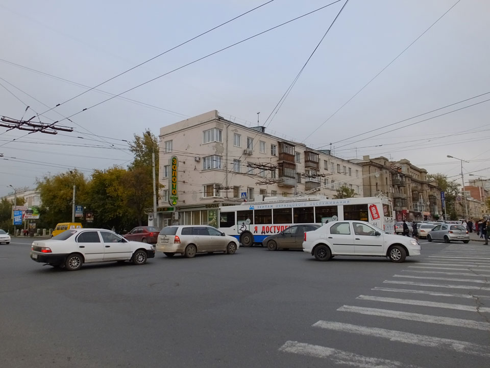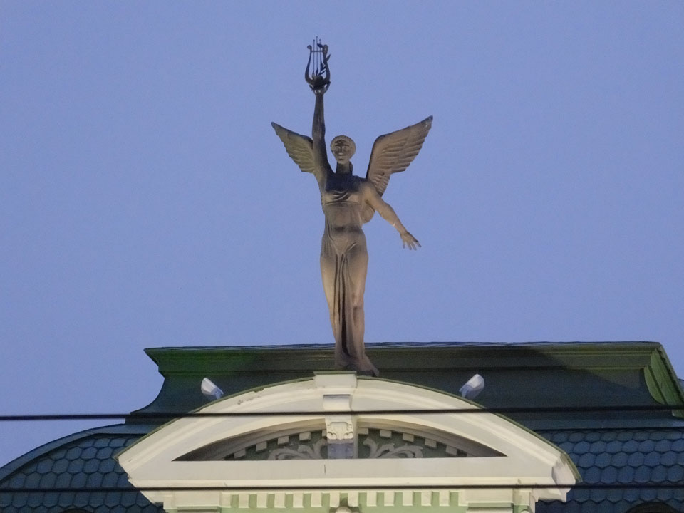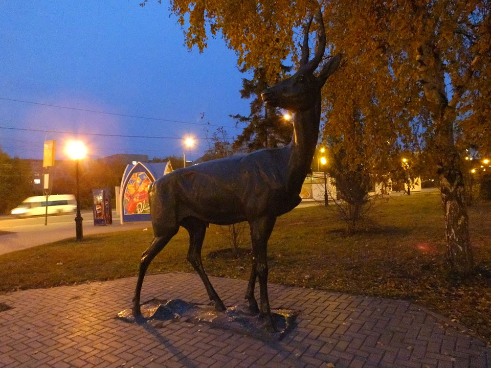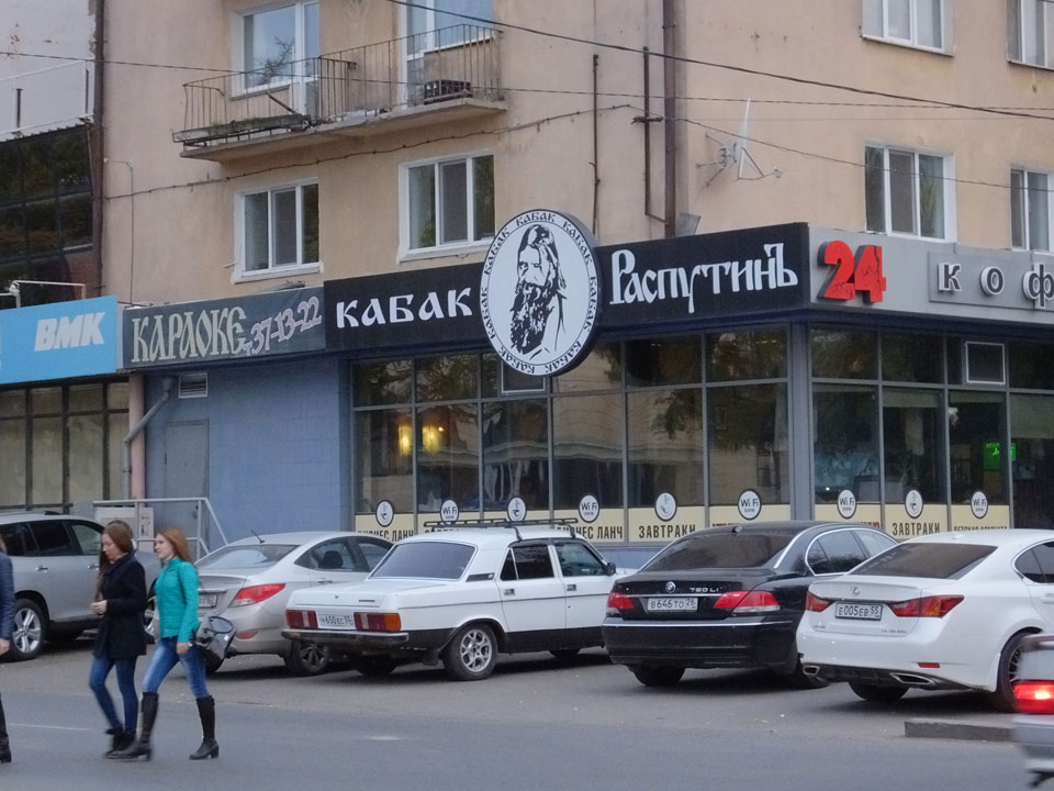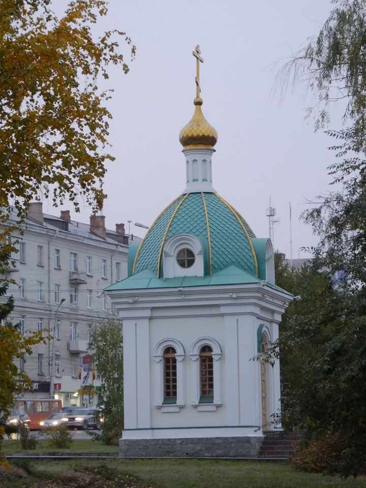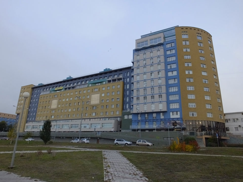 Weiter auf einer Fußgängerzone. Da ein paar Polygon-Strukturen und Museen. Ich wanderte weiter zur Shopping-Gegend über den Fluss. Da war Omsk überraschend teuer. Ein paar Leute können sich die Westklamotten eben überall leisten. Es wurde inzwischen dunkel und so fand ich auch noch eine Kirche, die ganz nett aussah. Ich habe somit in den reichlich 3 Stunden das meiste von Omsk gesehen.