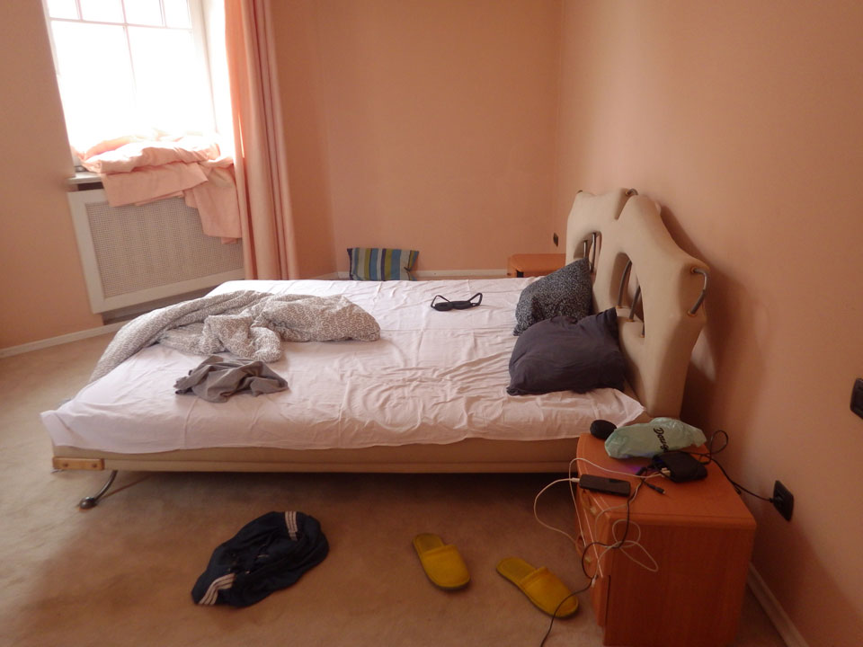 Die Zeit war reif für’s Hostel, das ich auch fand. Nur leider machte da niemand auf. Wieder eine SMS an’s Hostel, der Typ kam dann auch. In Hostelworld haben sie Apartment 6 angegeben, ist inzwischen Apartment 5. Dort dann war aber nichts von Hostel zu sehen – eine Müllhalde. Sie bauen gerade um und ich werde in der „Villa“ schlafen. Alles sehr chaotisch hier. In Der Villa, vielleicht 15 Minuten von der guten bahnhofsnahen Location des Apartments entfernt, dann das gleiche. Alles Mögliche lag da rum, als hätte ’ne Bombe eingeschlagen. Ich bekam ein Zimmer mit großem Bett aber offensichtlich ohne frische Bettwäsche. Na gut, ich zog ein T-Shirt als Kopfkissenbezug und legte mich eine Weile hin.