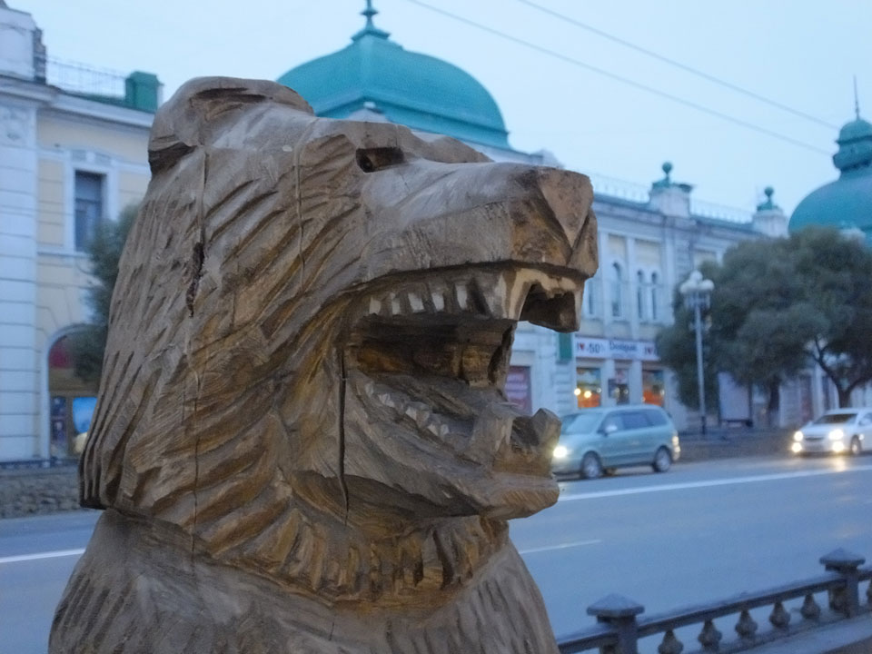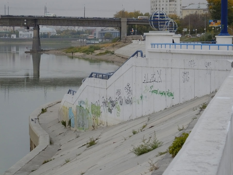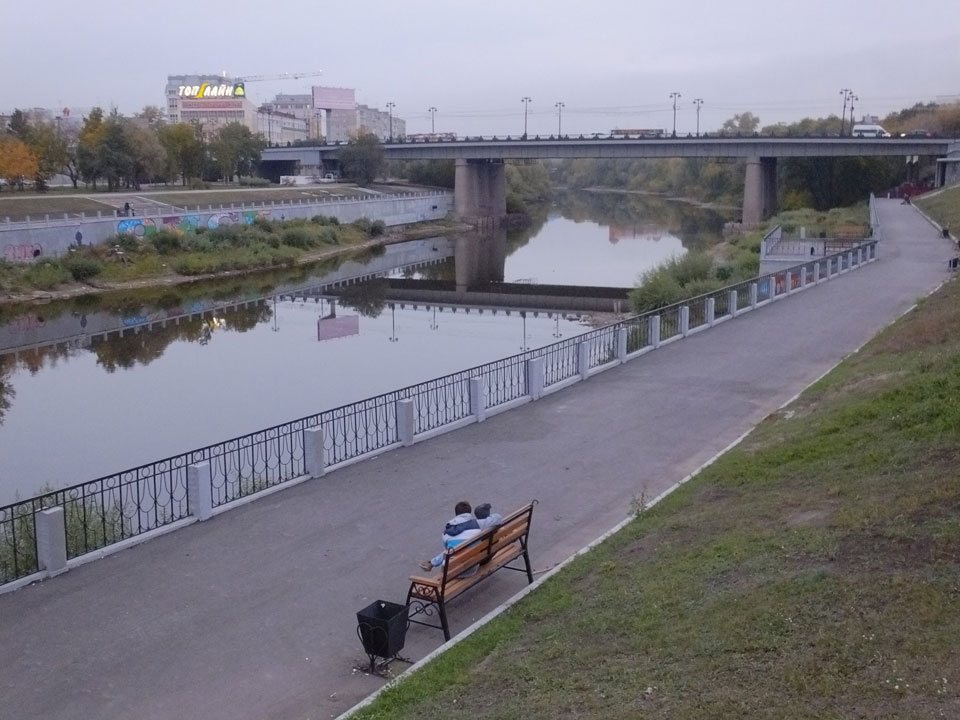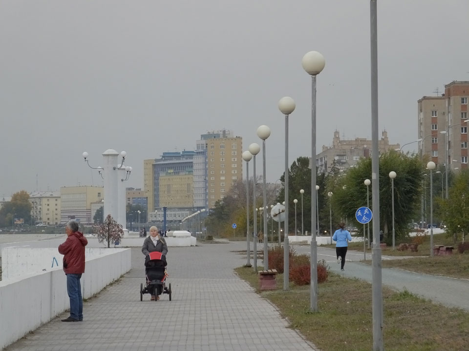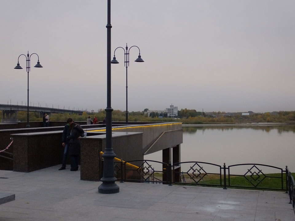 Gegen 17:00 dann machte ich mich auf den Weg, die Stadt zu sehen. Ohne Google Maps wäre ich immer aufgeschmissen. So wanderte ich am Fluß entlang Richtung Innenstadt, was ein ganz schöner Weg wurde. Omsk war dort dann ganz nett. Die Stadt liegt ja kaum auf der touristischen Landkarte. Auch hier guckten die Leute wegen meiner Camera.