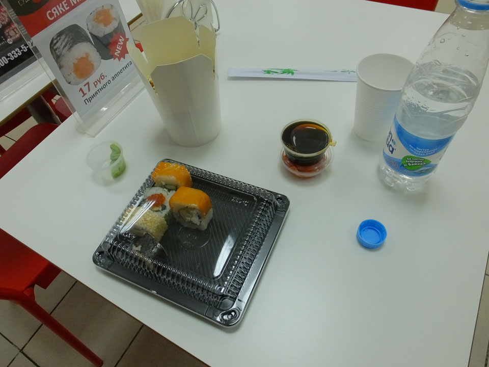 Ich hatte erst mal Hunger und hatte im Sushi Markt ein gutes Essen. Das Sushi wird da massenproduziert und man kann sich die Stückchen einzel kaufen. Zwischen 17 und 30 RUB eigentlich ein ganz gutes Prinzip.