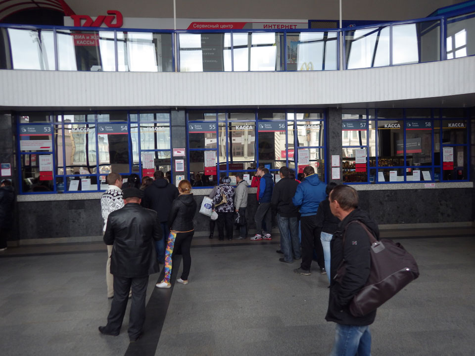 Auf den ersten Blick grau und russische, unattraktriv. Ich wollte mir das morgige Ticket bestellen, ging durch einen endlosen Tunnel zum Hauptbahnhof und stand dann sicher ’ne Stunde. So hatte ich die Fahrt nach Moskau und Orel für morgen endlich. Die letzte Etappe steht.