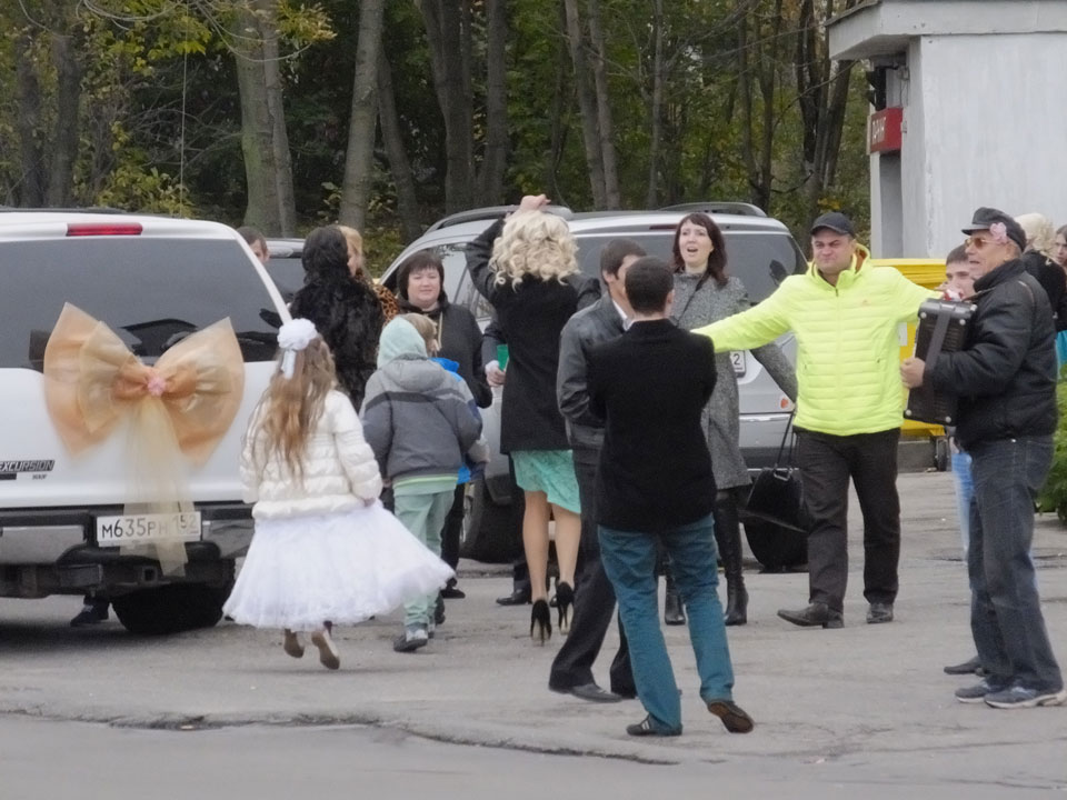 Eincheckzeit im Hostel war für 14:00 angesetzt. Bei McDonalds überbrückte ich die Zeit, registrierte endlich taptaxi und fuhr dann auch für 120 RUB zum Hostel. Auch jetzt bei kalt-nassem Wetter heirateten Leute und machten lustige Photos. Das Hostel war auch witzig, weil komplett im Bau. Ich chillte nur kurz und ging wieder los – ohne Dusche.
