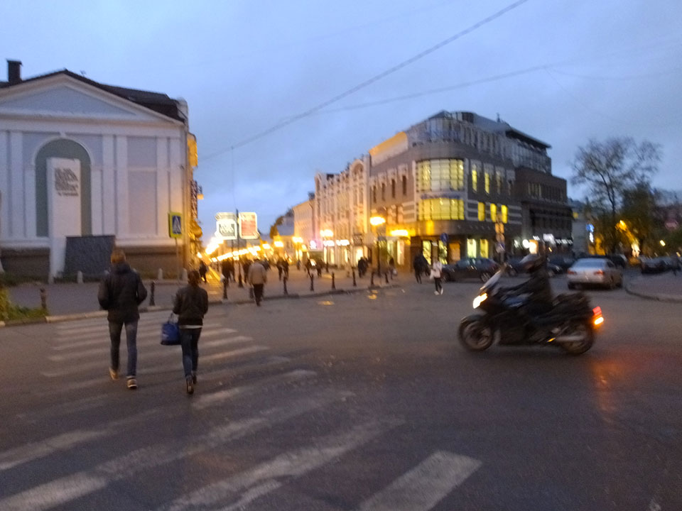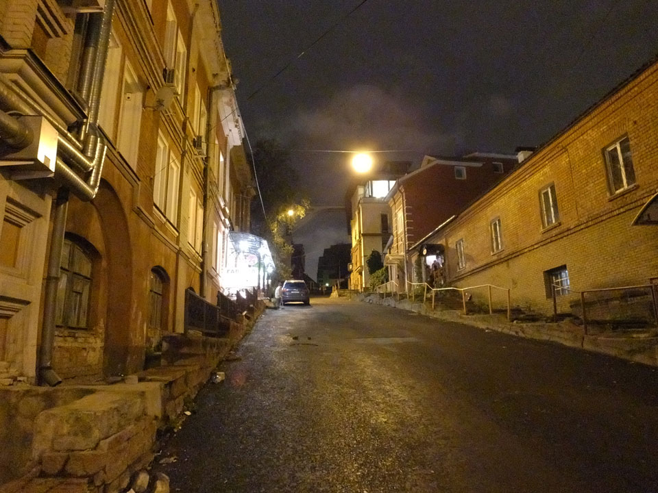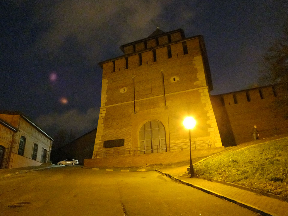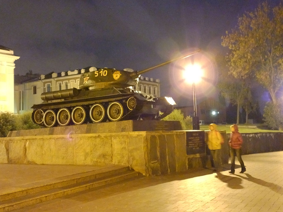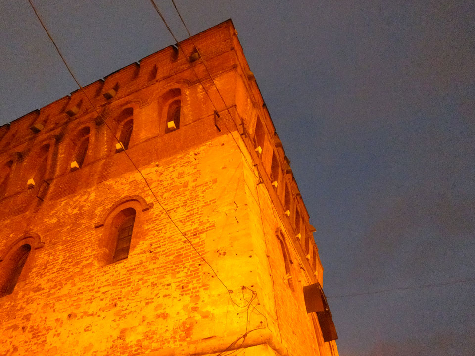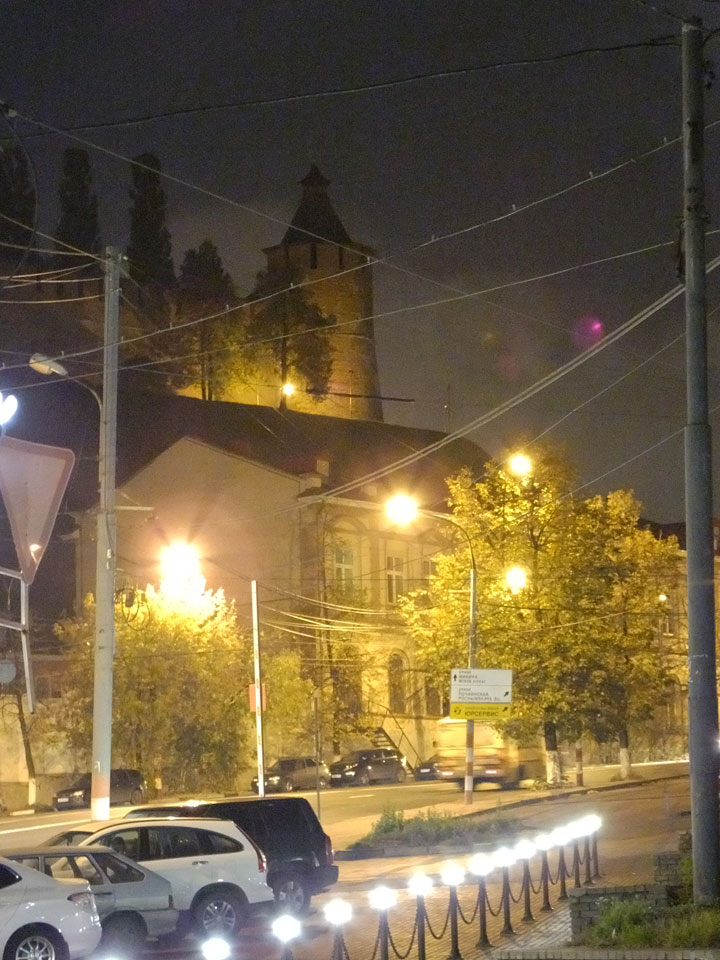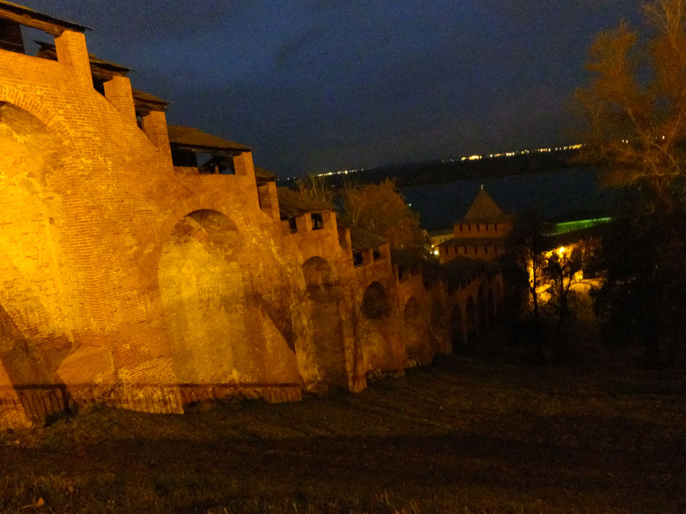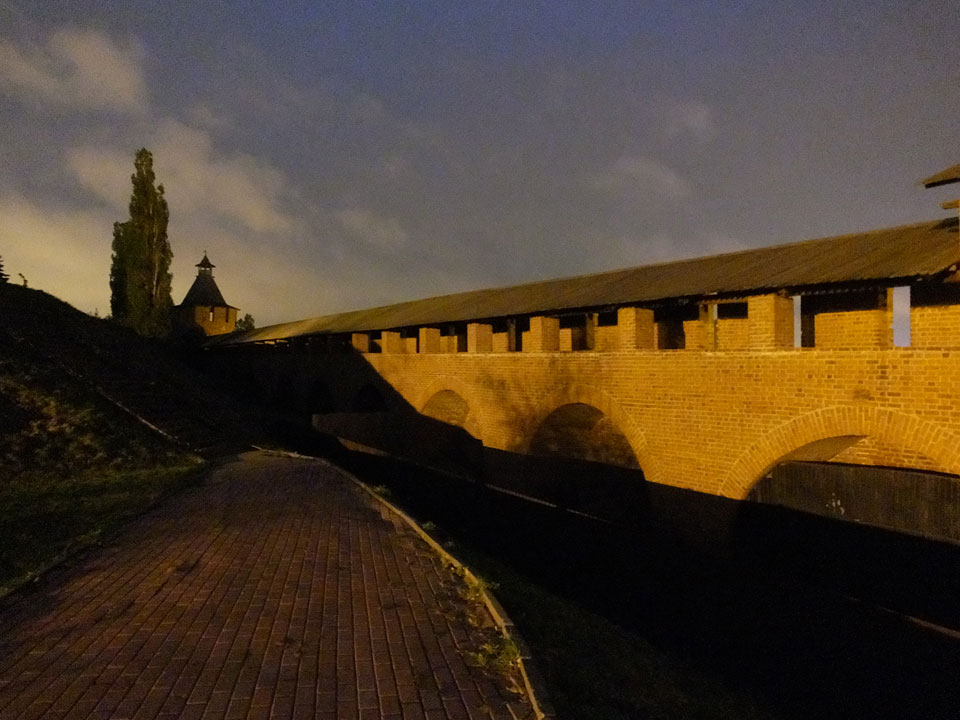 Dann fand ich eine Fußgängerzone, die bis zum Kreml führte. Leider zu dunkel für die Fuji. Zum Kreml kam ich dann auch. Die Burganlage in der Dunkelheit mit nur wenigen Leuten brachte eine eigene Stimmung. Wieder runter Richtung Hostel sah ich dann wie super meine Unterkunft eigentlich liegt.