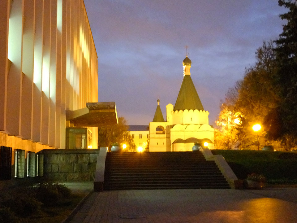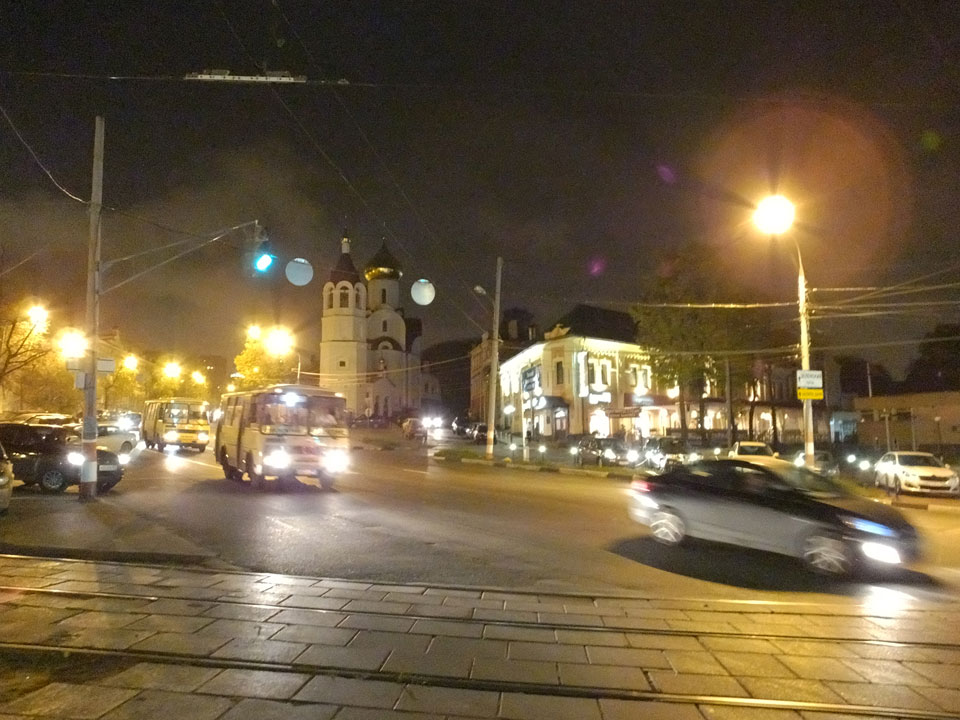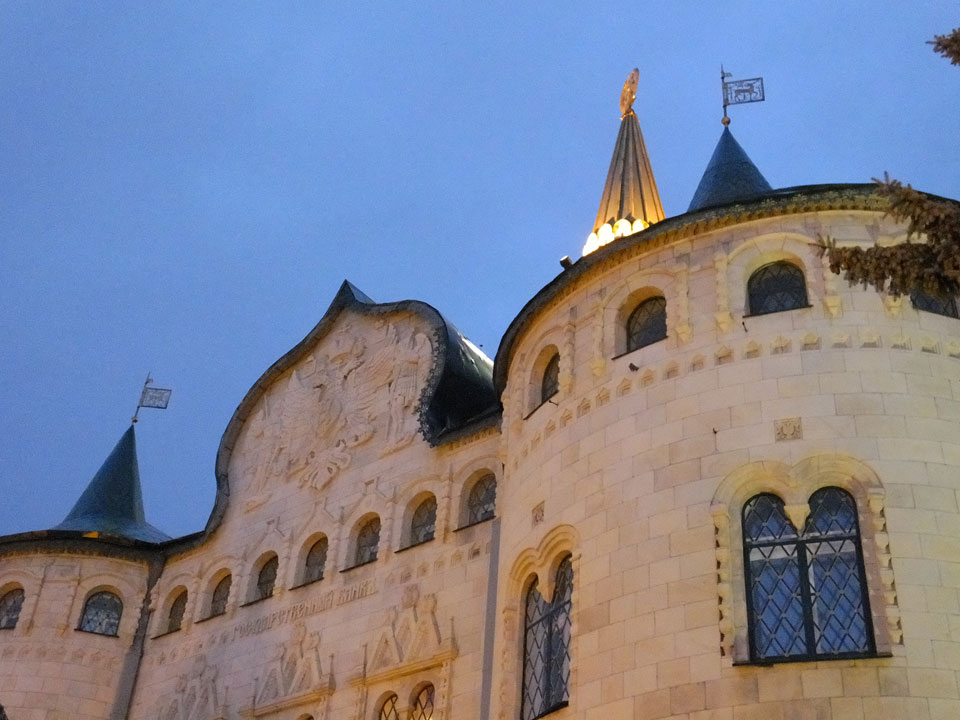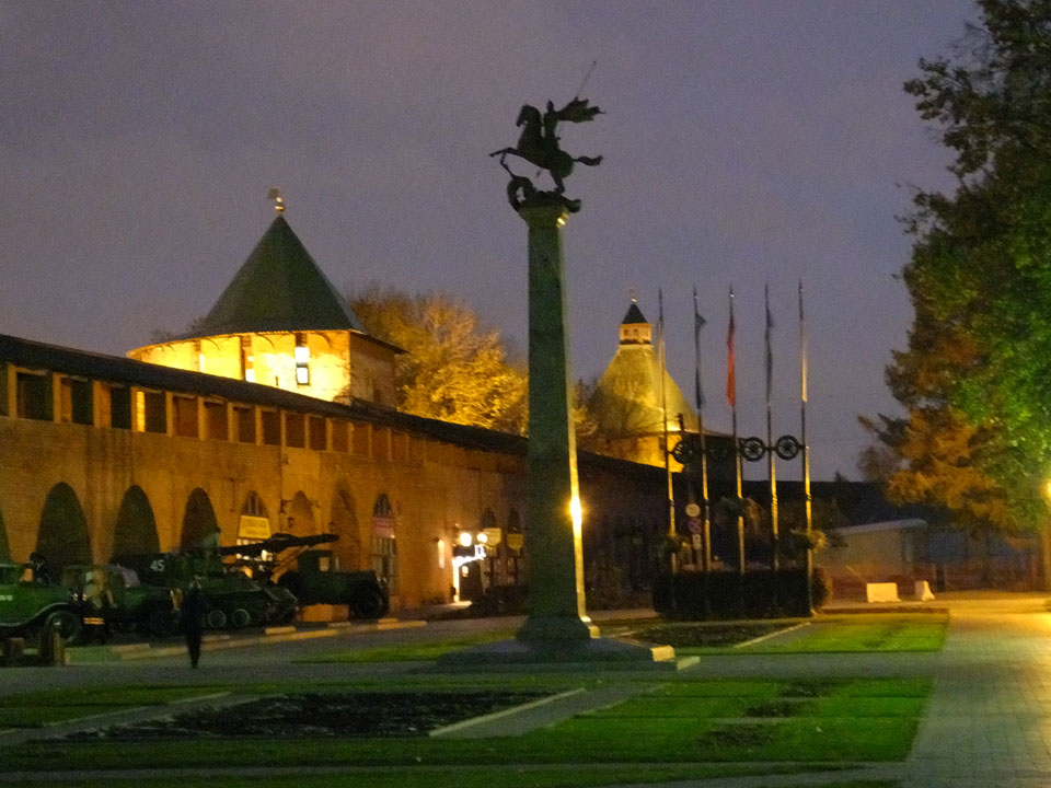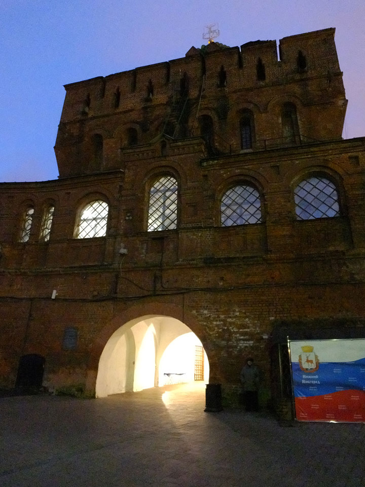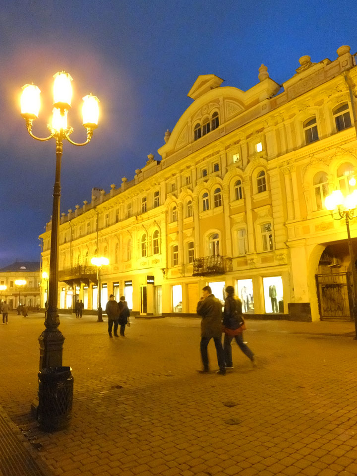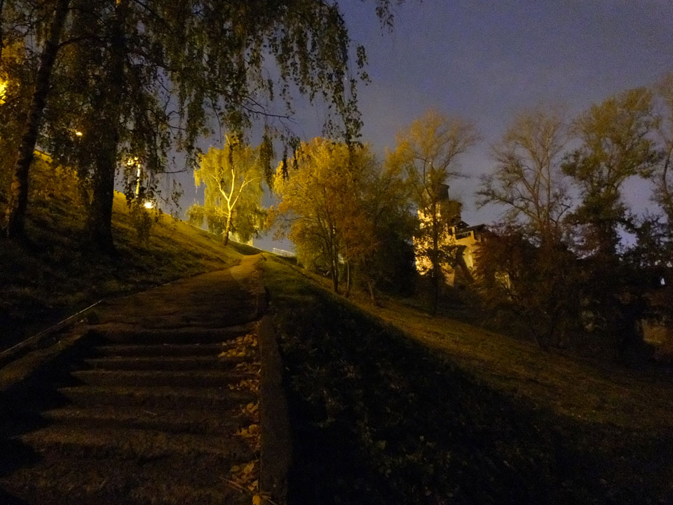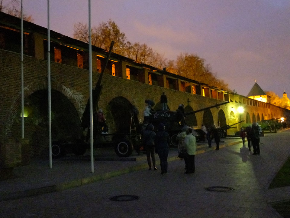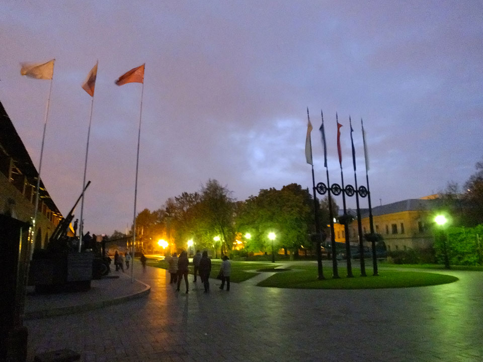 Dann fand ich eine Fußgängerzone, die bis zum Kreml führte. Leider zu dunkel für die Fuji. Zum Kreml kam ich dann auch. Die Burganlage in der Dunkelheit mit nur wenigen Leuten brachte eine eigene Stimmung. Wieder runter Richtung Hostel sah ich dann wie super meine Unterkunft eigentlich liegt.