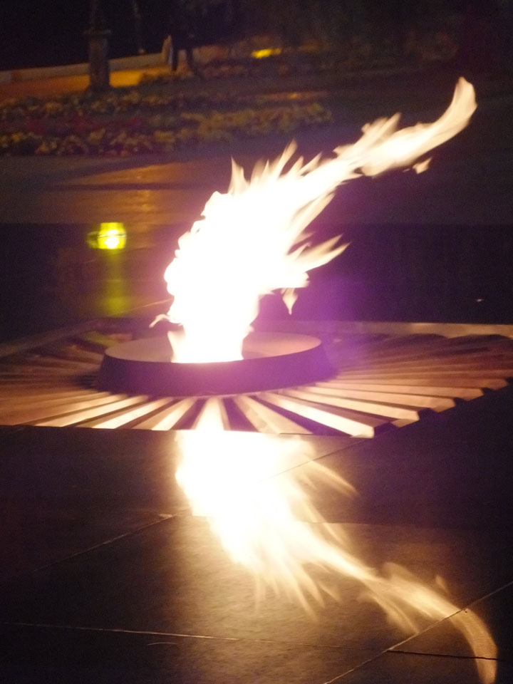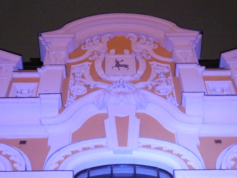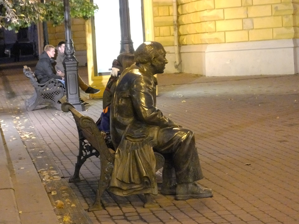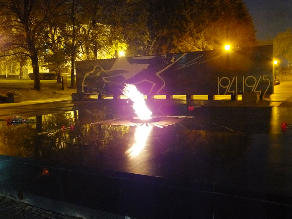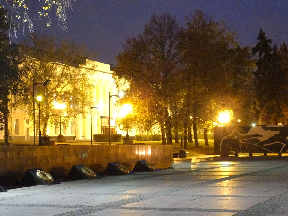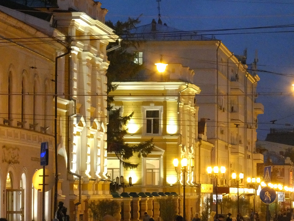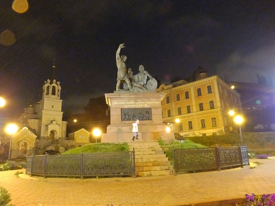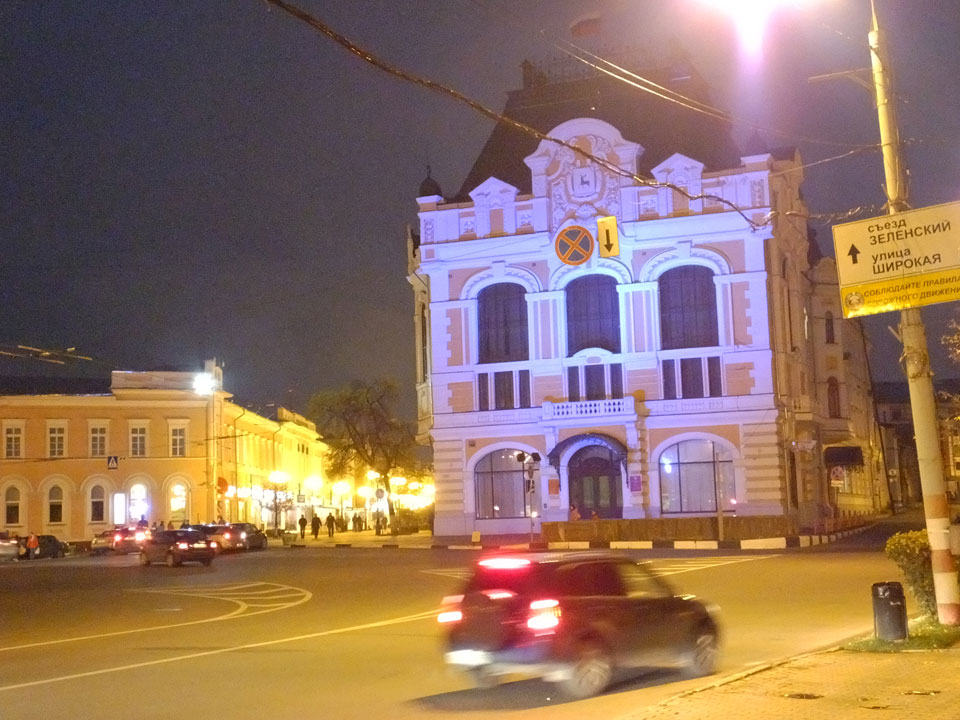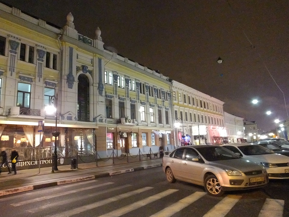 Dann fand ich eine Fußgängerzone, die bis zum Kreml führte. Leider zu dunkel für die Fuji. Zum Kreml kam ich dann auch. Die Burganlage in der Dunkelheit mit nur wenigen Leuten brachte eine eigene Stimmung. Wieder runter Richtung Hostel sah ich dann wie super meine Unterkunft eigentlich liegt.
