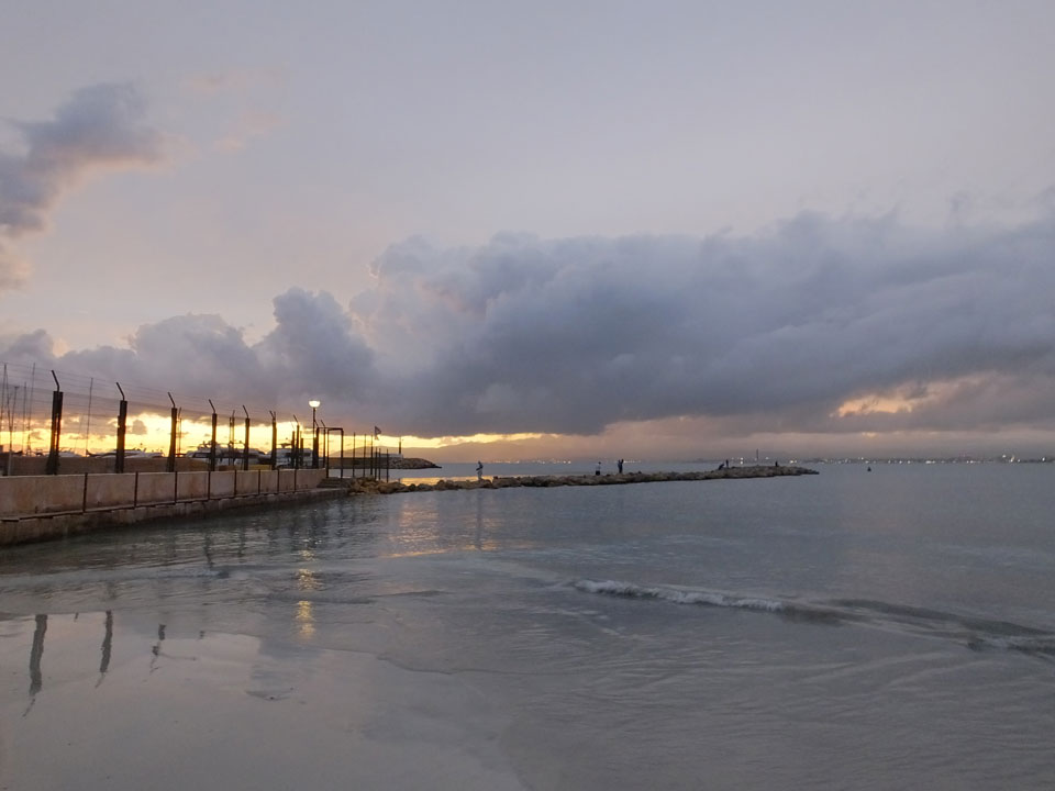 Ich ging mal einkaufen: gerade mal €8,50 für Getränke, Gazpacho, Wurst und Brot. Ich ging kurz nach Sonnenuntergang knipsen und kletterte etwas am Wasser herum. Danach machte mir dann ein nettes kleines Abendbrot auf dem Zimmer. Den ganzen Tag hatte ich wenig gegessen. Einen ganzen Liter Gazpacho ging weg, was ich so mag. Ist immer cool in Spanien, das essen mit Chorrizo und frischem Brot.