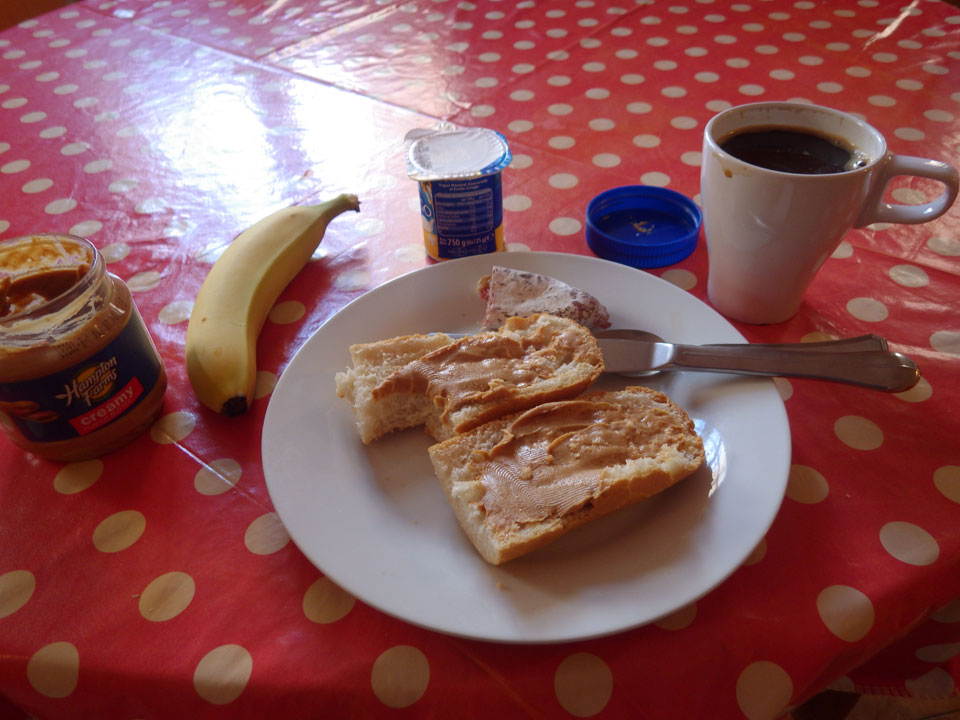 Mein Frühstück musste ich mir erst im Supermarkt holen. Heute etwas früher an den Strand. Das Wetter fantastisch, das Wasser auch. Baden im Oktober. So war ich zufrieden.