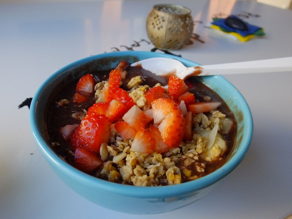 Zuerst brauchte ich was zu essen, das ich in einem brasilianischen Restaurant fand. Die hatten sogar Acai! Zwei Gebäck, Cappuccino und Acai dann mit fast €10 recht teuer.