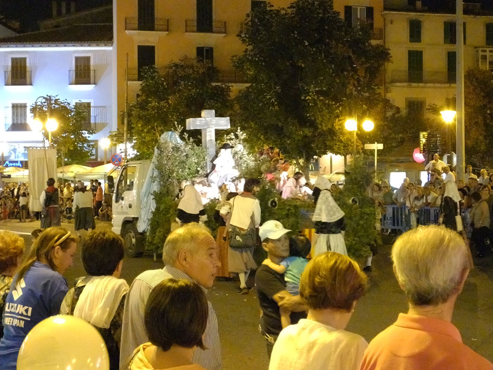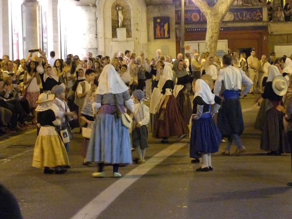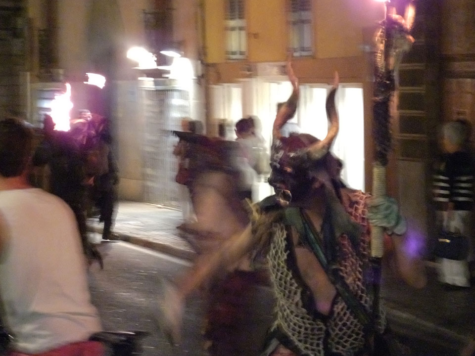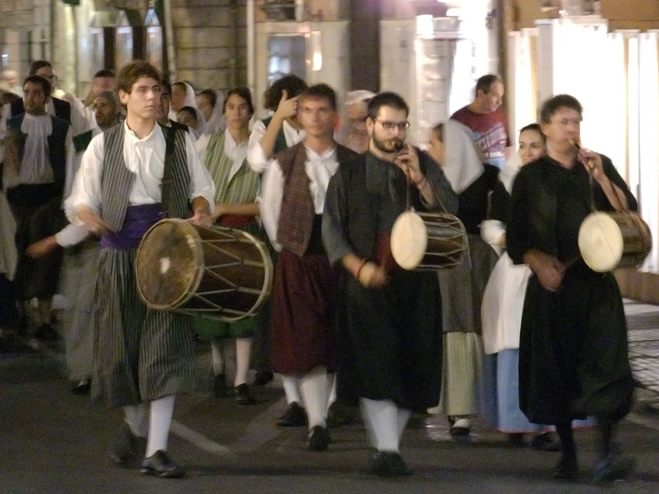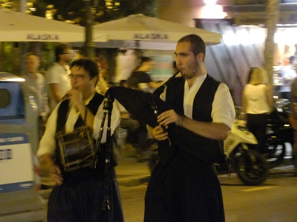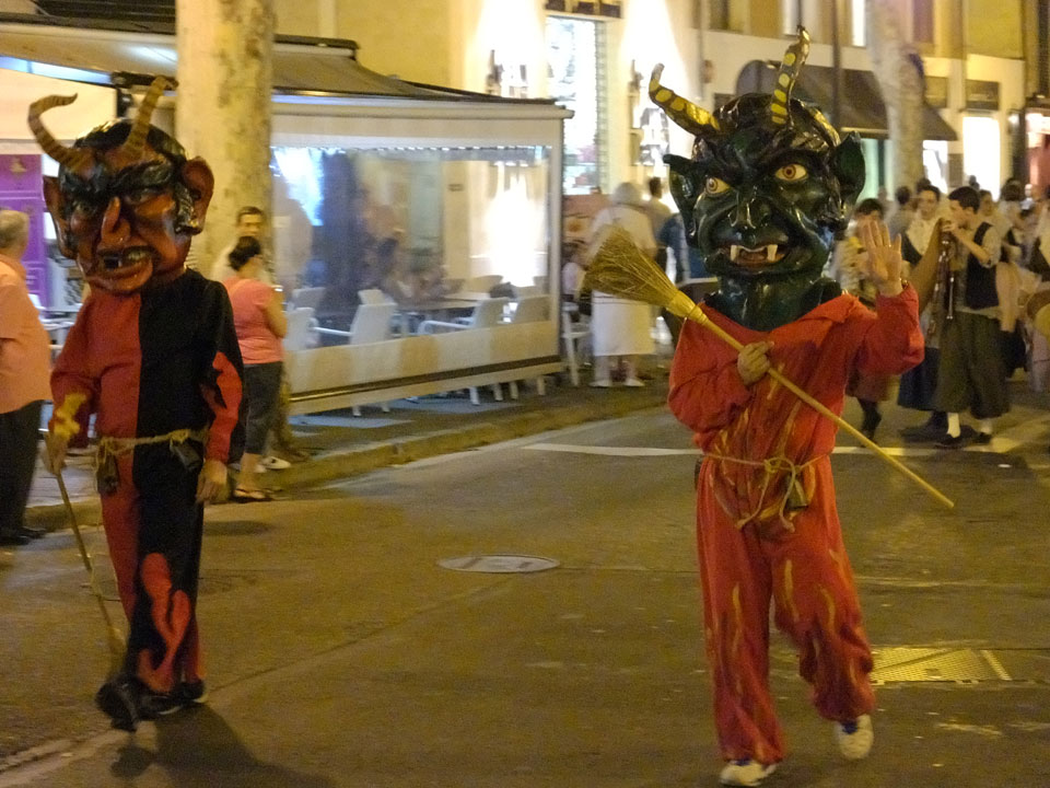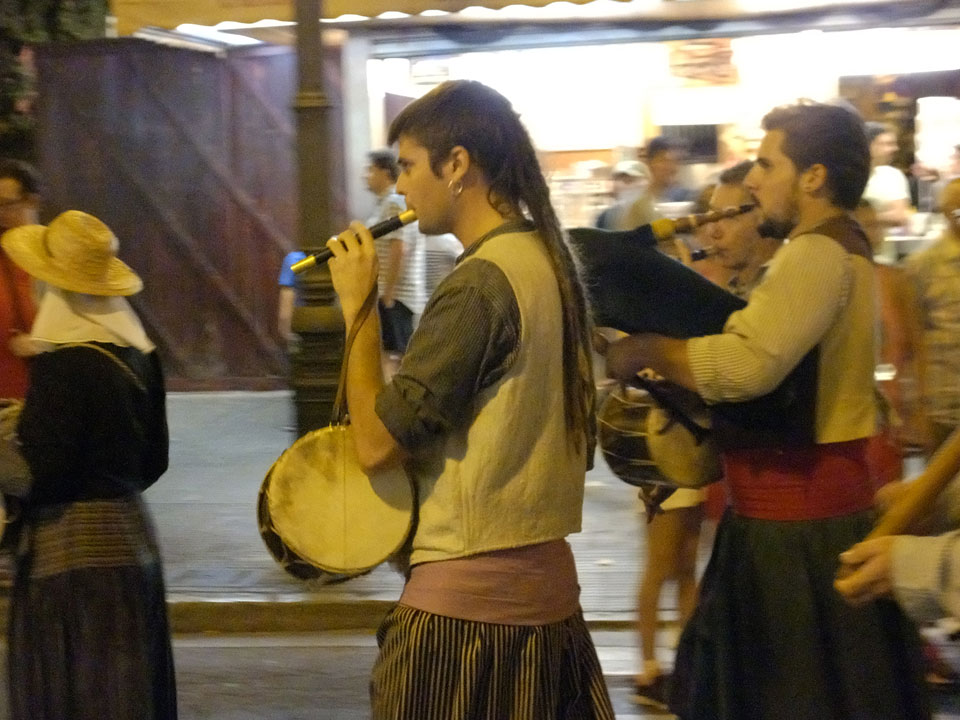Abends ein Eis, dann gab’s noch einen Umzug. Dudelsack und Kastaneten. Viel Tanz und viele Kinder in mittelalterlichen Kostümen. Ein paar Teufel waren auch dabei, schon ganz nett.