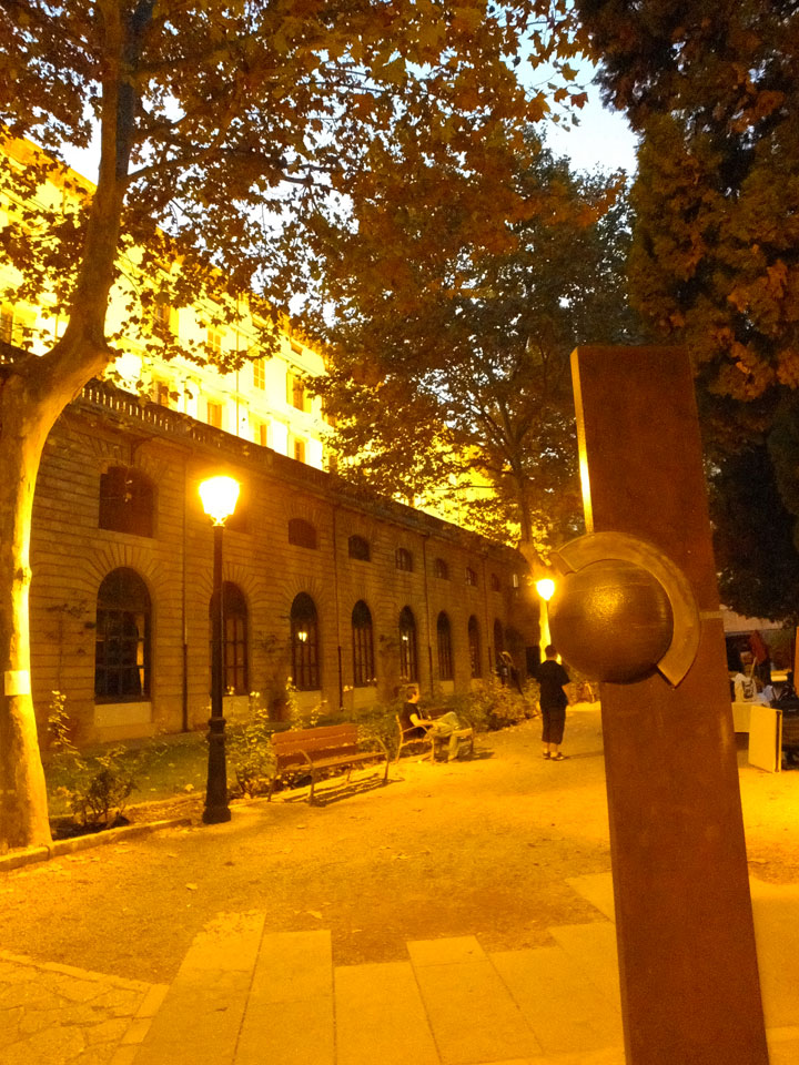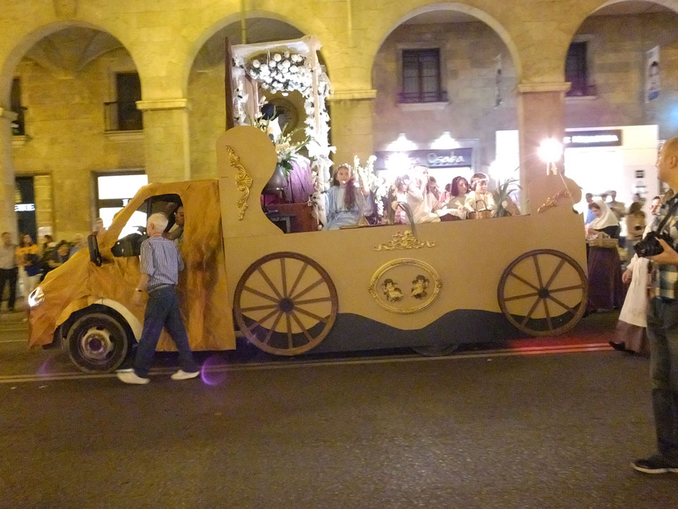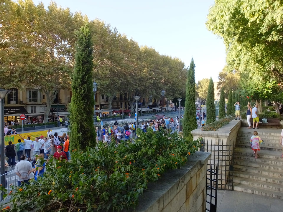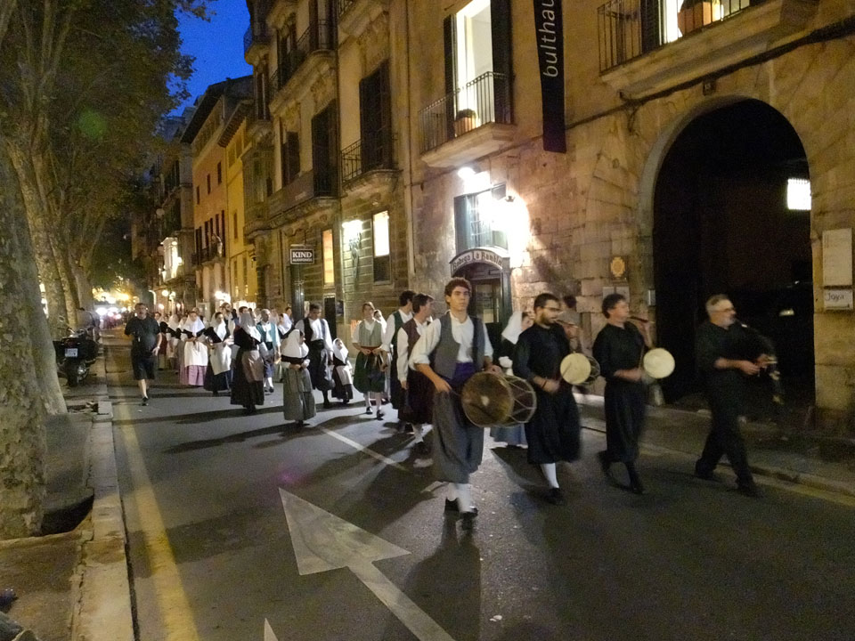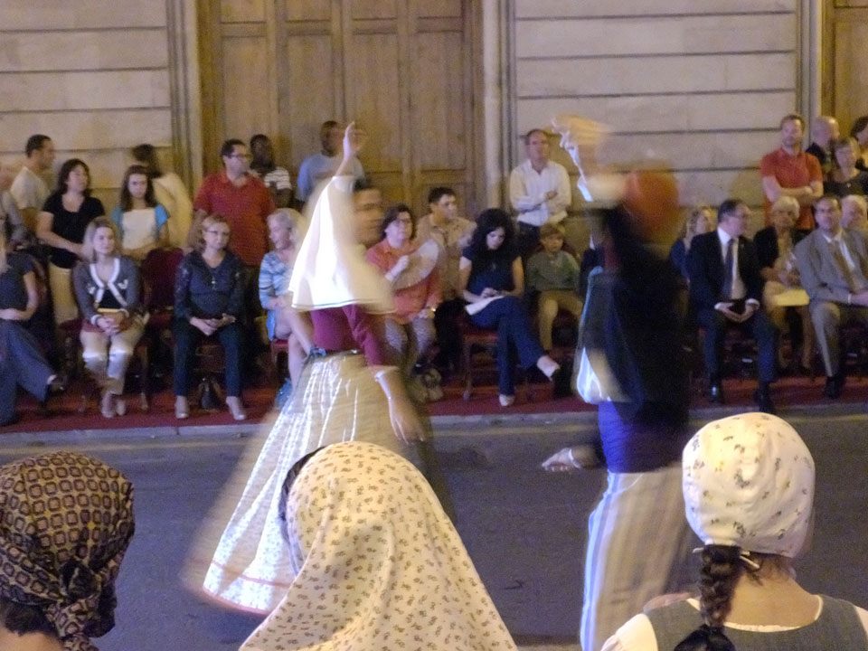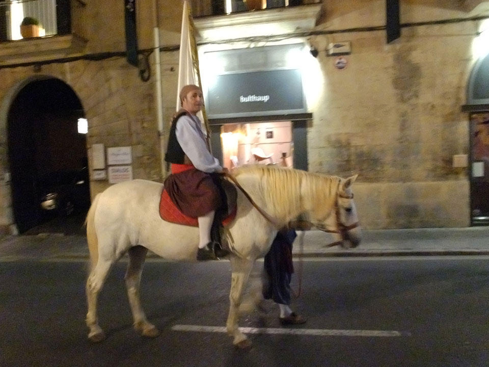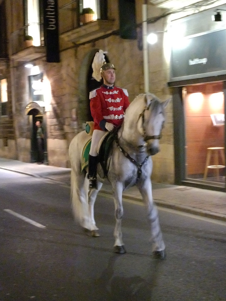 Abends ein Eis, dann gab’s noch einen Umzug. Dudelsack und Kastaneten. Viel Tanz und viele Kinder in mittelalterlichen Kostümen. Ein paar Teufel waren auch dabei, schon ganz nett.