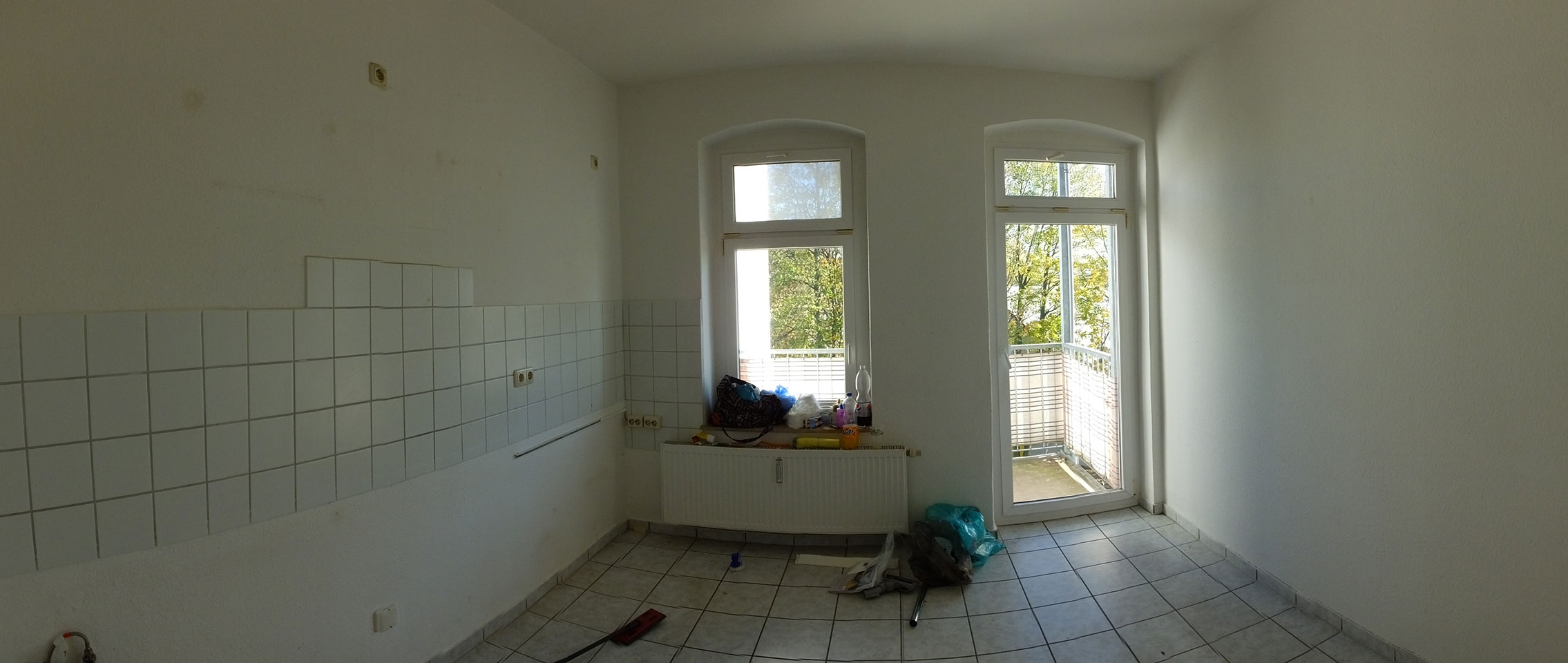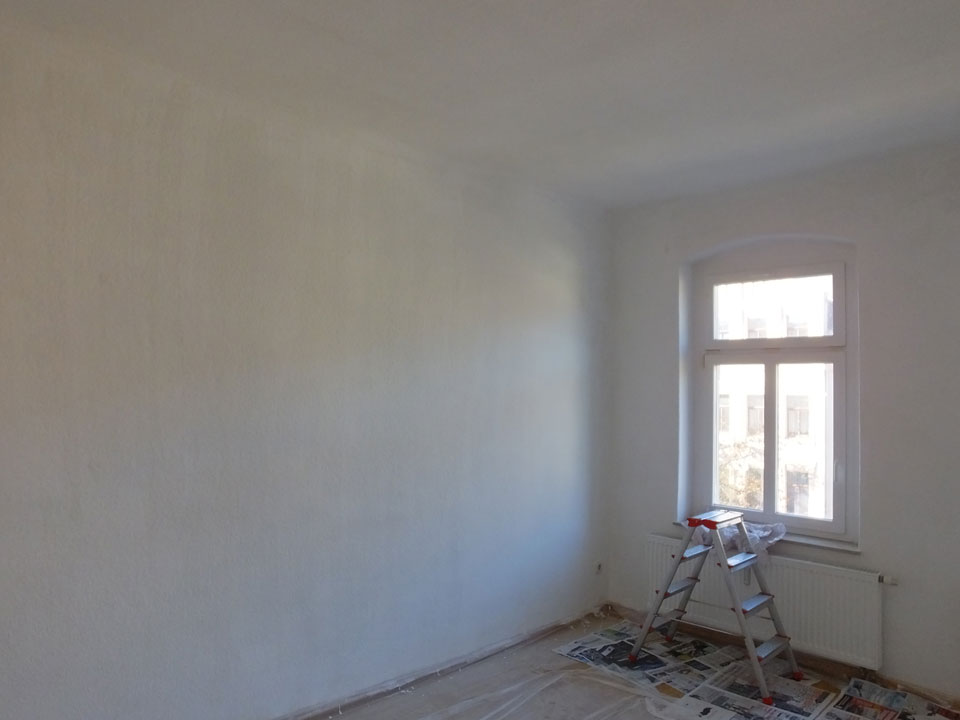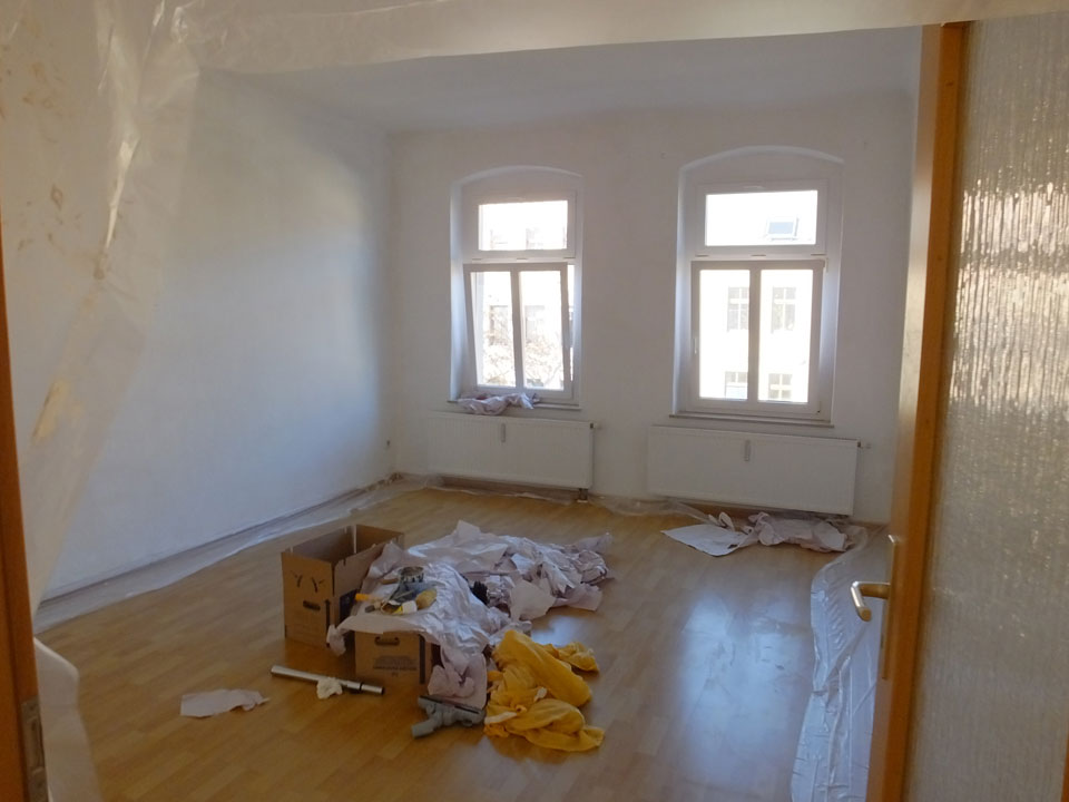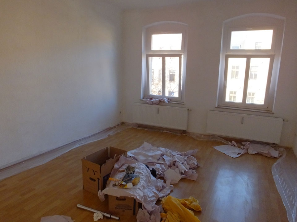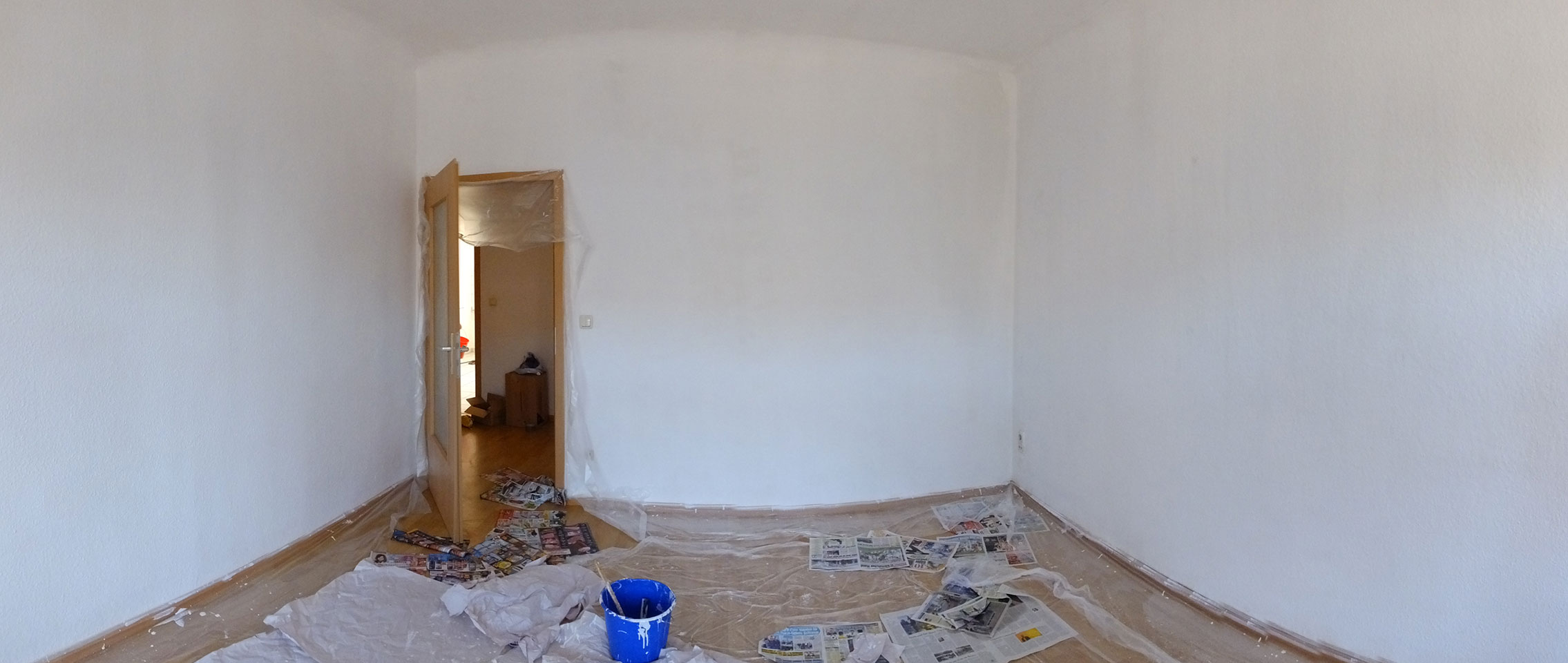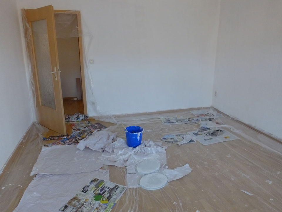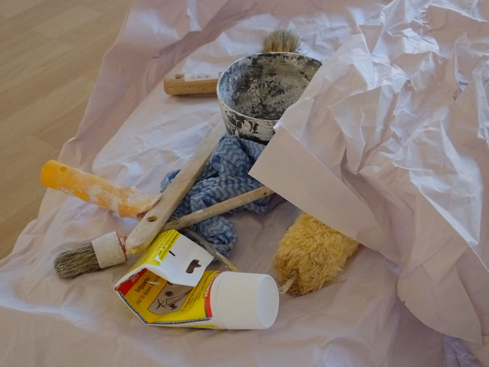 Wir merkten schnell, dass es doch eine Menge Arbeit wird. Ein echter Maler sollte her. Einer gab Hinweise per telefon – viel Farbe, immer die Rolle voller Farbe haben. Dann sollten keine Streifen entstehen.