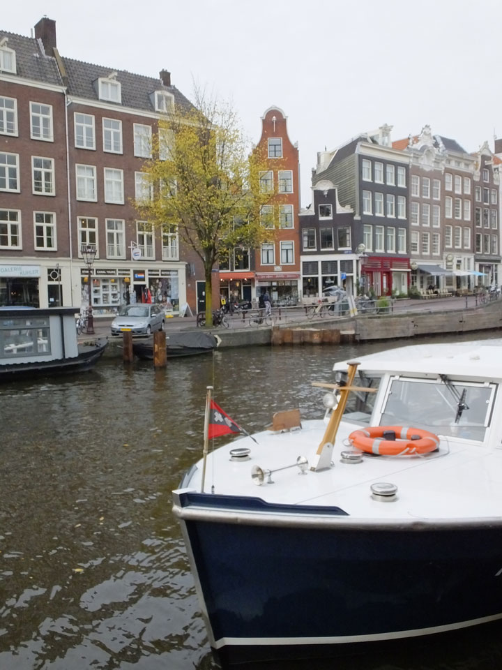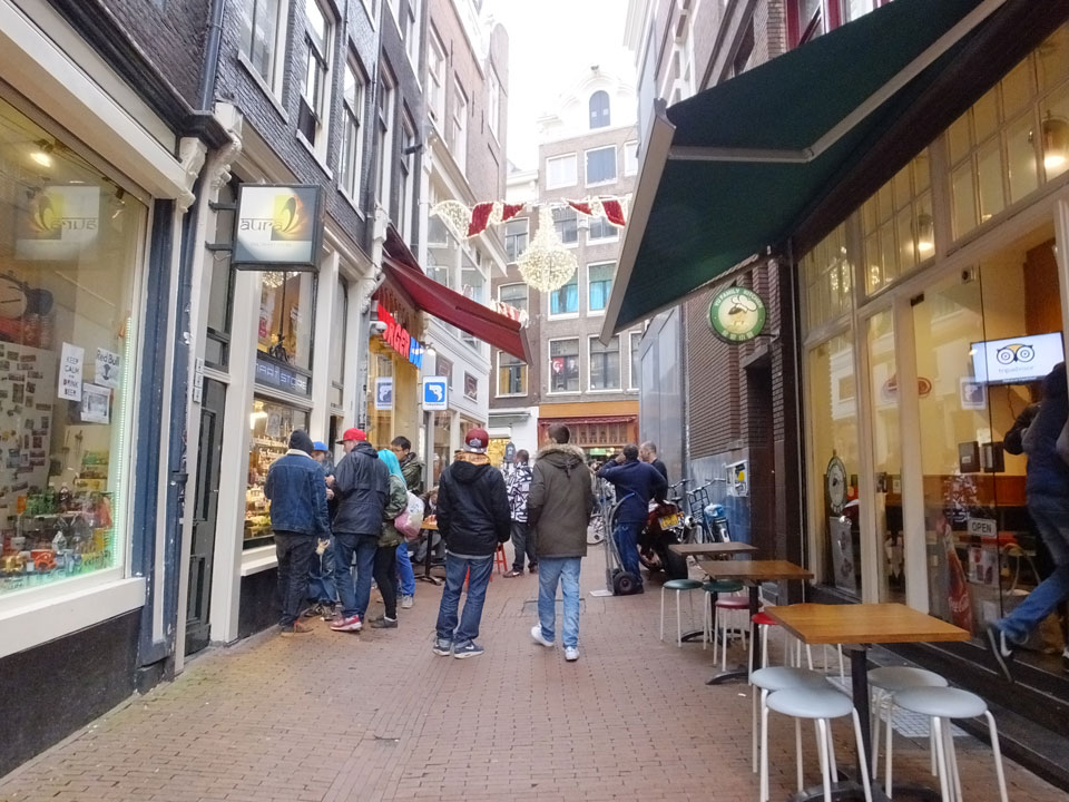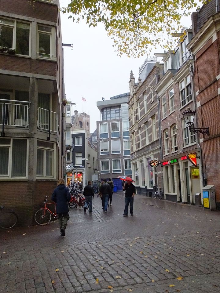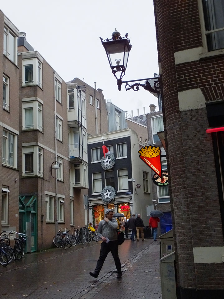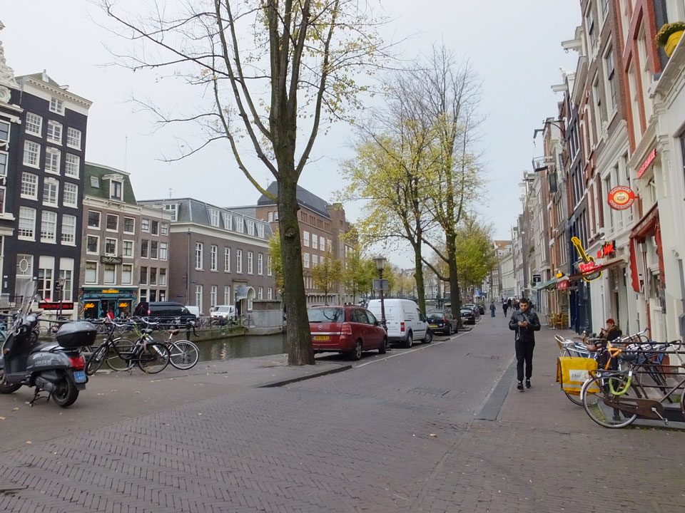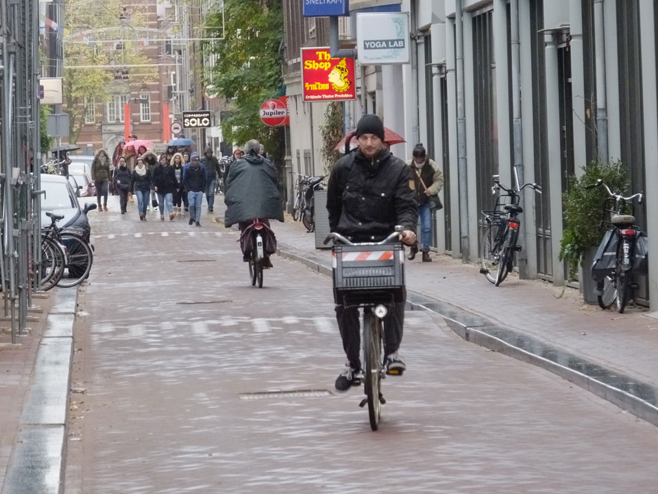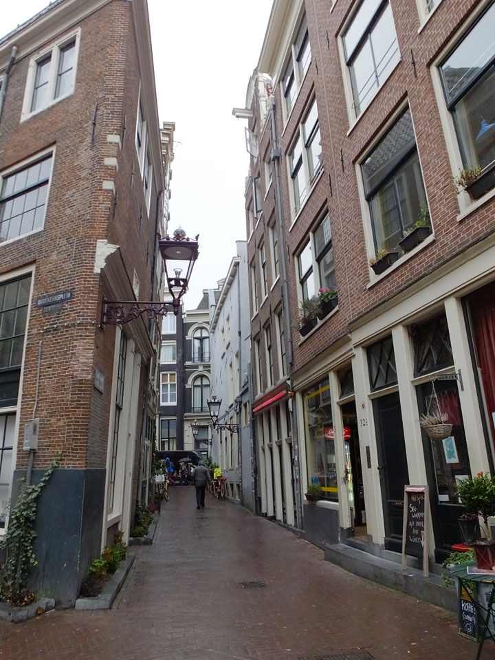 Jetzt hatte ich meinen kleinen Rucksack dabei, der auch schön schwer ist. Ich spazierte durch Amsterdam, zuerst bei Nieselregen, später im Trockenen. Alles schon mal gesehen und so richtig große Sehenswürdigkeiten gibt’s ja nicht. Es ist aber auchs chön, einfach herumzulaufen und eben eine etwas andere und die sehr lockere Stadt hier zu checken.