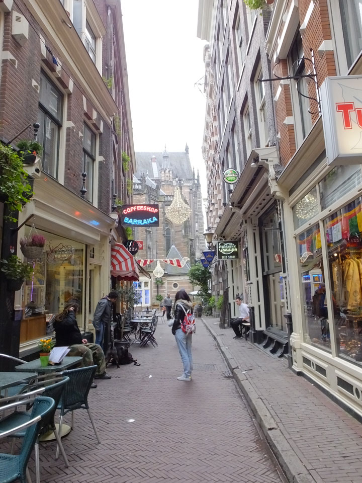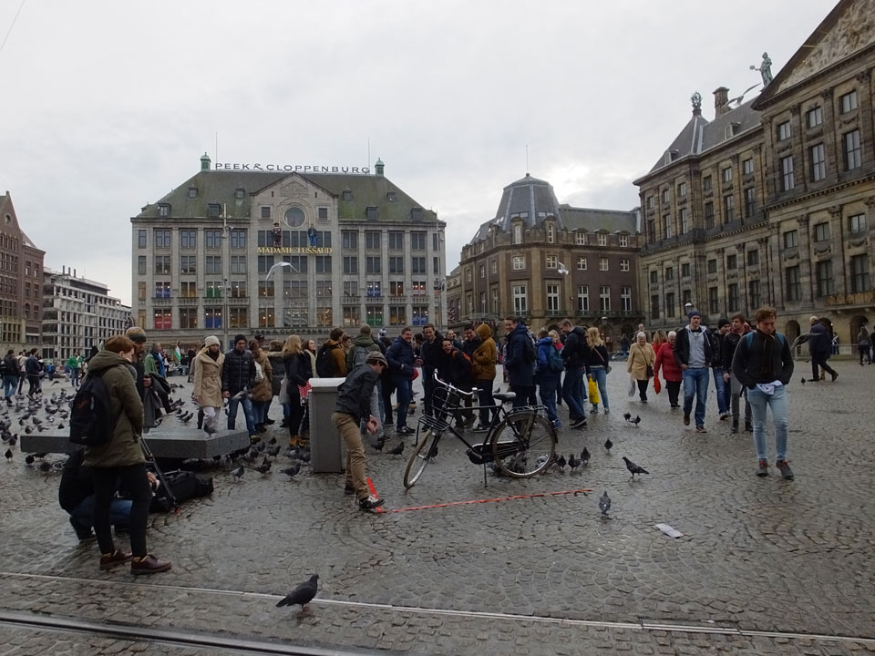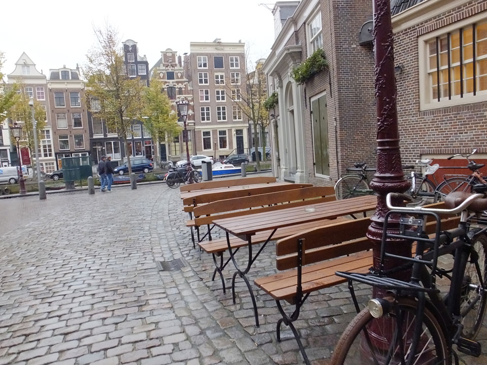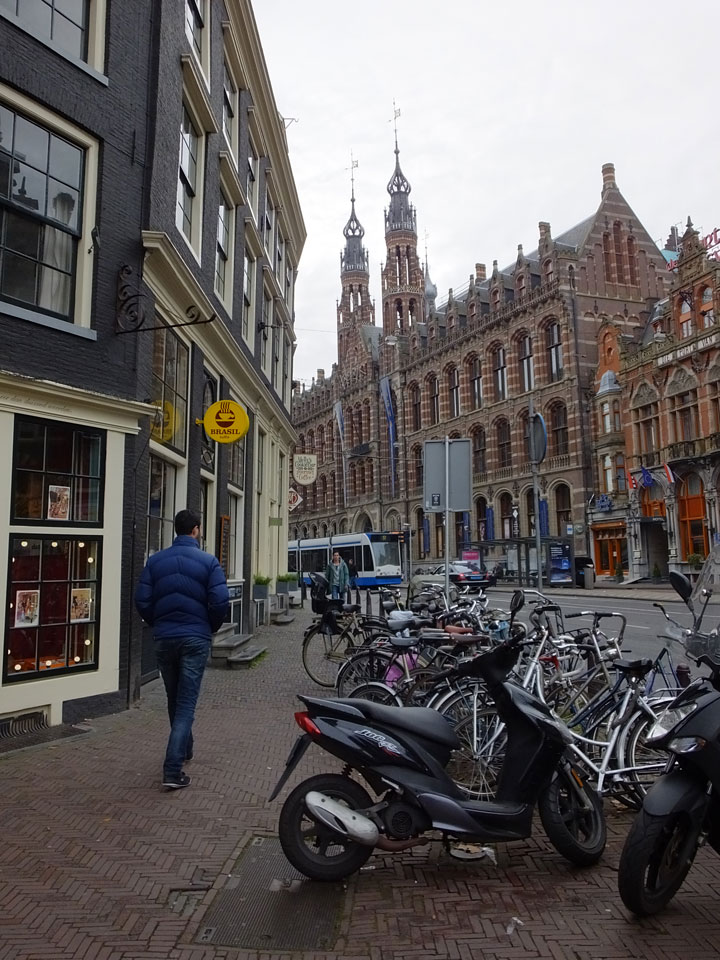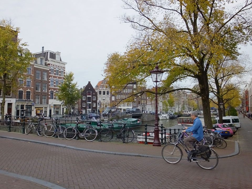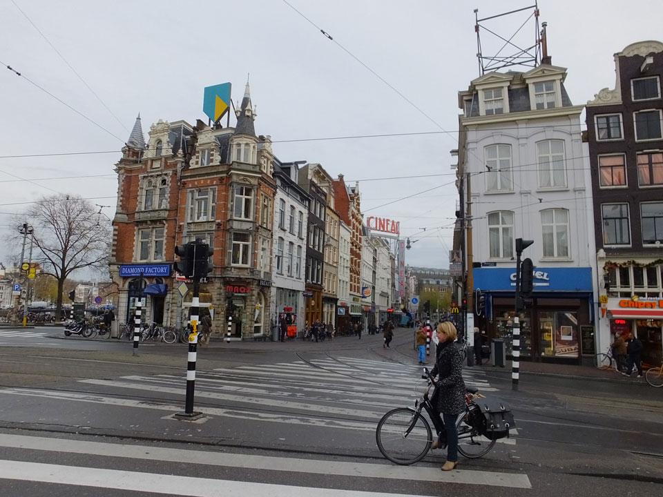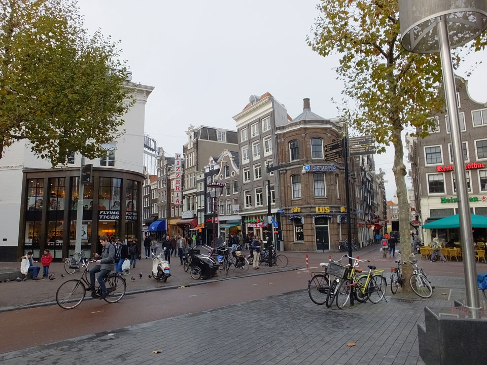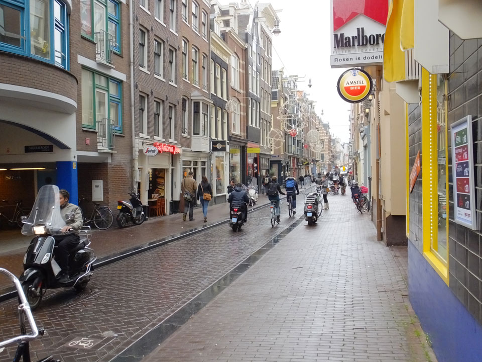 Jetzt hatte ich meinen kleinen Rucksack dabei, der auch schön schwer ist. Ich spazierte durch Amsterdam, zuerst bei Nieselregen, später im Trockenen. Alles schon mal gesehen und so richtig große Sehenswürdigkeiten gibt’s ja nicht. Es ist aber auchs chön, einfach herumzulaufen und eben eine etwas andere und die sehr lockere Stadt hier zu checken.