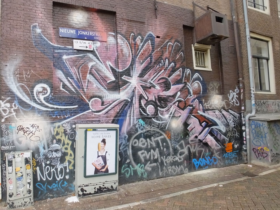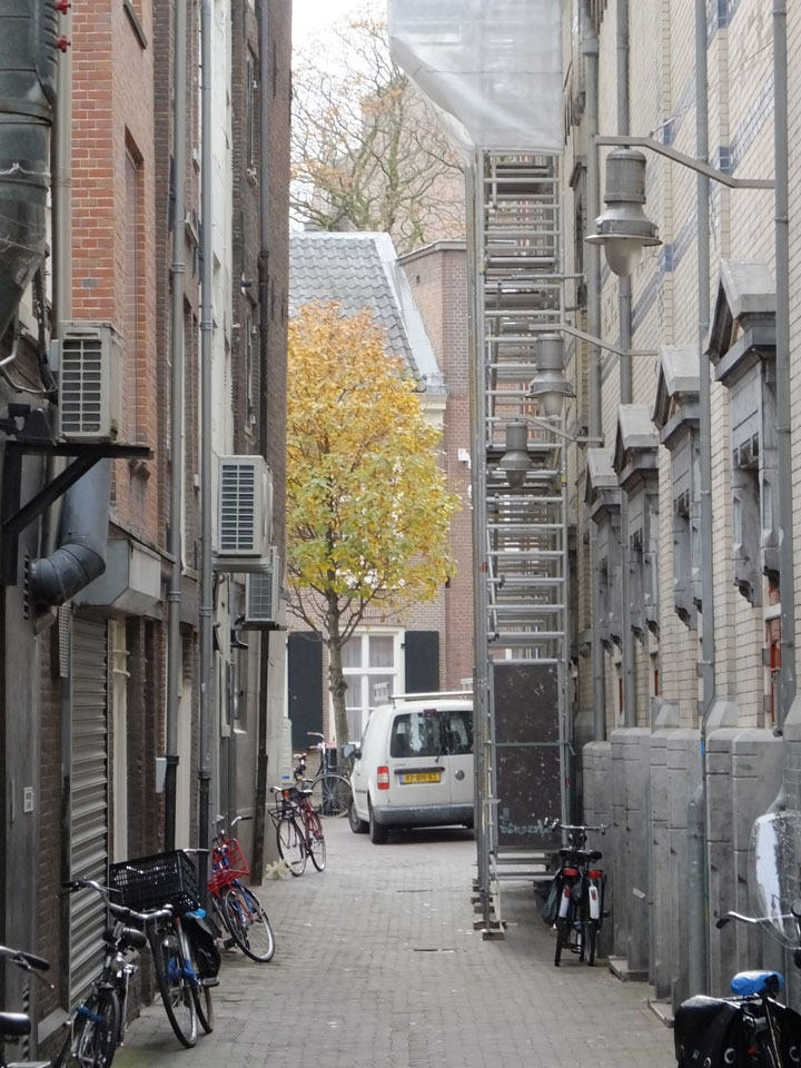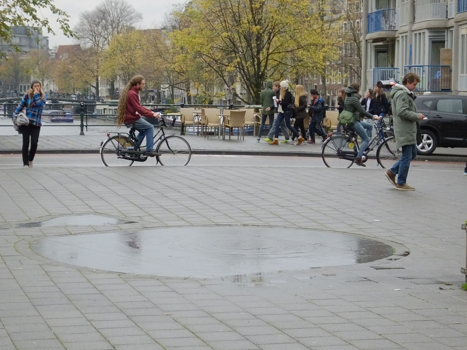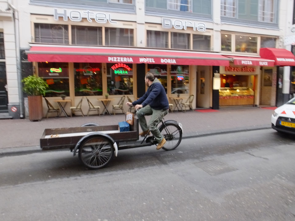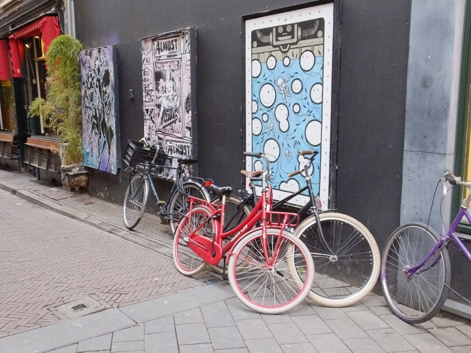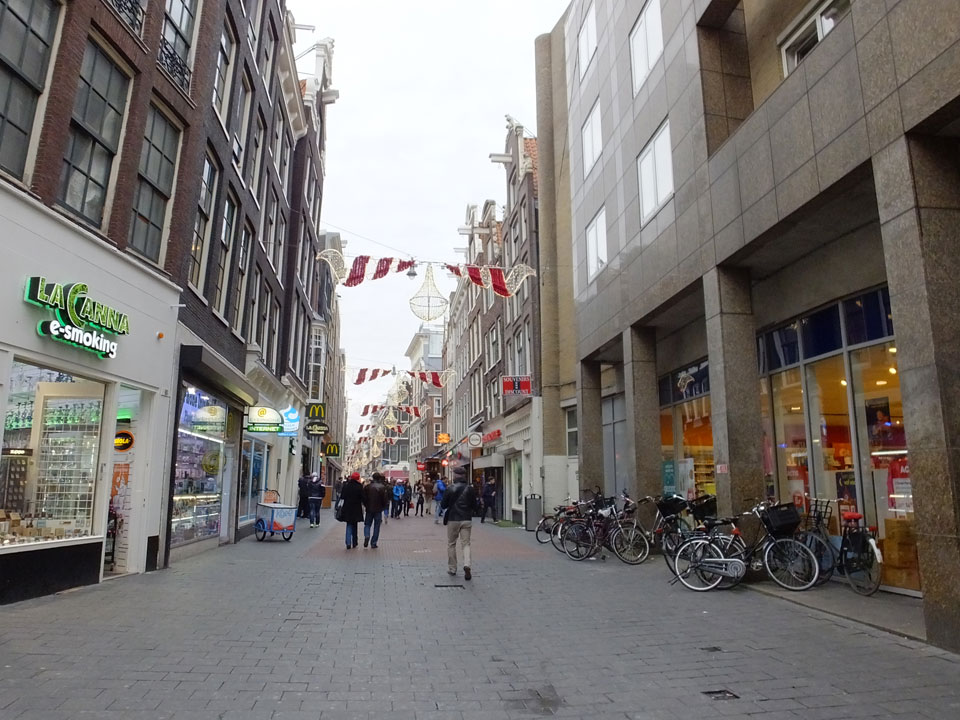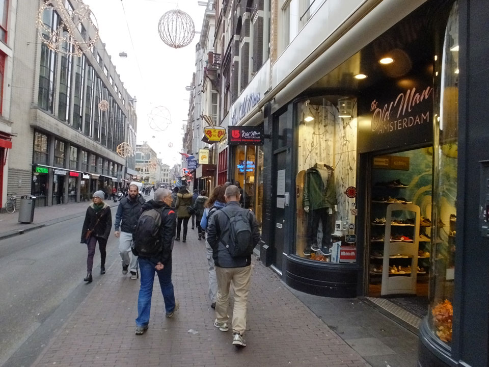Jetzt hatte ich meinen kleinen Rucksack dabei, der auch schön schwer ist. Ich spazierte durch Amsterdam, zuerst bei Nieselregen, später im Trockenen. Alles schon mal gesehen und so richtig große Sehenswürdigkeiten gibt’s ja nicht. Es ist aber auchs chön, einfach herumzulaufen und eben eine etwas andere und die sehr lockere Stadt hier zu checken.