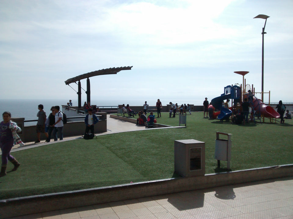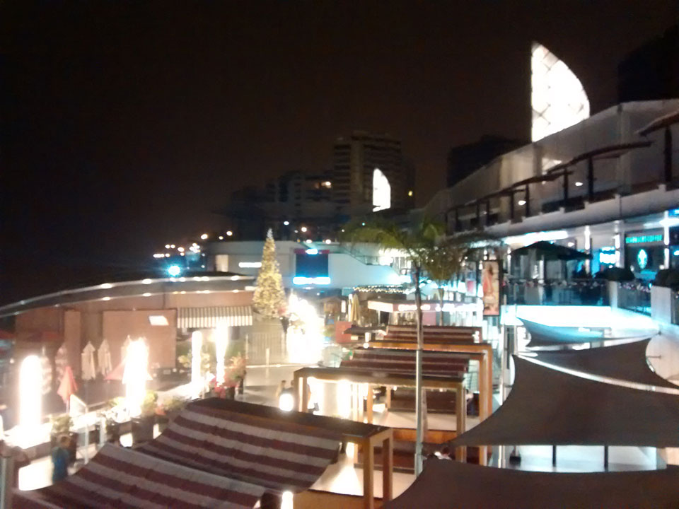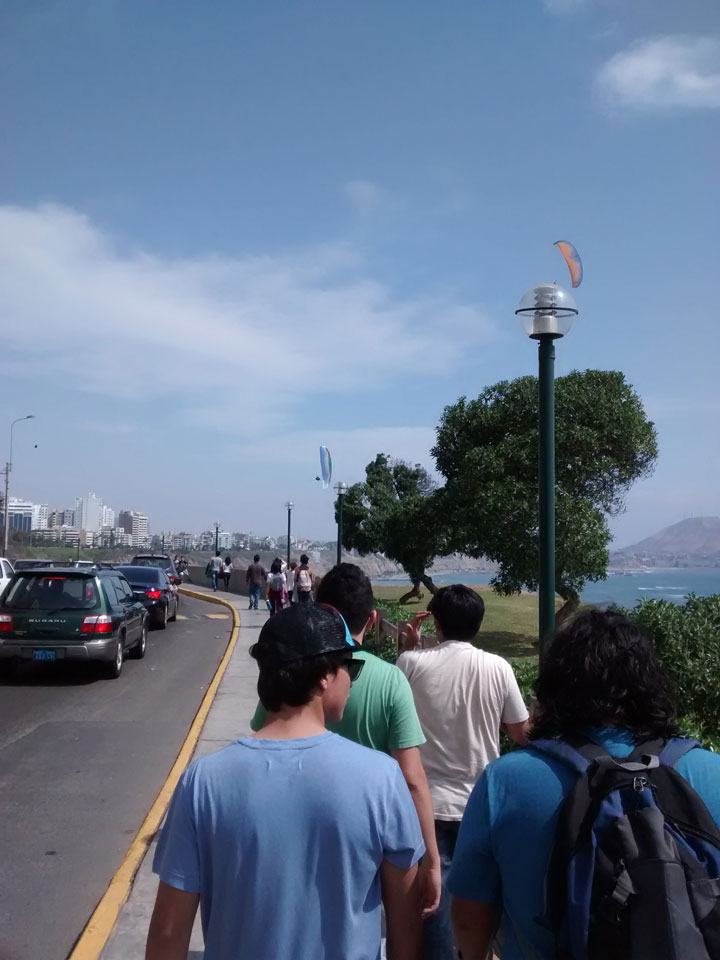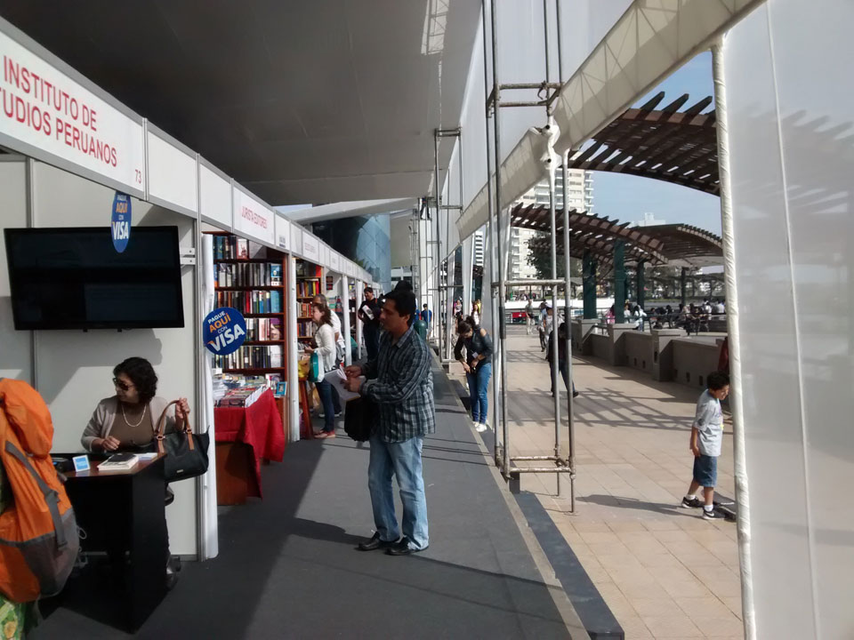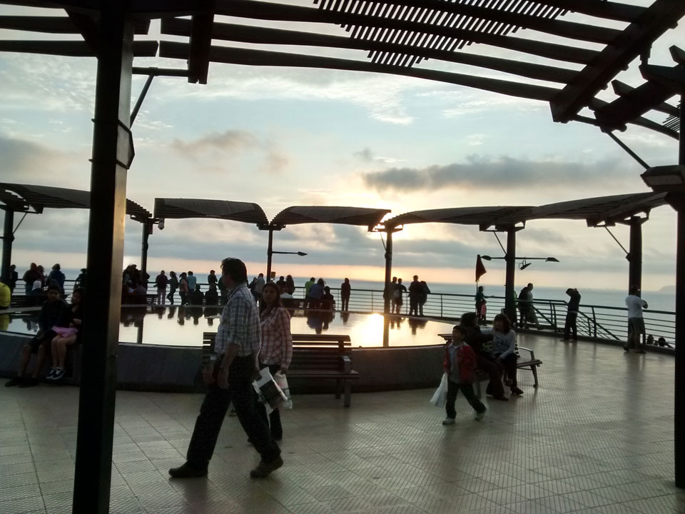Mit geschenktem Eis ging’s ein paar Blöcke südlich zum Larcomar, der großen Mall hier in Lima. Über der Straße flogen Paraglider. Herrlicher Sonnenschein, angenehmer Wind – alles bestens zum Samstag. Ich hatte nur mein Handy als Camera mit, naja. Hier war eien Buchmesse und ich lernte etwas über die lokalen Autoren.