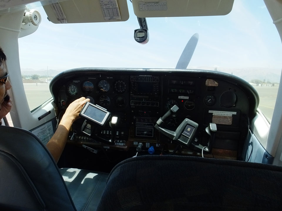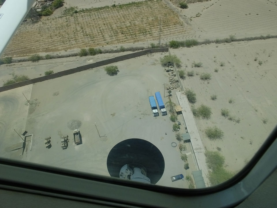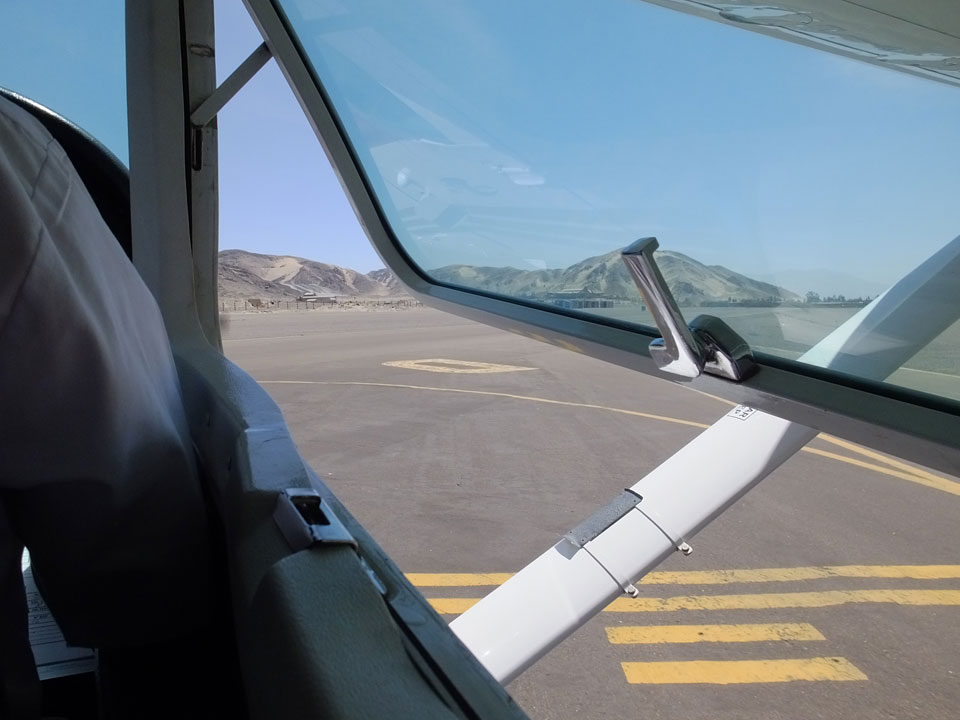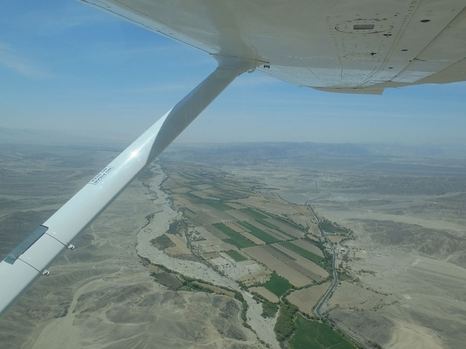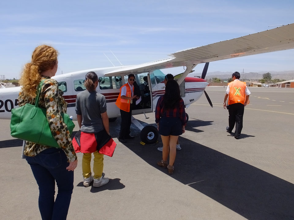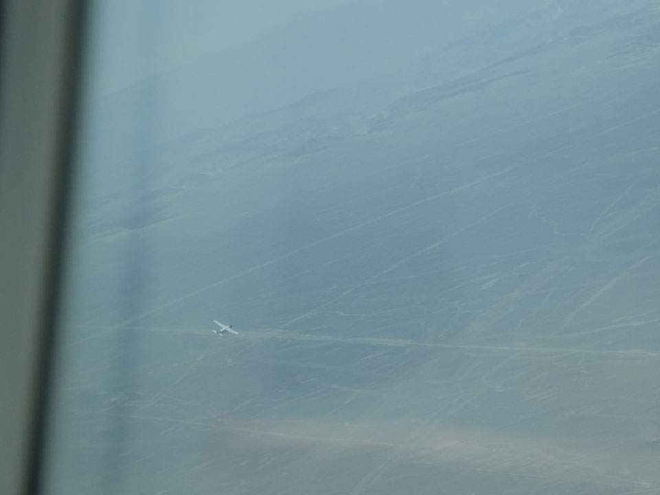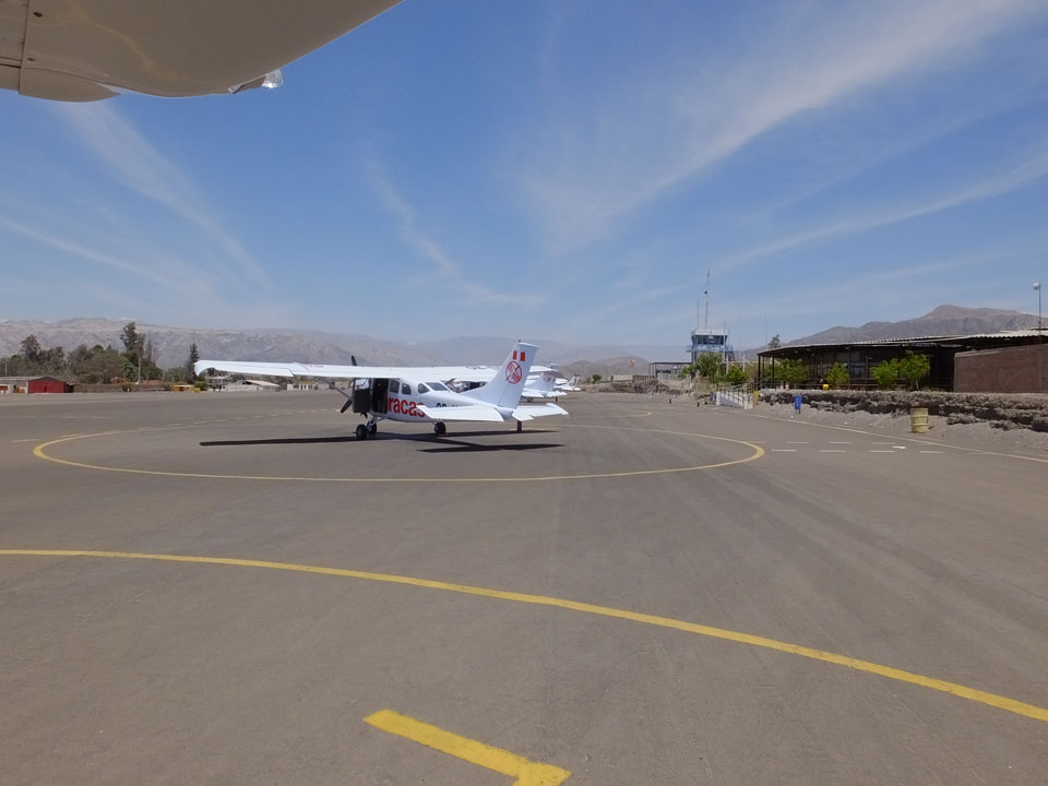 Nazca ist heiß hier in der Wüste. Ein Taxi brachte mich zum Flughafen, wo ich auch schon erwartet wurde. Wiegen und Pass und dann … warten. Ich sollte eigentlich um 11:00 fliegen aber ein paar Leute waren nicht da. Ich wartete eine Ewigkeit bis weit nach 12 bis es endlich los ging. Neben den $70 wurden noch 25 PEN Flughafengebühr fällig. Man kann die Tour sicher auch günstiger machen aber wegen $30-$40 hatte ich doch keine Lust, mich um die ganzen Transports zu kümmern. Ich denke aber, dass man auch da am Flughafen einfach einen Flieger bekommt. Unserer war dennoch komplett voll – 6 Touristen und 2 Piloten.