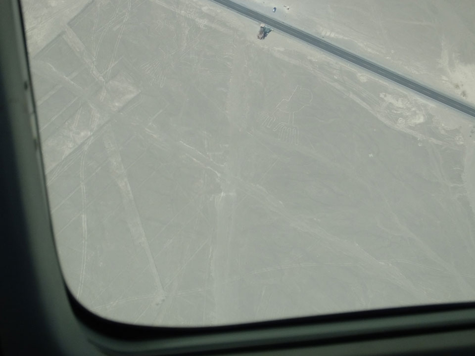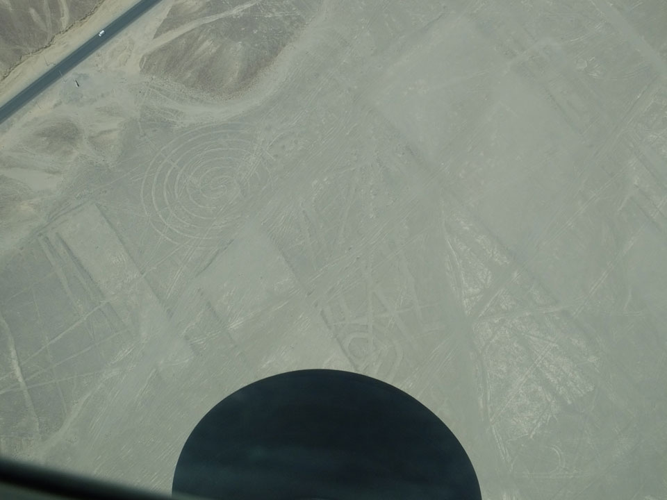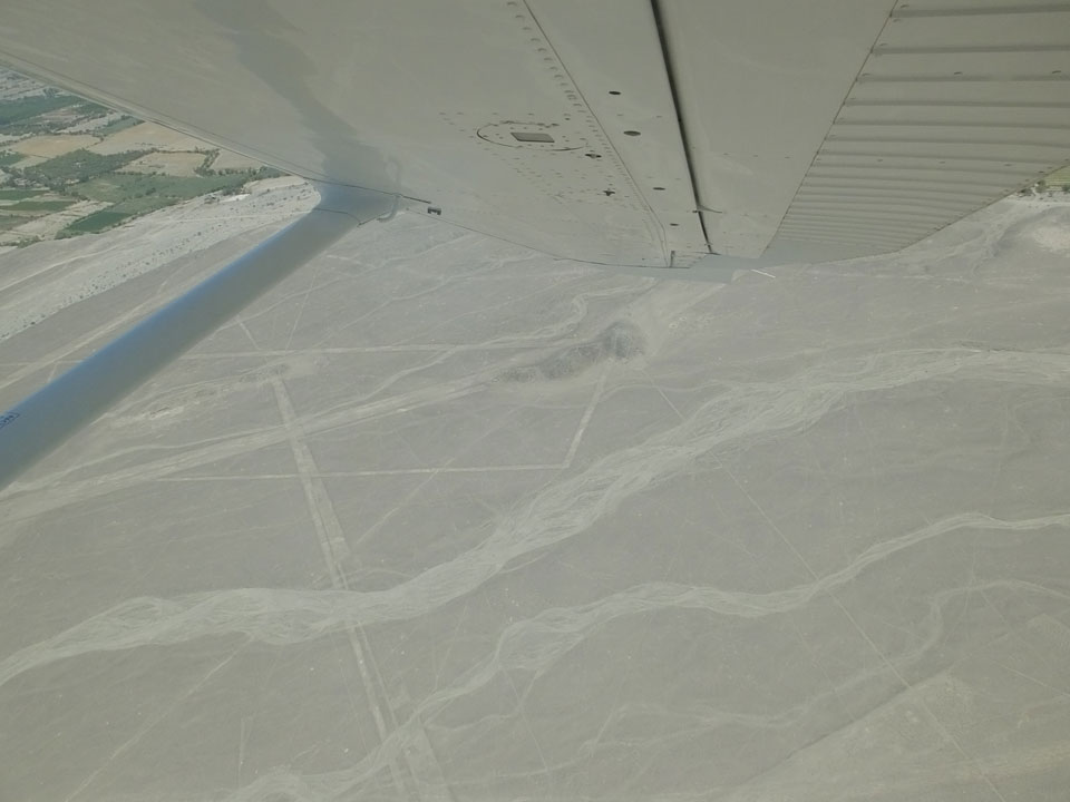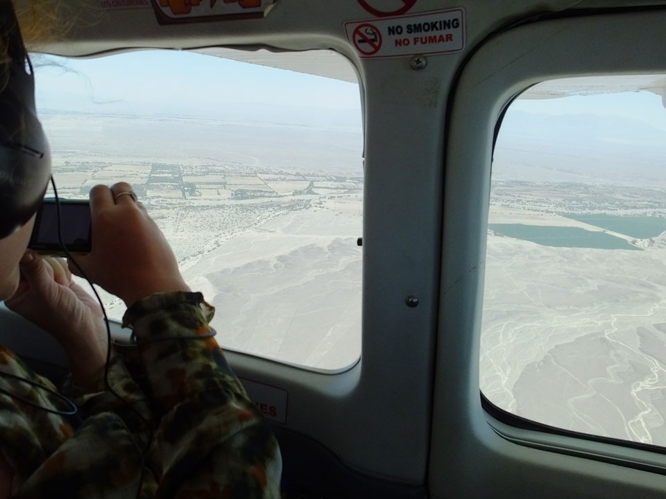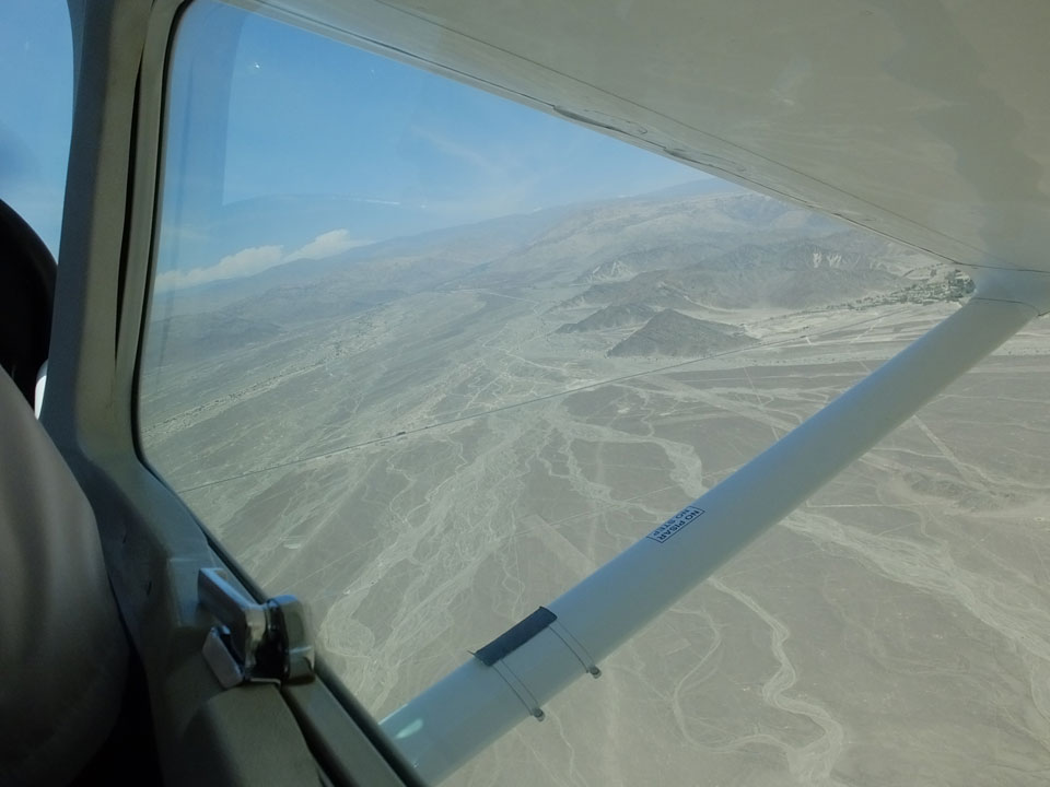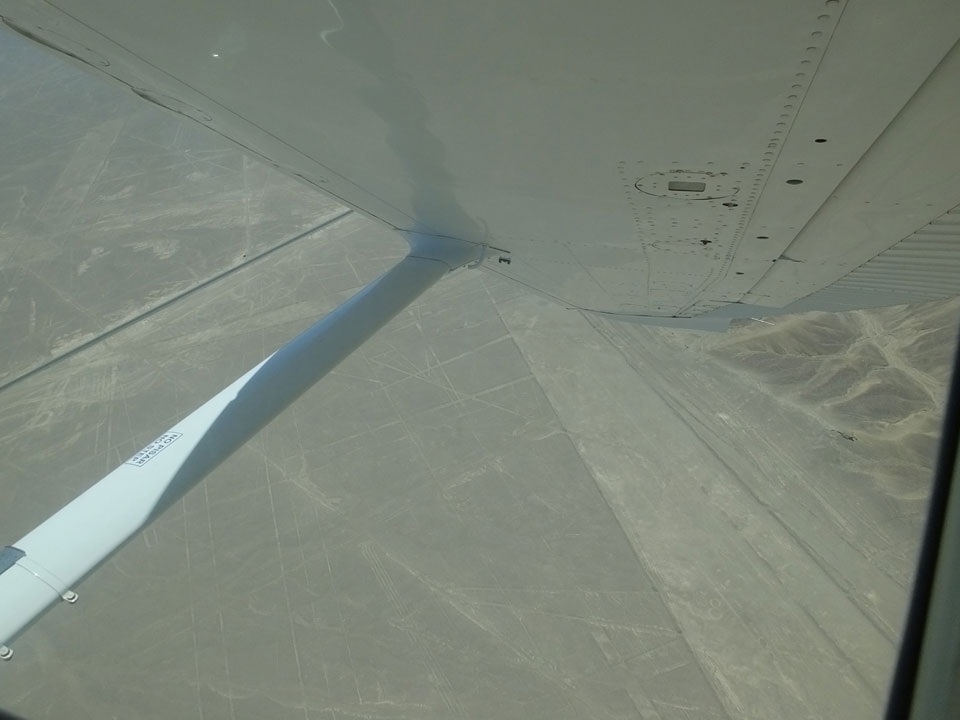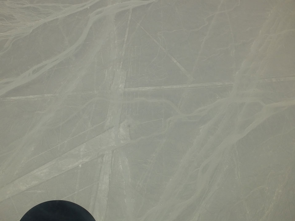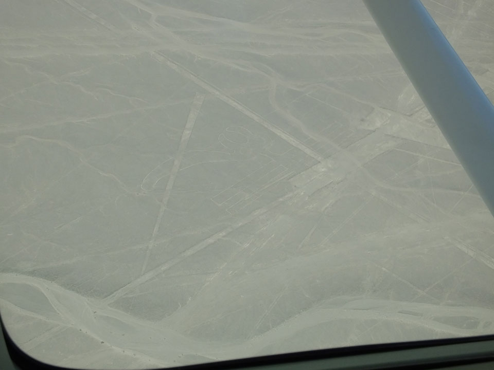 Mit einer 8 Personen Cessna ging’s also los. Das ist schon etwas anderes als mit ’nem Jet und auch bei Windstille wackelte es ab und zu ganz gut. Ein Pilot flog, der andere erklärte. Wir drehten Runden um die Geoglyphen. Von jeder Seite konnte man so alles gut sehen – erst rechts, danach nochmal links.