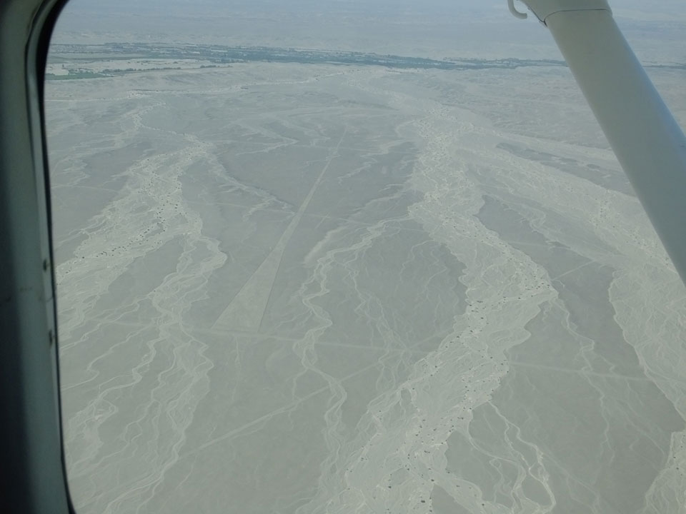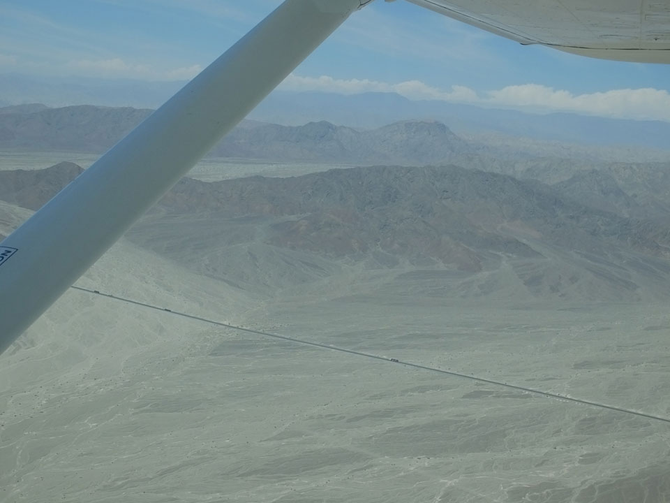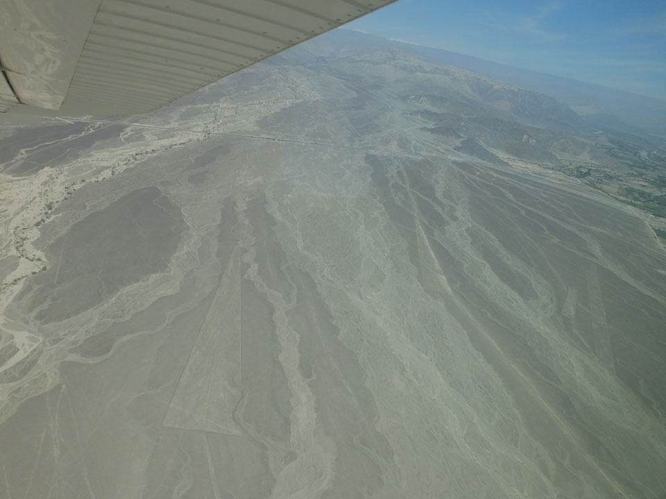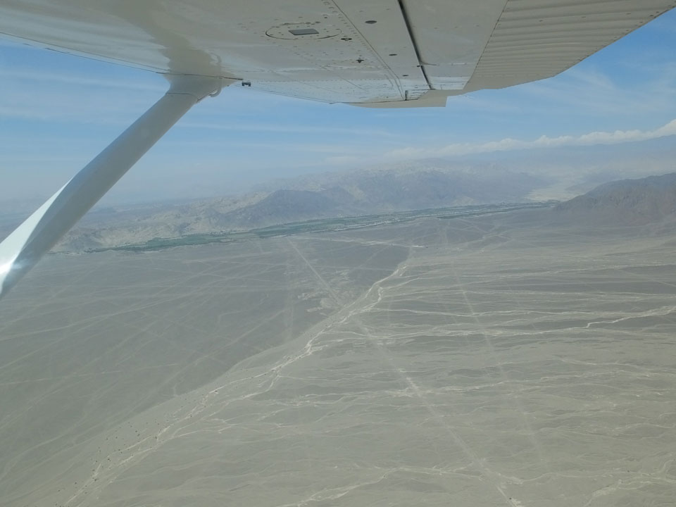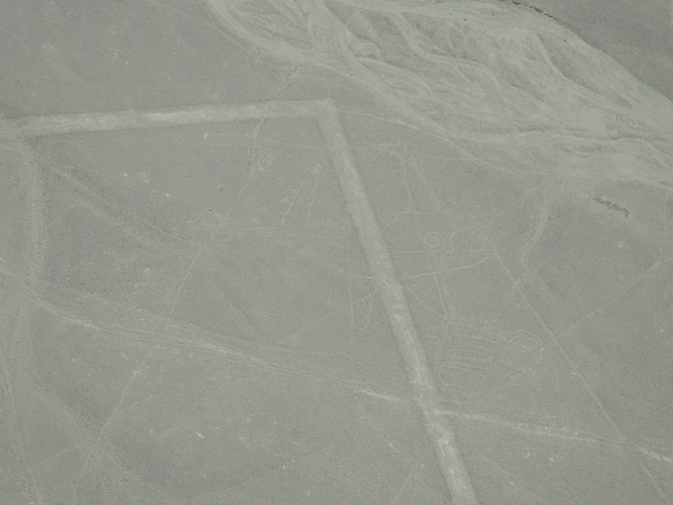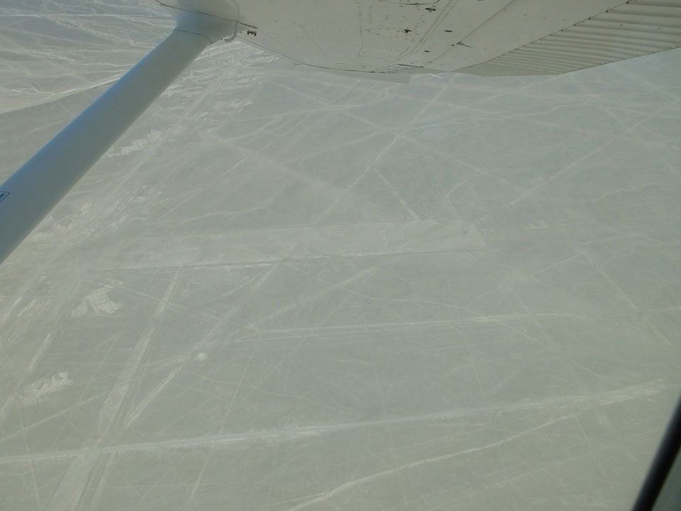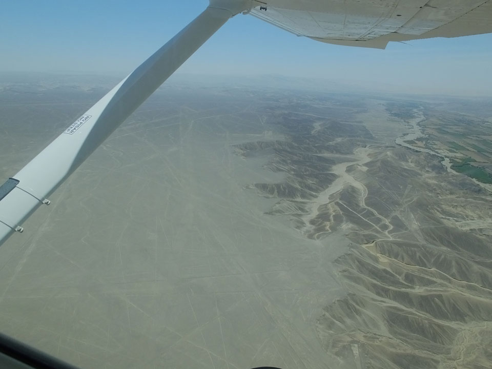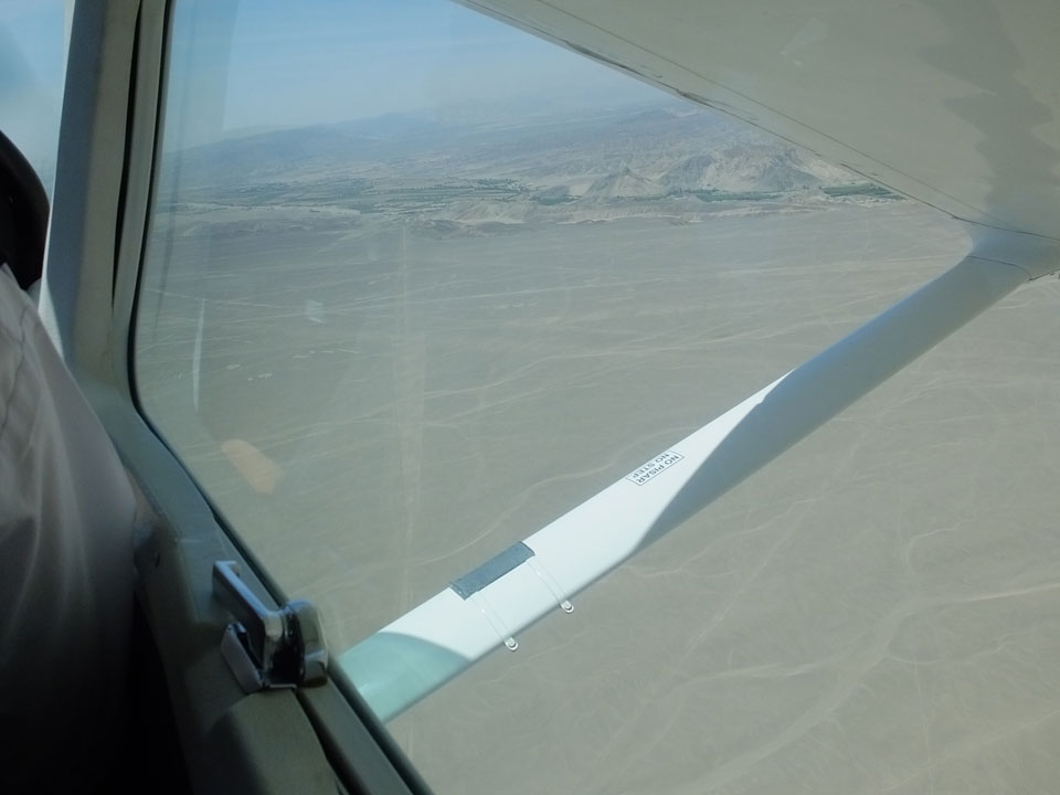 Mit einer 8 Personen Cessna ging’s also los. Das ist schon etwas anderes als mit ’nem Jet und auch bei Windstille wackelte es ab und zu ganz gut. Ein Pilot flog, der andere erklärte. Wir drehten Runden um die Geoglyphen. Von jeder Seite konnte man so alles gut sehen – erst rechts, danach nochmal links.