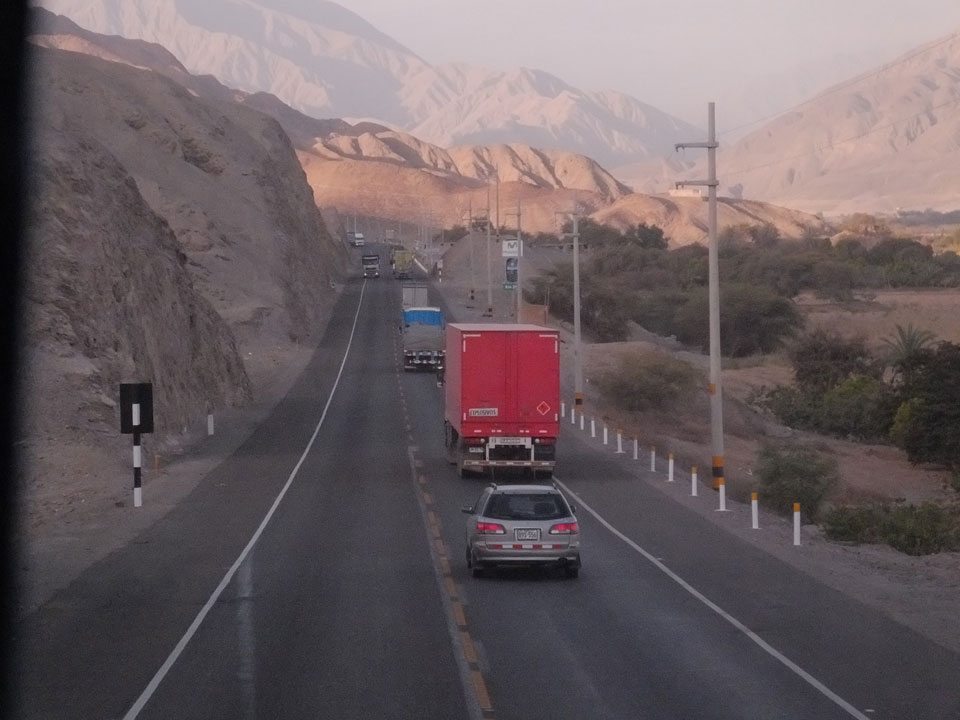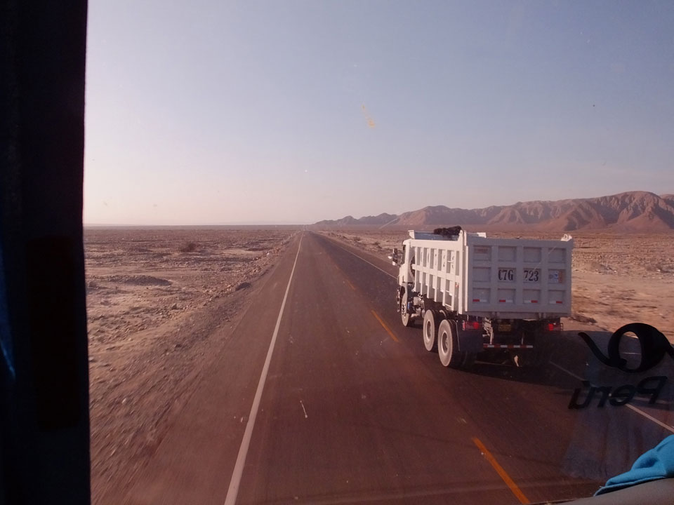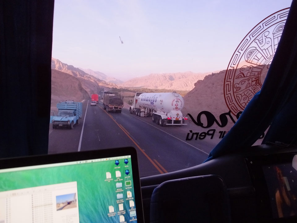 Im Bus nach Lima hatte ich den Platz 1 ganz vorne oben. Super Aussicht über die Weite der Wüste hier. Die Sonne ging unter, Filme liefen und nach Ica war der Bus auch voll. Es gab ein Abendessen und für mich etwas Schlaf. Der Bus sollte um 23:45 ankommen aber verspätete sich bis auf 0:20. Kein großes Problem.