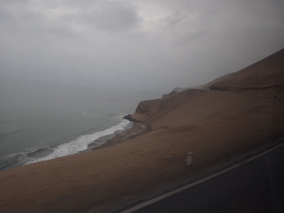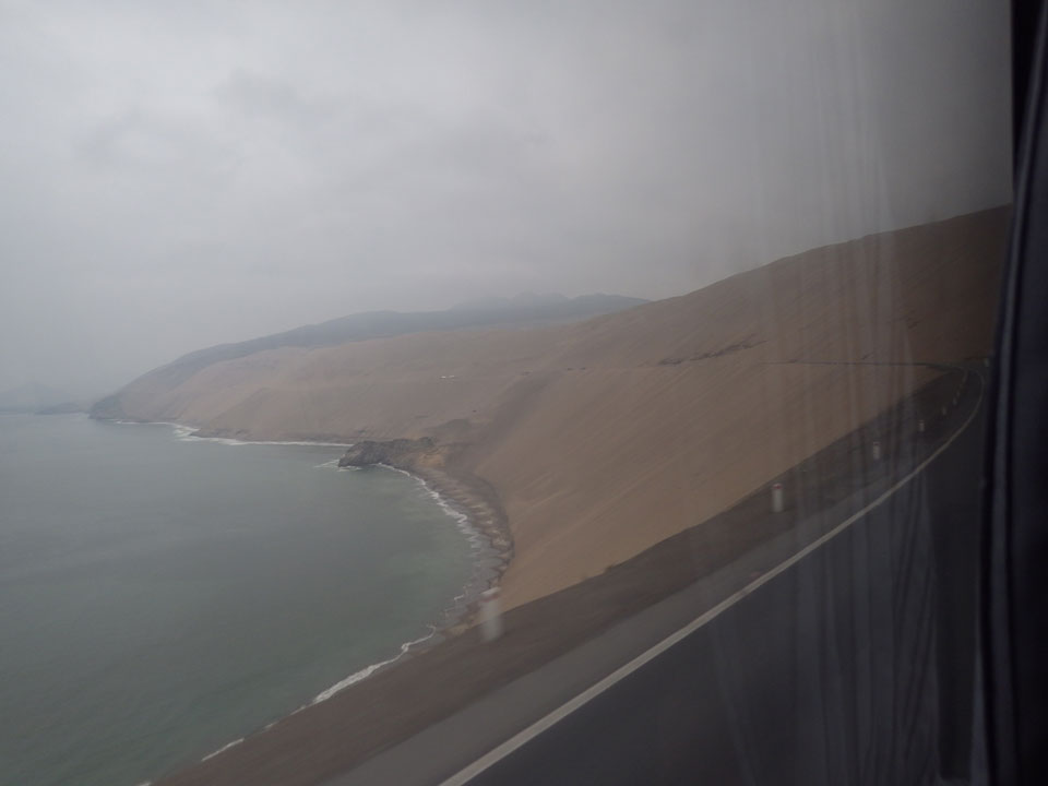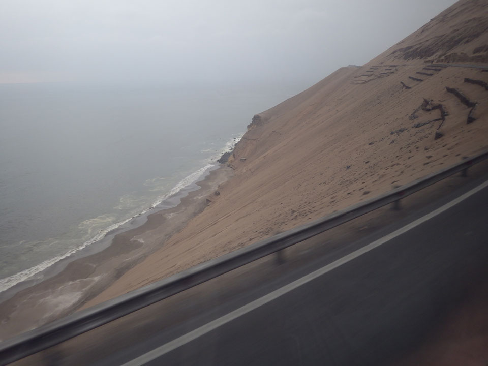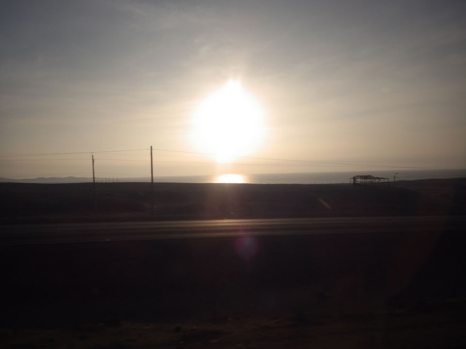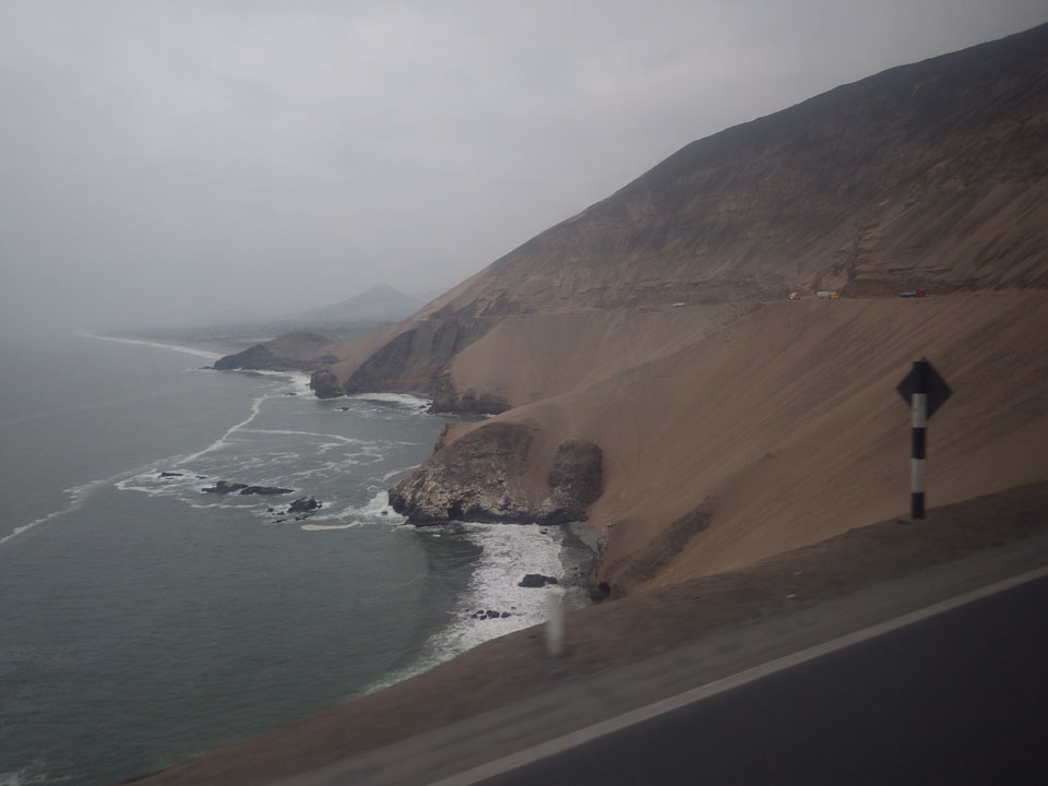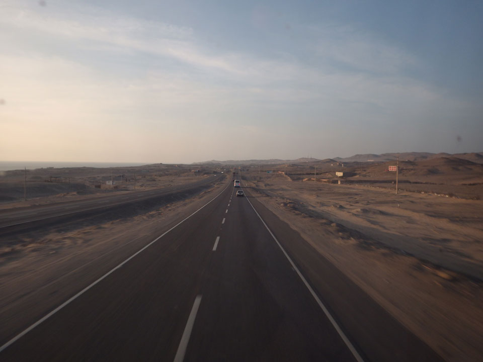 Peru ist erstaunlich trocken. Kaum ist man auf der Straße aus der Stadt gibt’s eigentlich nur Wüste. So extrem hatte ich das noch nicht gesehen. Am Meer entlang wächst fast nichts. Strände gibt’s auch nicht – alles ist schroff, steil und gelbbraun. Das Abendessen hatte ich mir als vegetarisch bestellt, was eine gute Wahl war. Es schmeckte indisch und ich war zufrieden. Schön müde schlief ich oft und gut. In Trujillo dann mit ca. 40′ Verspätung wurde ich aus den Träumen gerissen – 0:20. Fast der ganze Bus stieg aus, ich suchte mir ein Taxi und nach einigem Herumfragen fand der Fahrer auch die Chopin 505.