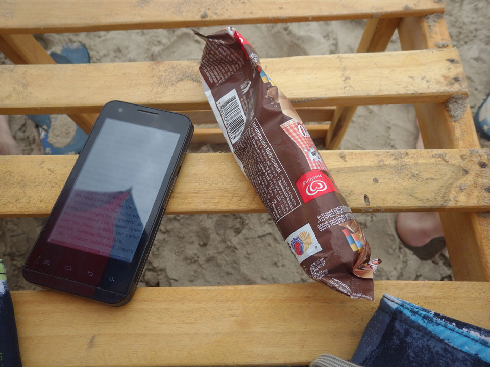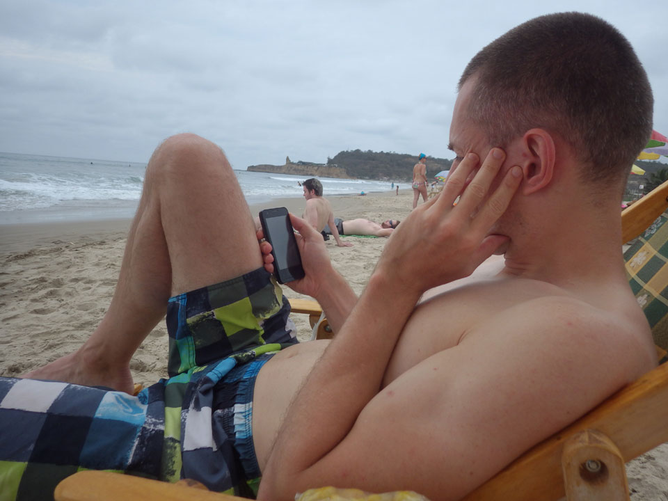 Wolkig heute. Frühstück in der Panaderia mit Bienen und Wespen als Unterhaltung. Danach an den Strand für nur $3 wegen wenig Sonne. Ich las „Snow Crash“ bis die Betterie alle war und bin inzwischen so weit, wie ich mich an frühere Versuche erinnern kann.