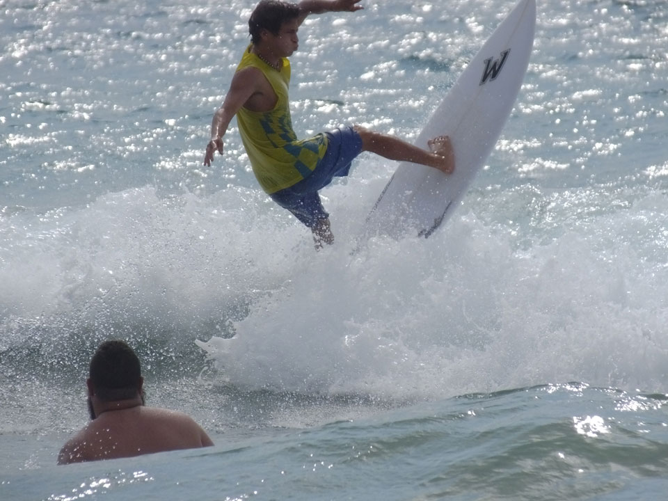 Ich knipste die Surfer, wenn mal Wellen da waren. Ein paar Leute aus dem Zimmer in Mancora traf ich auch. Redete etwas mit dem Schweizer, der an der Küste entlang will.
