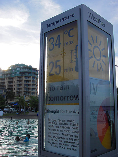 Getränke bei Woolworth, kurzes Internet und dann zur Lagoon, wobei die Sonne schon unterging. Im Wasser ist es immer super und Cairns gefällt mir inzwischen so gut, dass ich am liebsten noch ganz lange hier bleiben möchte.