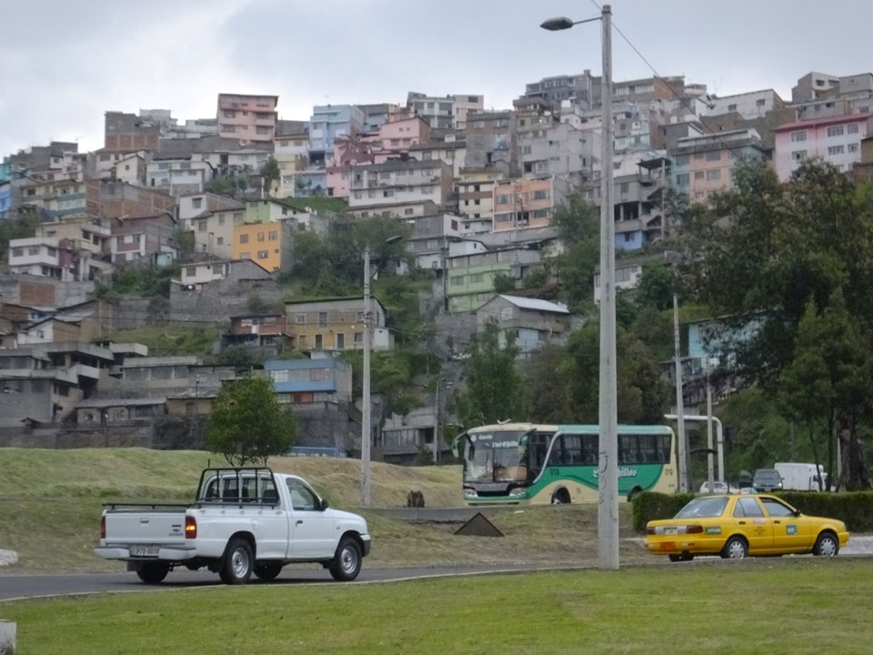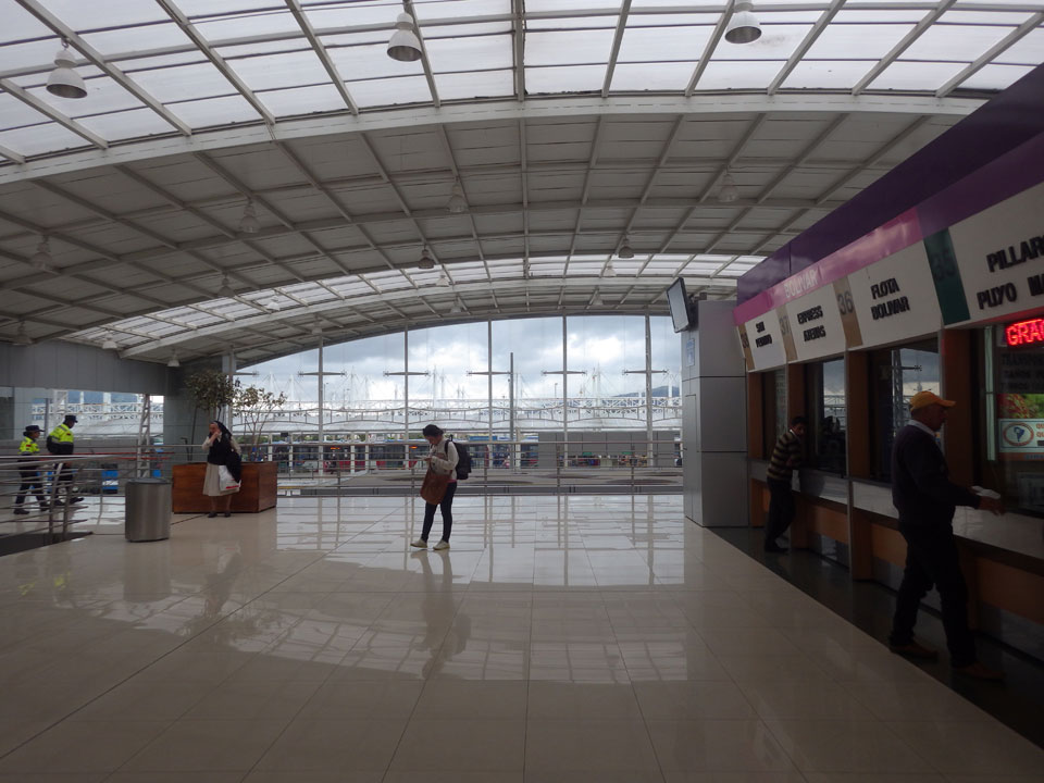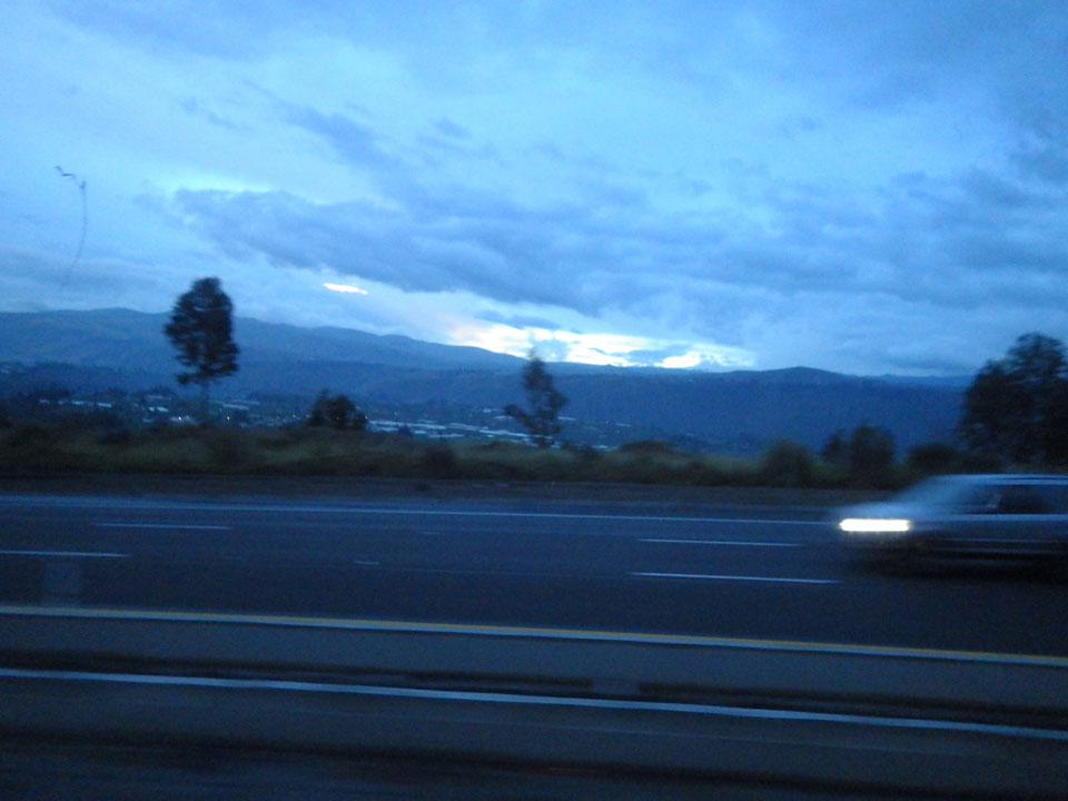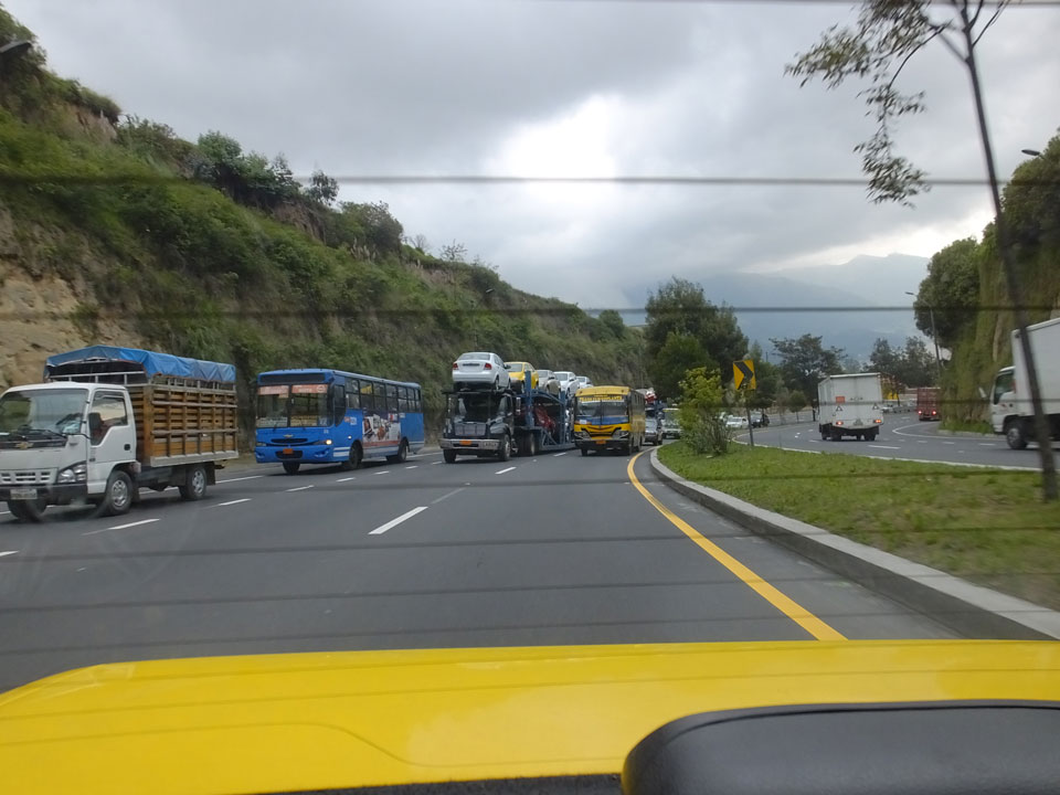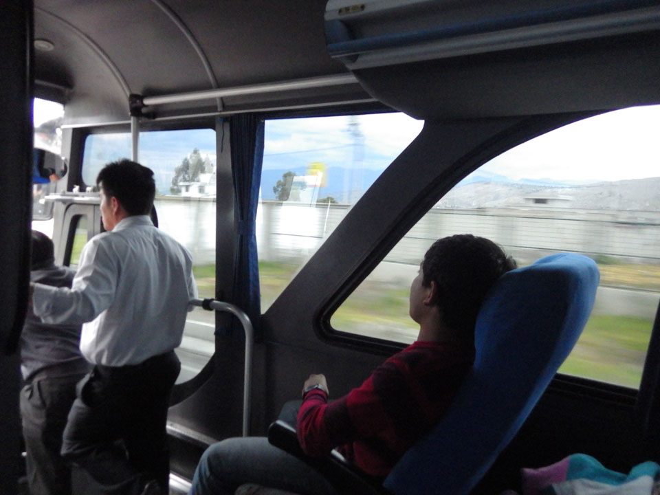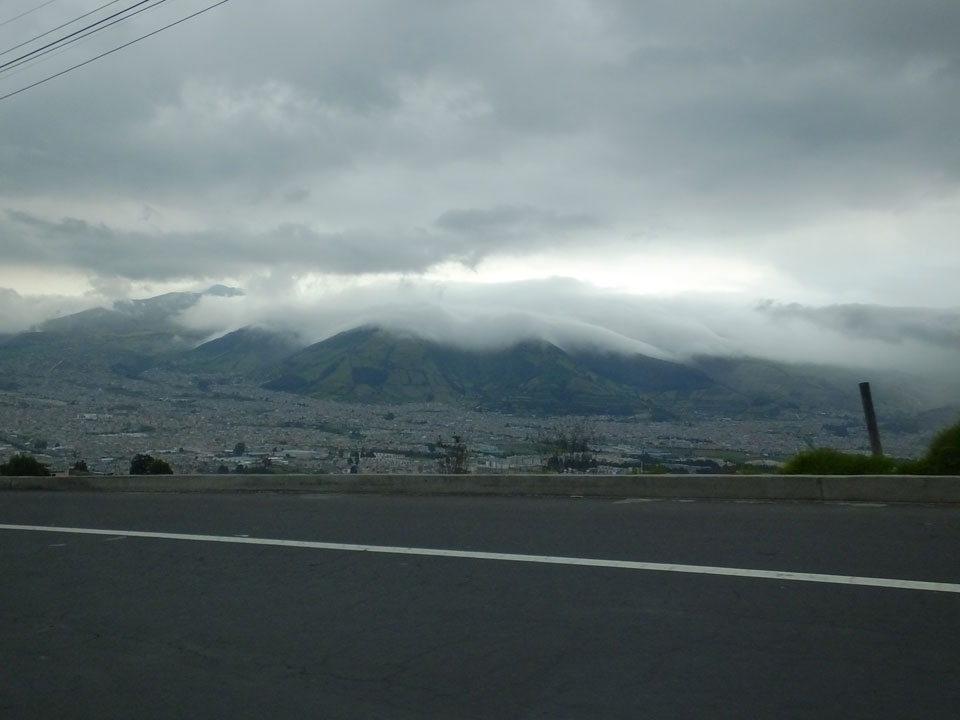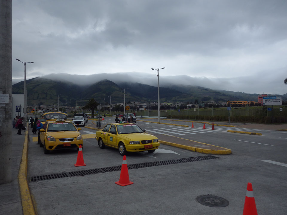 Ich holte Sachen und machte Frühstück. Jemand ist etwas angesäuert, kam dann aber mit nach Baños. Wir fuhren mit dem Taxi zum Terminal Terrestre, was ein ganz schönes Stück ist ($10). Dort dann wollten wir mit dem Express Baños Bus fahren aber nebenan gab’s nur noch Tickets. Für 2 insgsamt um die $8 mit den Terminalgebühren. Der Bus fuhr gerade ab, es war schon 16:00 – Abfahrzeit 15:50 – ruckizucki.