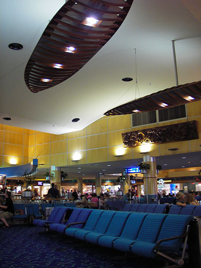 Große Erinnerungen hatte ich nicht an den internationalen Landeplatz. Nachdem ich aber wieder den Sushitrain im Wartebereich sah, war alles klar. Es hatte sich nichts erkennbar geändert. Ich holte mir einen Aussie Burger mit Café bei Hungry Jacks. Bis zum Flug dauerte es noch ewig. 10 Minuten Internet dank überflüssigem Kleingeld. Ich las etwas im Buch, das ich zu Weihnachten geschenkt bekam. Gefällt mir – Memories..