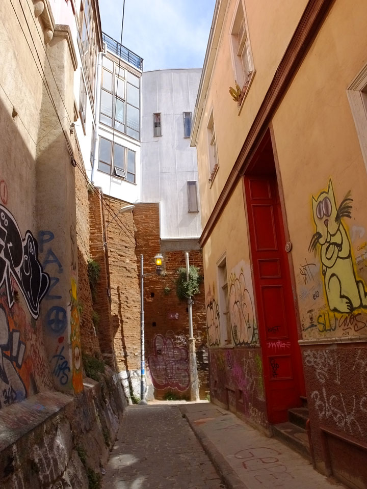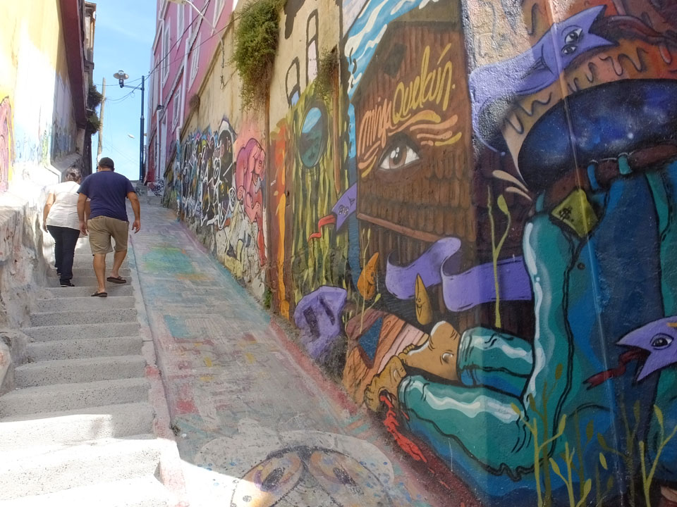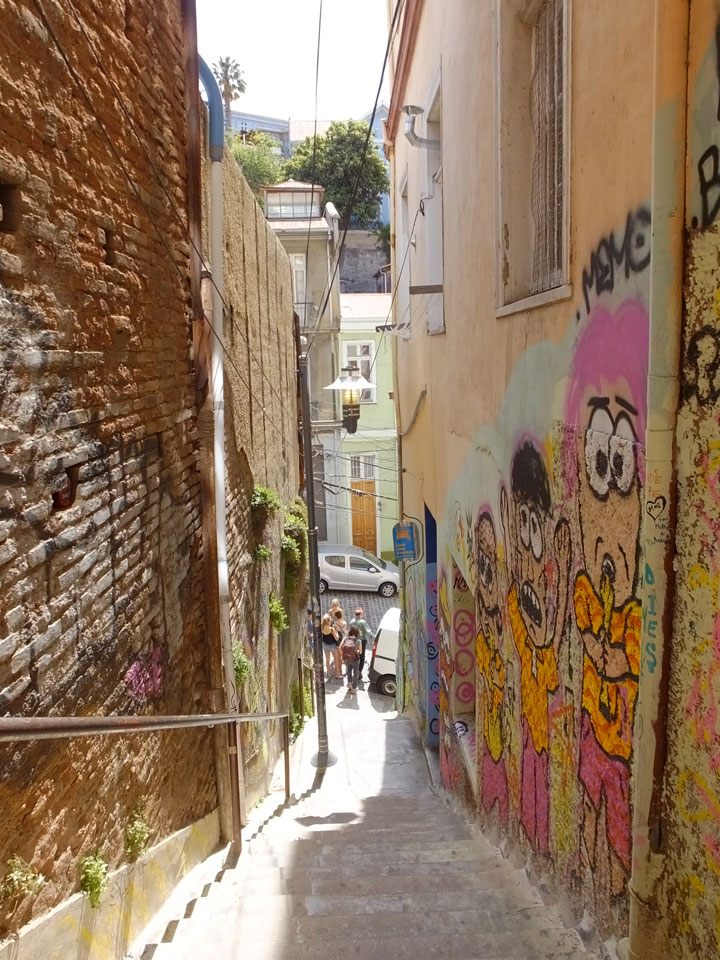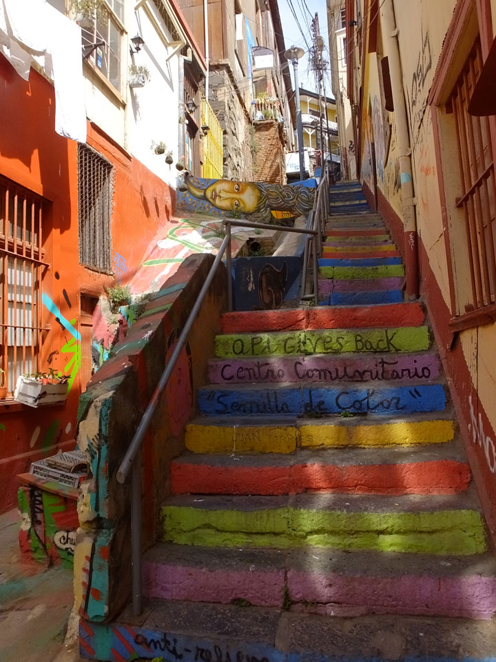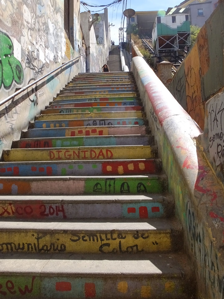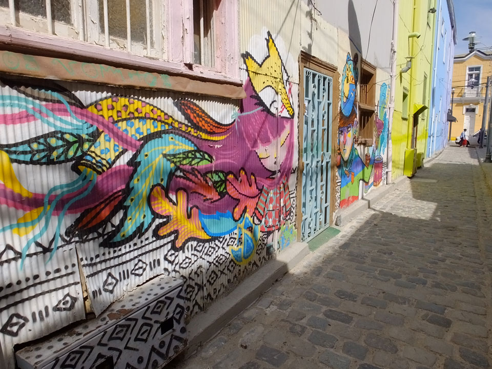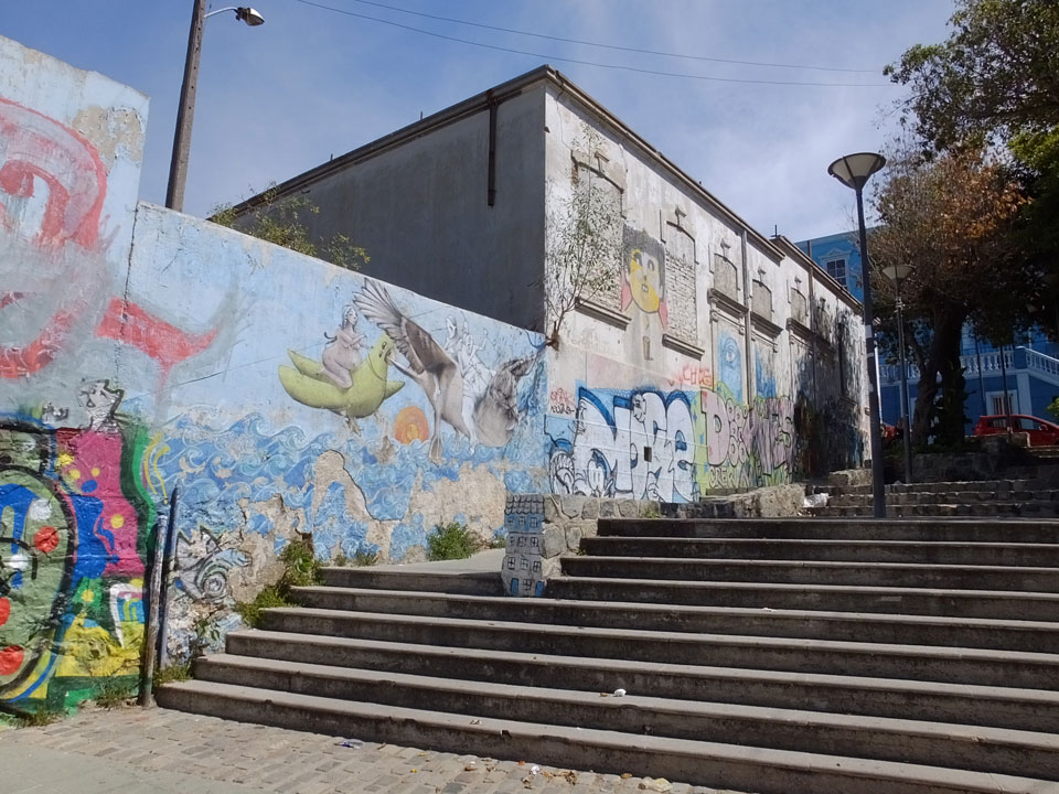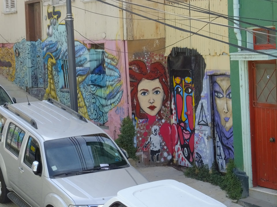 Der letzte Tag des Jahres und ich wollte heute Valparaiso sehen. Die Stadt ist bekannt für die Straßenkunst. Die meisten Häuser sind mit interessanten Graffitis und Malereien verziert.