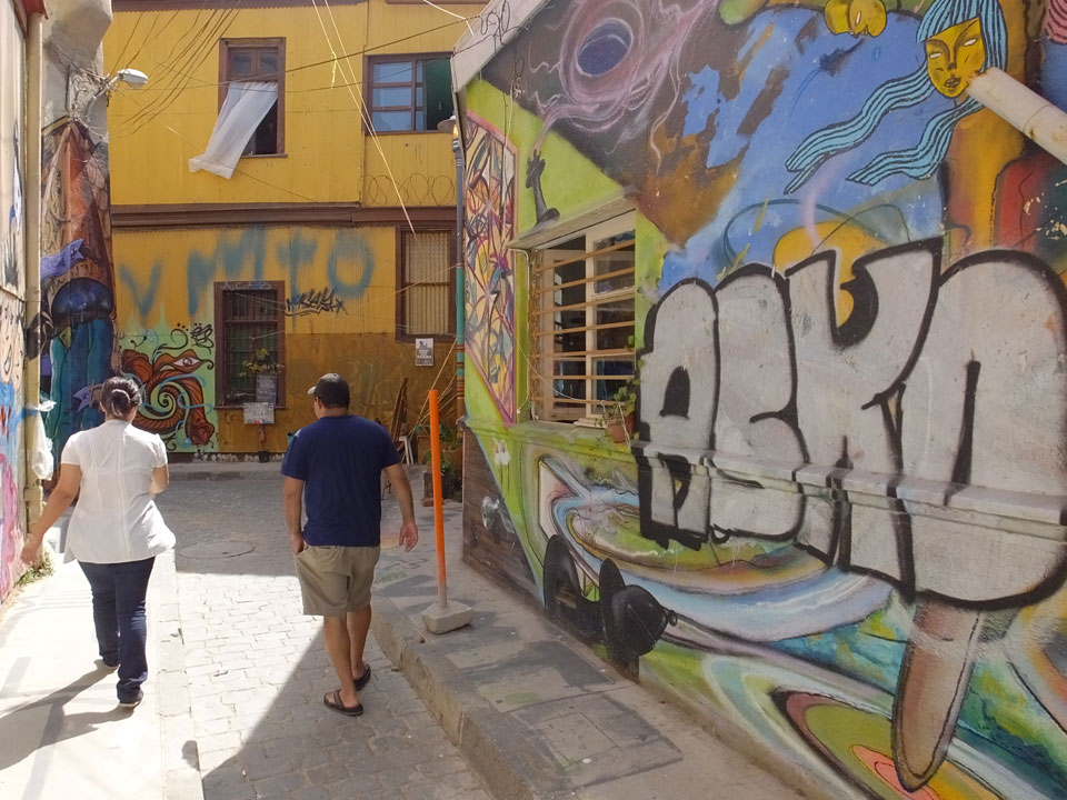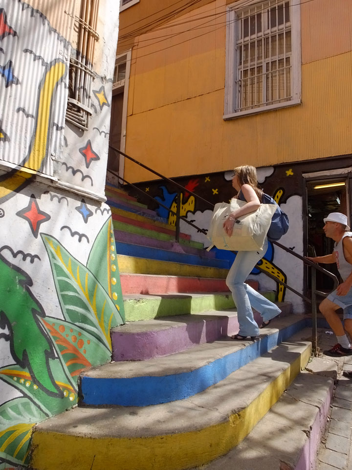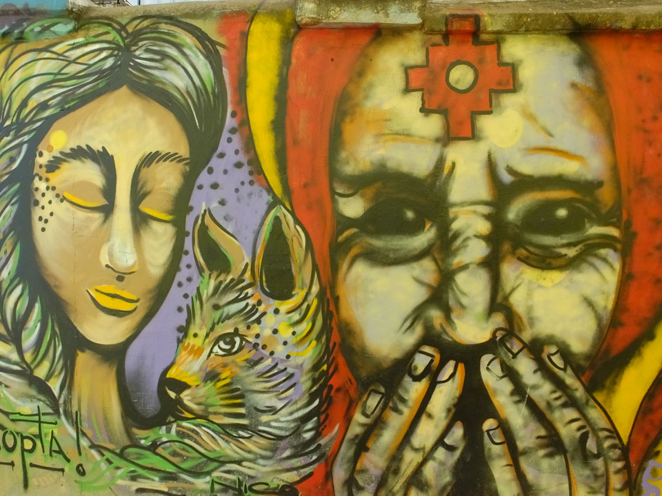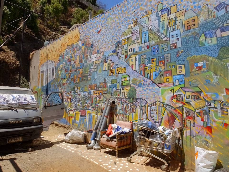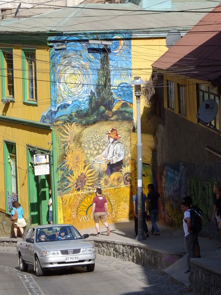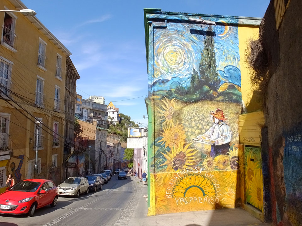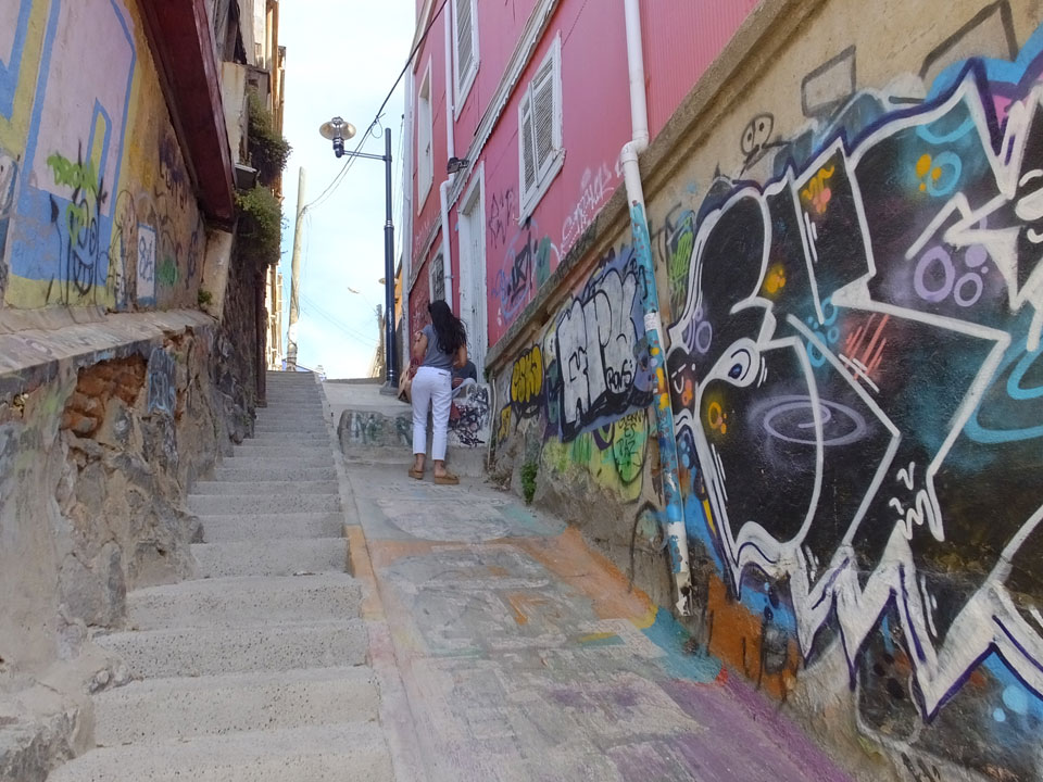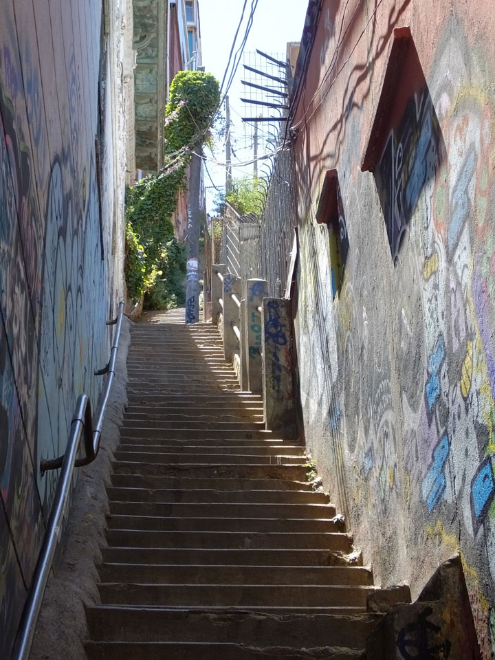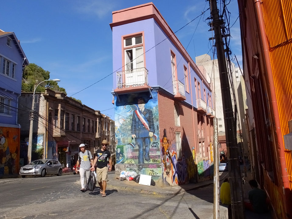 Der letzte Tag des Jahres und ich wollte heute Valparaiso sehen. Die Stadt ist bekannt für die Straßenkunst. Die meisten Häuser sind mit interessanten Graffitis und Malereien verziert.
