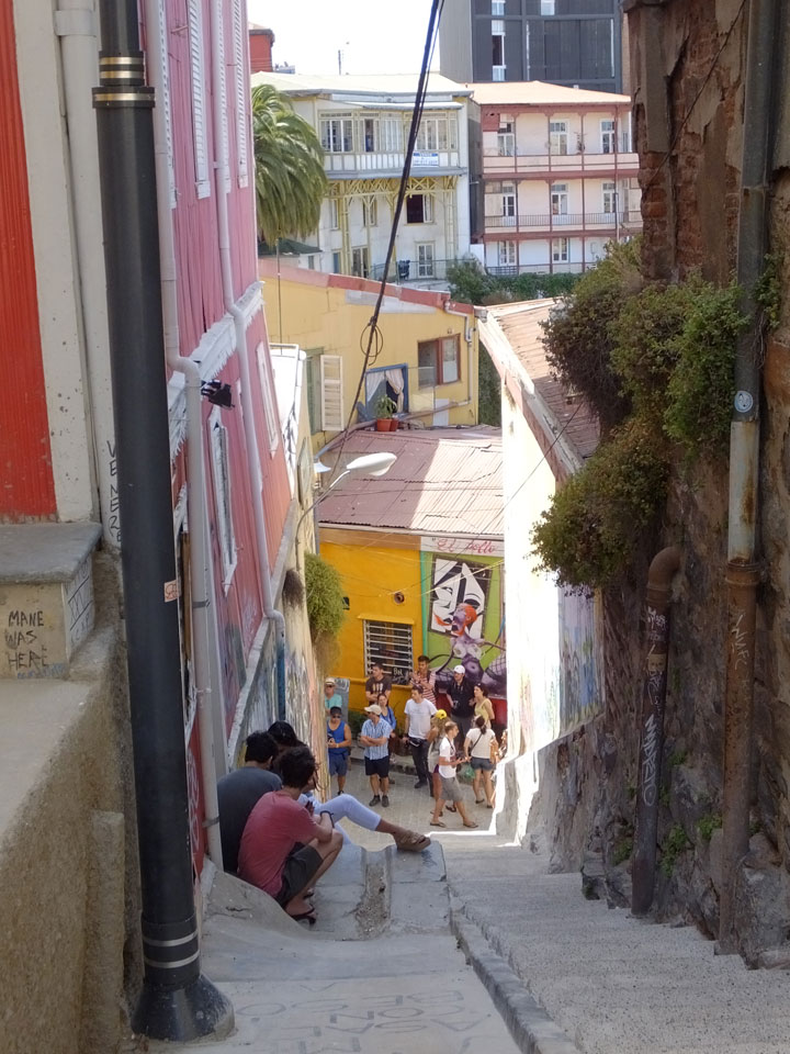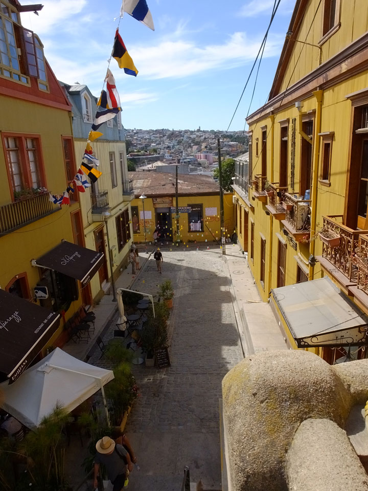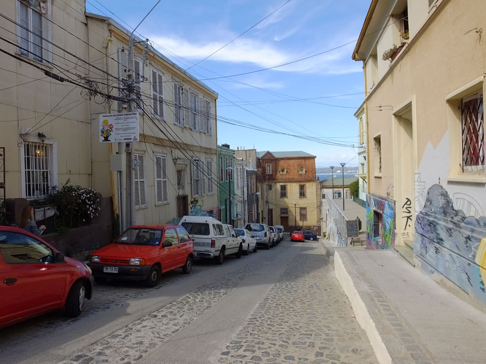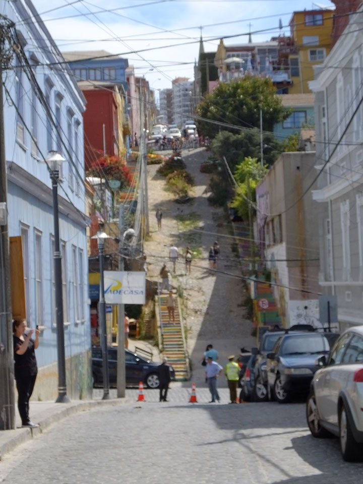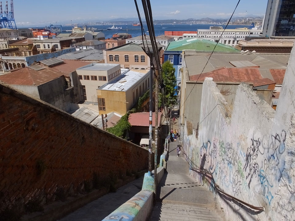 Ich ging also wieder runter und ging dann wieder hoch in eine andere Gegend mit genialen Bildern. Ein paar Walking Tours waren dort auch und ich schoss viele Bilder. Die Aussichtspunkte über der Stadt boten ebenfalls eine tolle Sicht. Ich genoss den Tag mit Herumwandern im hügeligen Valparaiso.
