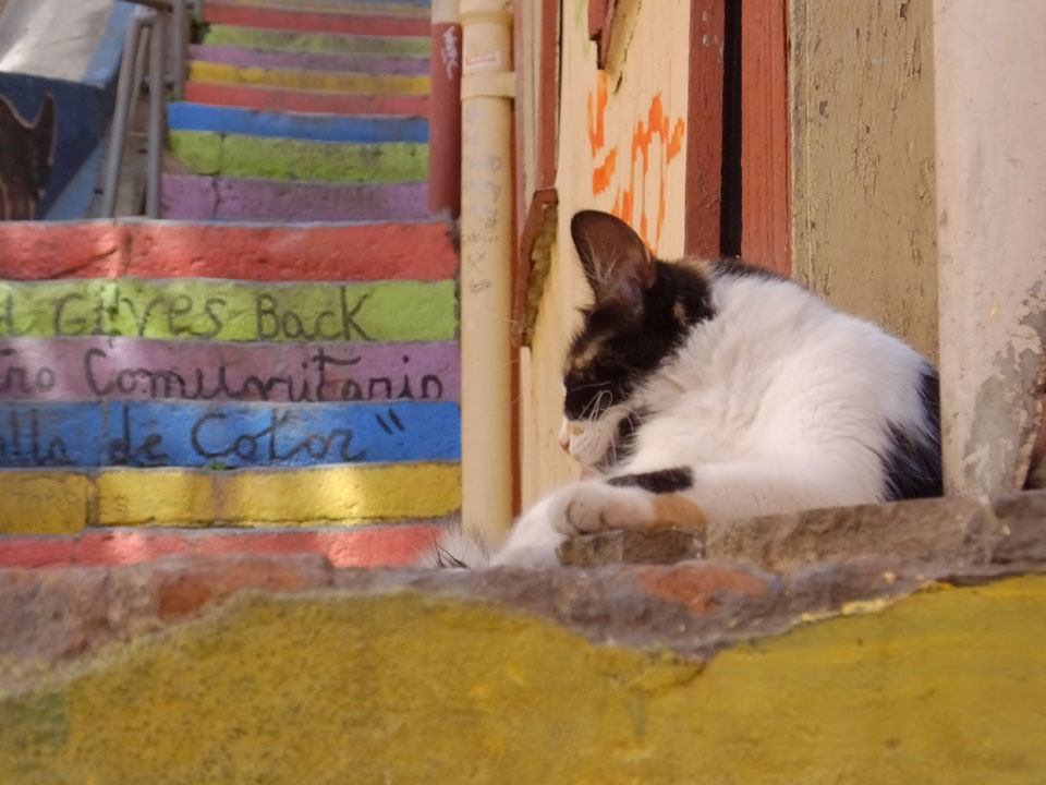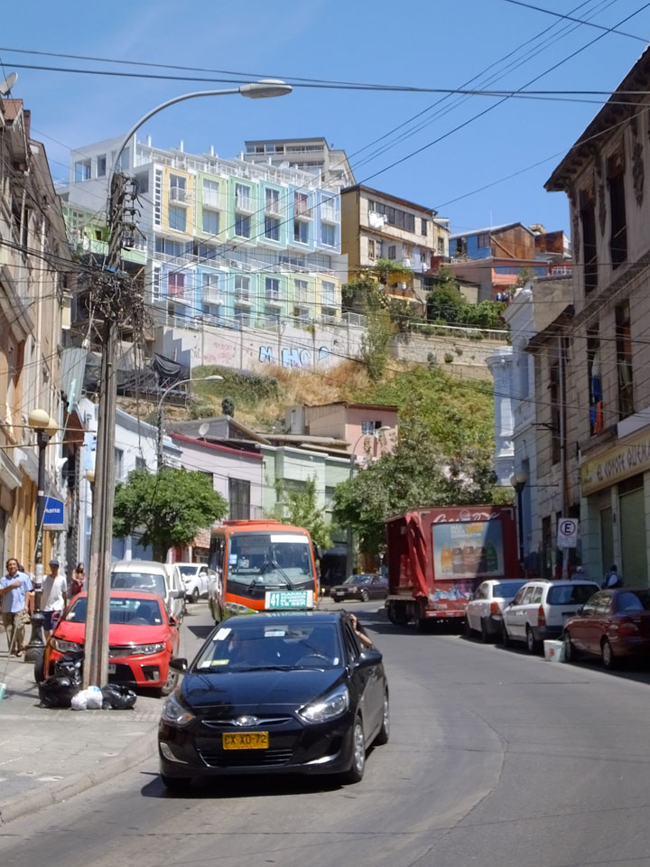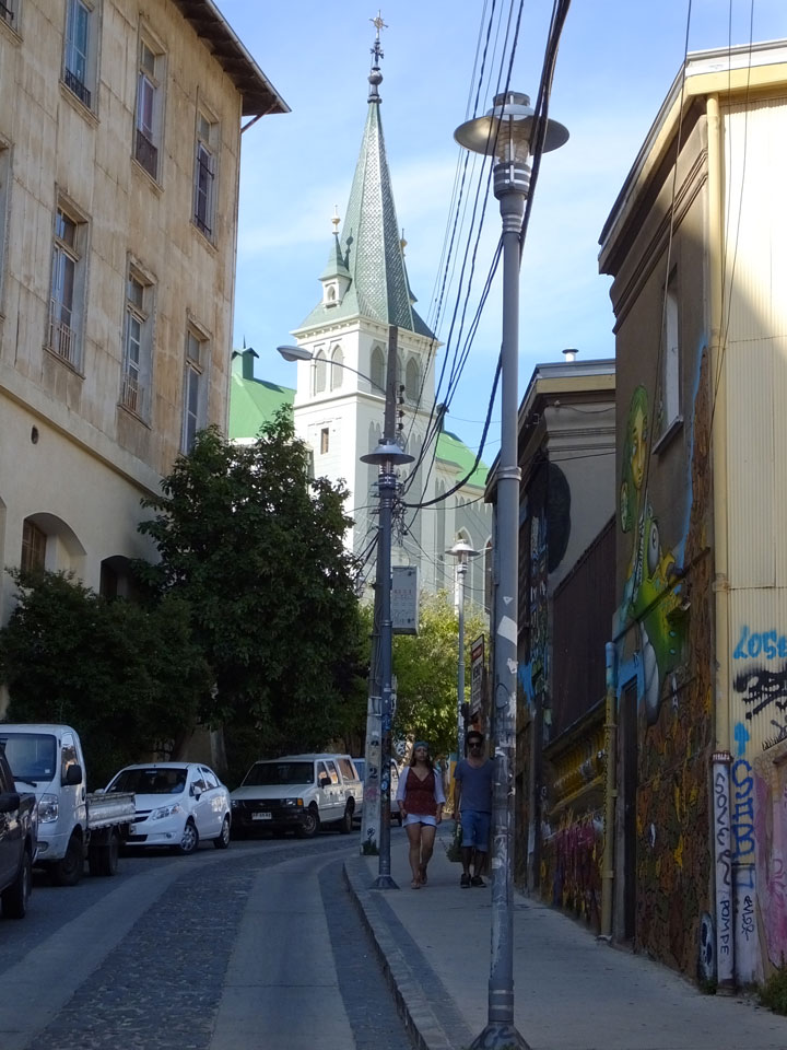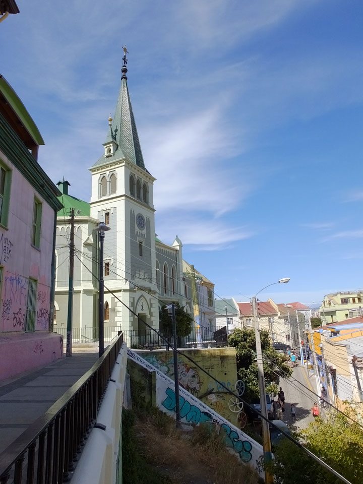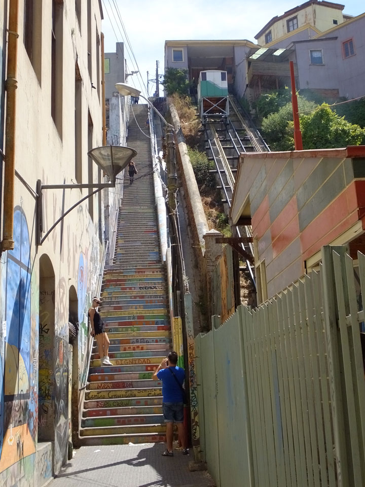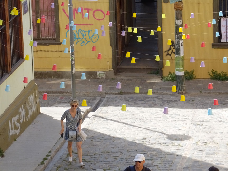Ich ging also wieder runter und ging dann wieder hoch in eine andere Gegend mit genialen Bildern. Ein paar Walking Tours waren dort auch und ich schoss viele Bilder. Die Aussichtspunkte über der Stadt boten ebenfalls eine tolle Sicht. Ich genoss den Tag mit Herumwandern im hügeligen Valparaiso.