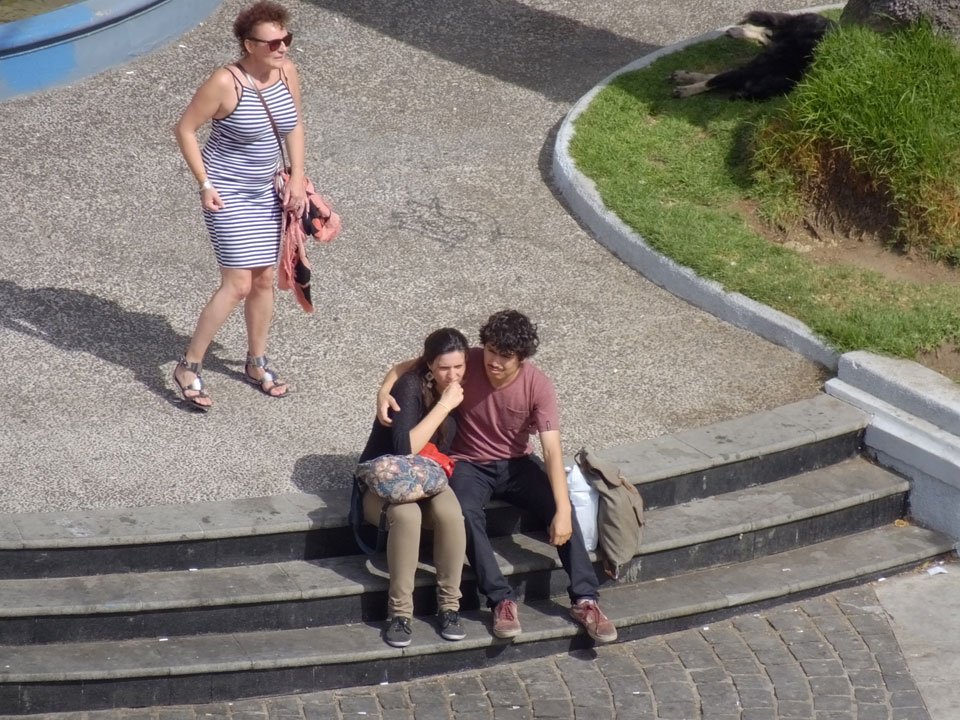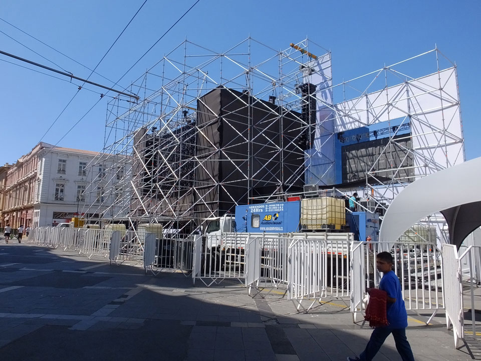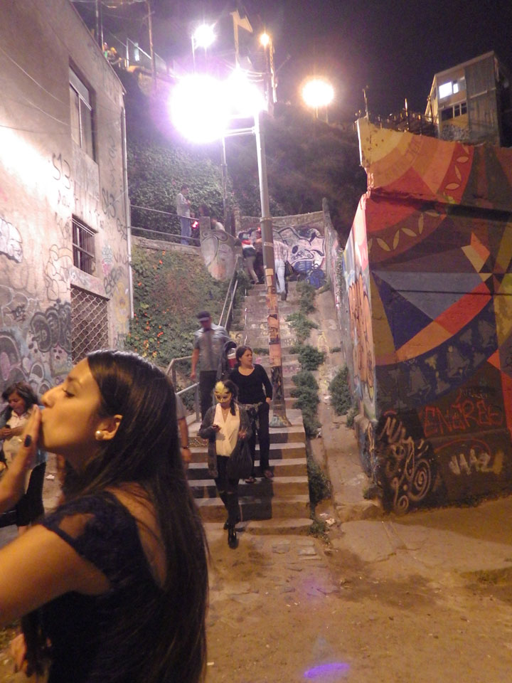 Am Plaza wurde die Bühne und Soundtechnik getestet. Ich lief weiter und stieg dann viele Stufen hoch. Jetzt wusste ich nicht genau, welchen Bezirk ich hatte. Mit meine Fuji ging ich herum aber ein paar Locals sprachen dann ob ich Spanisch spreche. Sie winkten mich zurück, ich sollte nicht weiter gehen. Im Hostel bei der Markierung der Karte wurde mir gesagt, dass ich einen bestimmten Bezirk meiden sollte. Dort sei es gefährlich. Da war ich wohl gerade und ich fand’s echt nett, dass mich die Einwohner selbst warnten. Unten am Funikular sagte das Gleiche dann auch ein älterer Herr zwei Touristen mit Camera. Hier und nicht weiter.