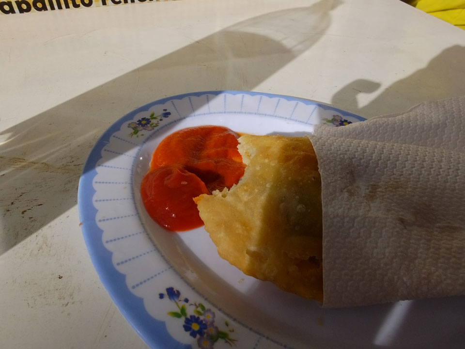 Zuerst holte ich mir was zu Essen. Eine Arepa schmeckte gut. Dann lief ich weiter, traf die Malteser, wobei einer ’ne Flasche Vodka für heute Abend teilen wollte. Die Straßen hier waren schon merklich leerer, viele Geschäfte geschlossen.