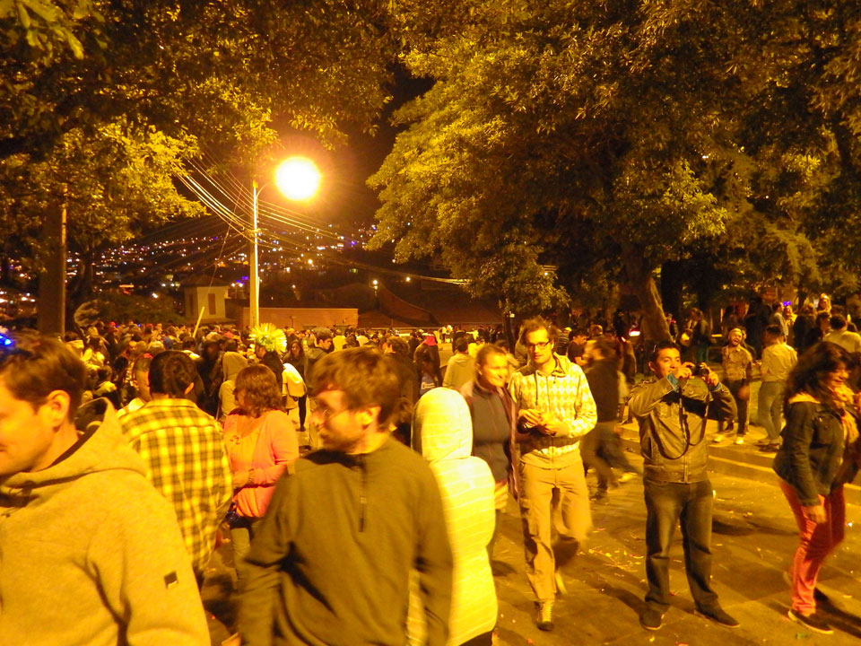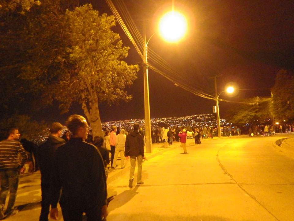 Langsam wurde es dunkel, ich aß und nahm Empanadas mit und kam zurück in’s Hostel. Etwas chillen und Bilder sichern. Nach ’ner Dusche verpasste ich und die Malteser das Abendessen mit Cocktail. Vielleicht auch ganz gut so. Wir starteten mit dem Vodka und 3 Deutsche waren auch da. Wir wurden lustiger, holten eine Französin ab und gingen dann hoch auf einen Aussichtspunkt für das Feuerwerk.