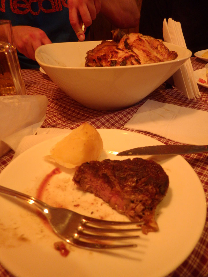 Bellavista sah auf den ersten Blick schon cool aus viele Restaurants und Bars. Das Hostel mittendrin in einer ruhigeren Straße. Ich zahlte die restlichen USD 51 per Visa und hatte ein kleines 4Bett Zimmer. Da schliefen 2 Deutsche und ein Österreicher drin. Mit den Deutschen ging ich dann fix aus. Zuerst auf eine Parillada (12K für 2) und dann noch auf Pisco und Mojito (je 2.500 CLP). Mein Cash war inzwischen alle aber ich wollte eben noch das richtige Nightlife erleben.