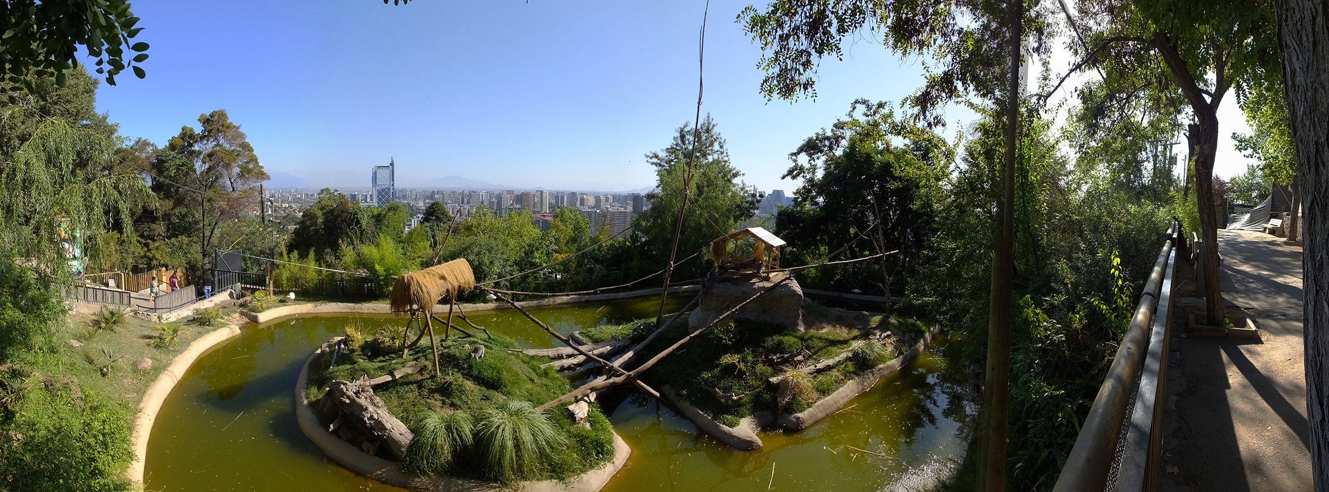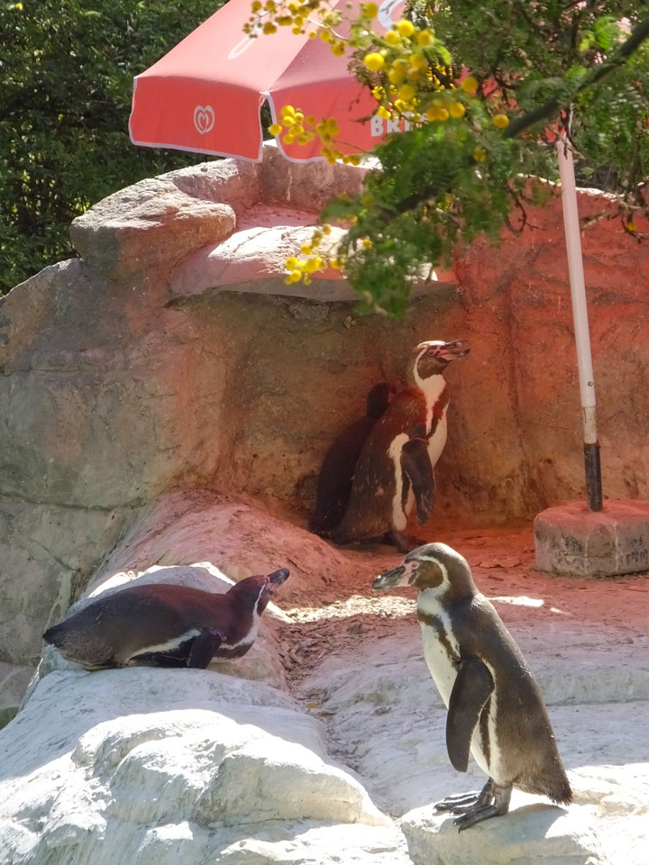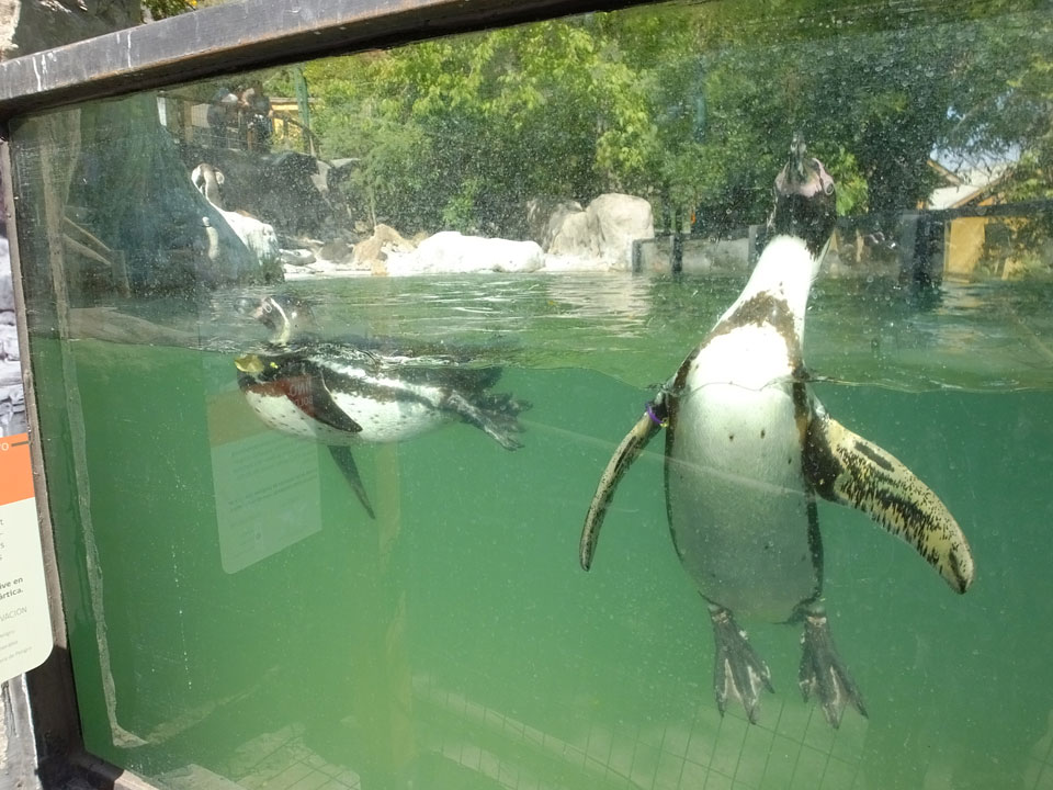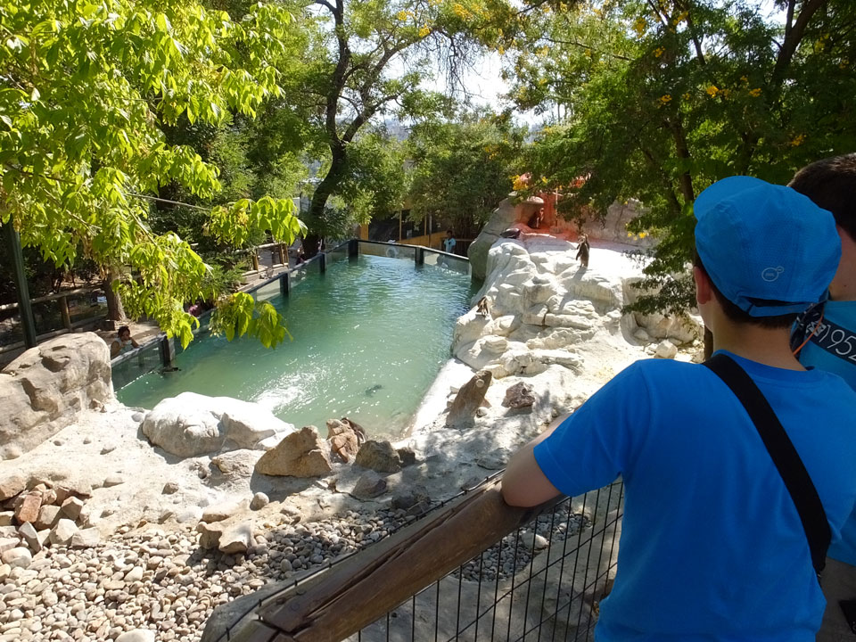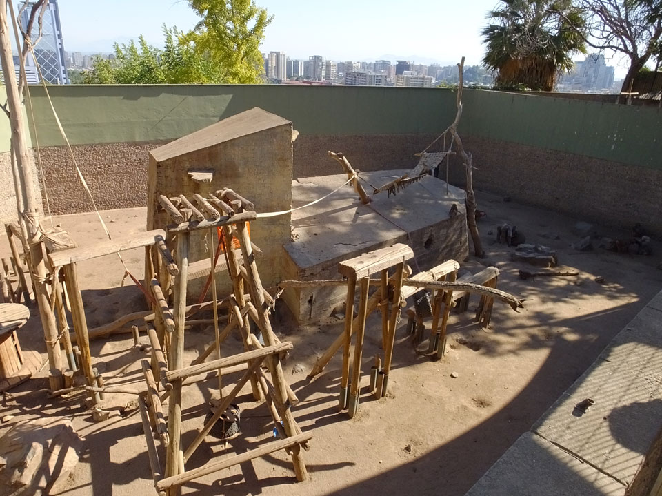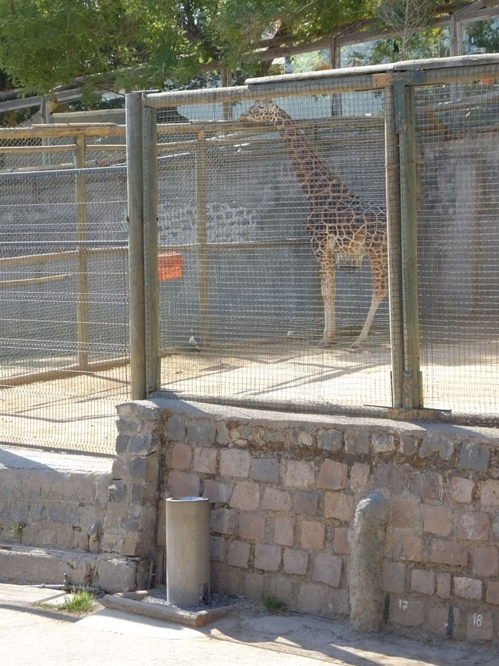 Die Wäsche ging in die Maschine und ich wollte zum Cerro San Cristobal. Der Hügel liegt gleich in der Nähe. ich suchte nach ’nem Aufstieg aber fand den Zoo. Erst überlegte ich, ging dann doch rein (CLP 3.000). Dort war’s dann auch ganz nett. Viele kleine und große Tiere. Endlich sah ich mal wieder eine Giraffe. Elefanten, Affen und sogar ein paar Enten und Schwäne aus Europe hatte man eingesammelt. Die Pinguine schwammen in der Hitze wild herum, ansonsten hatten sich viele Tiere in ihre schattigen Höllen verzogen.