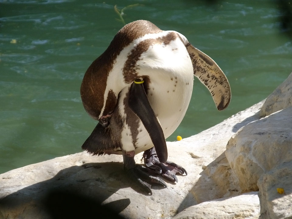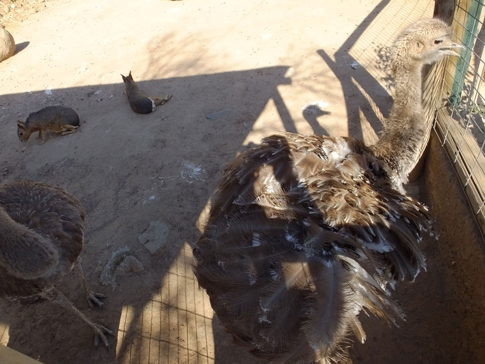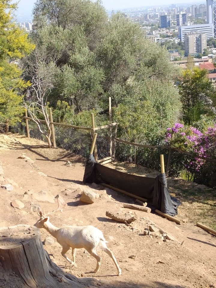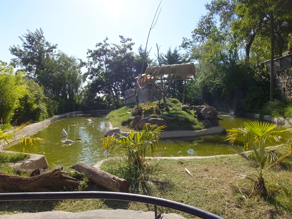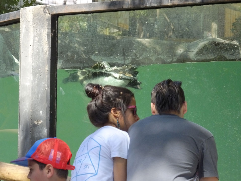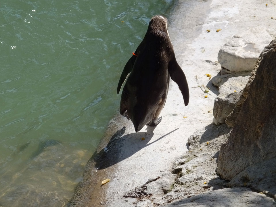 Die Wäsche ging in die Maschine und ich wollte zum Cerro San Cristobal. Der Hügel liegt gleich in der Nähe. ich suchte nach ’nem Aufstieg aber fand den Zoo. Erst überlegte ich, ging dann doch rein (CLP 3.000). Dort war’s dann auch ganz nett. Viele kleine und große Tiere. Endlich sah ich mal wieder eine Giraffe. Elefanten, Affen und sogar ein paar Enten und Schwäne aus Europe hatte man eingesammelt. Die Pinguine schwammen in der Hitze wild herum, ansonsten hatten sich viele Tiere in ihre schattigen Höllen verzogen.