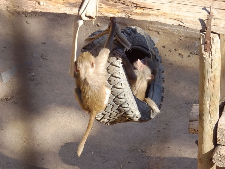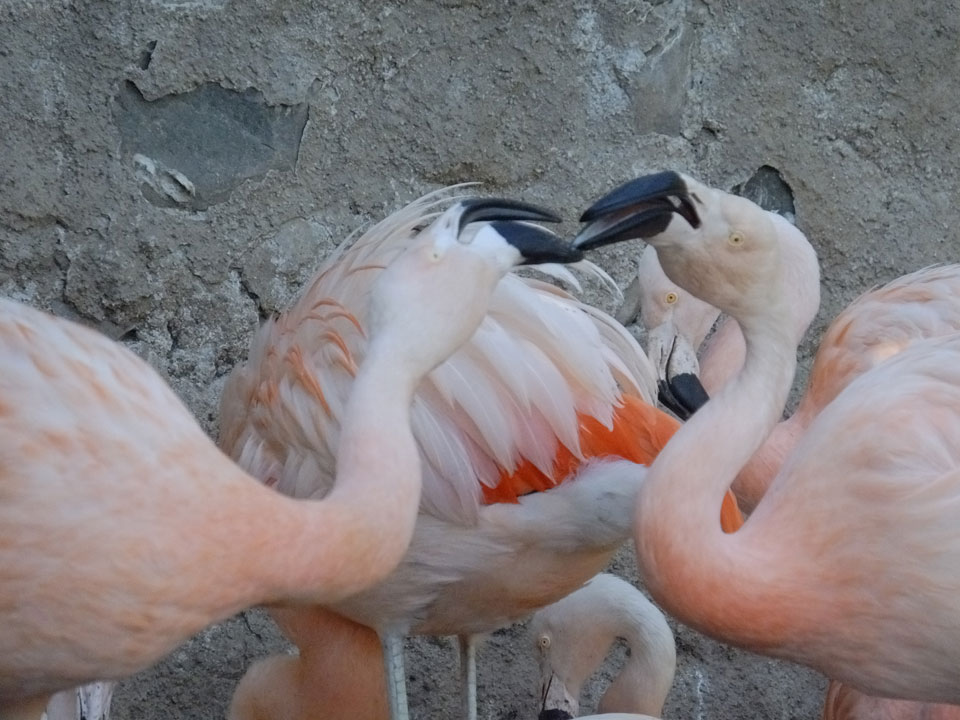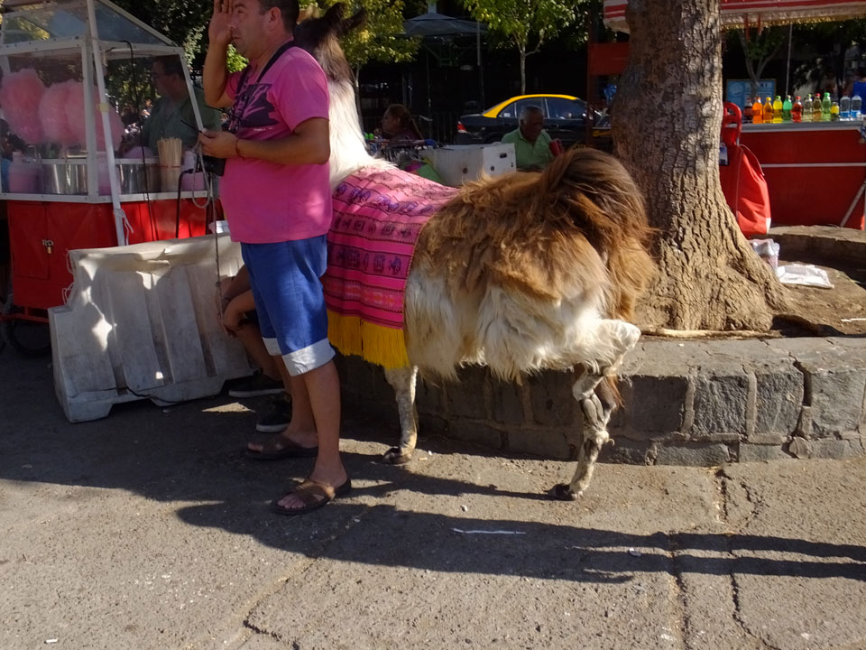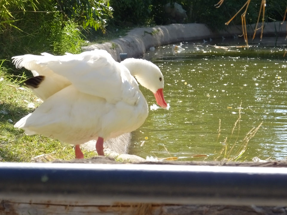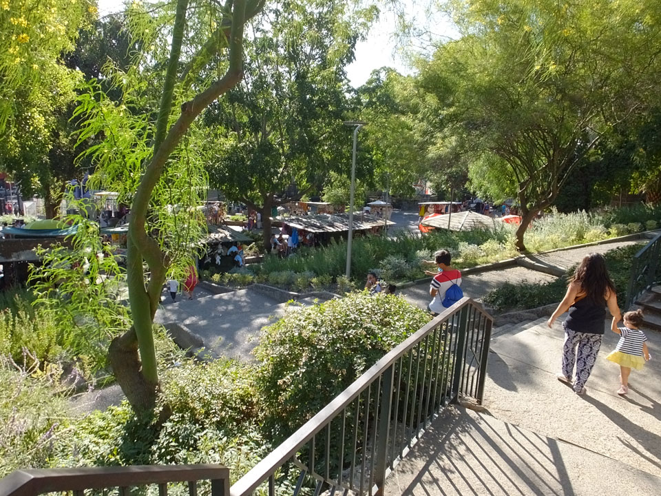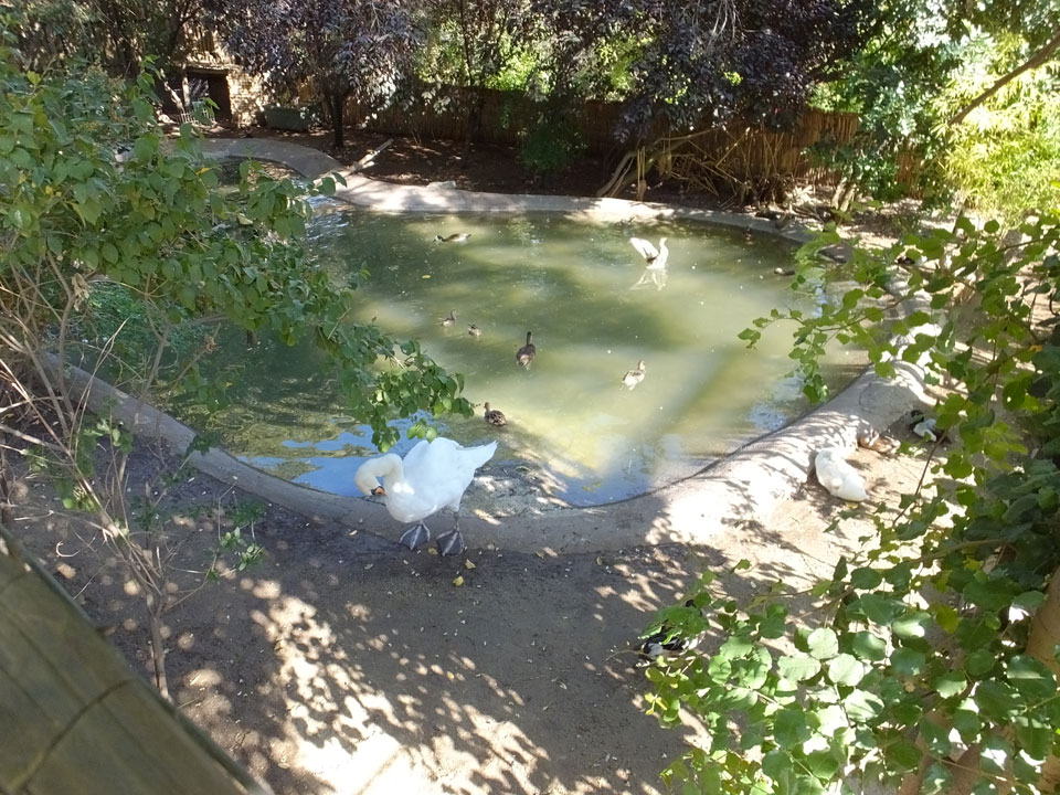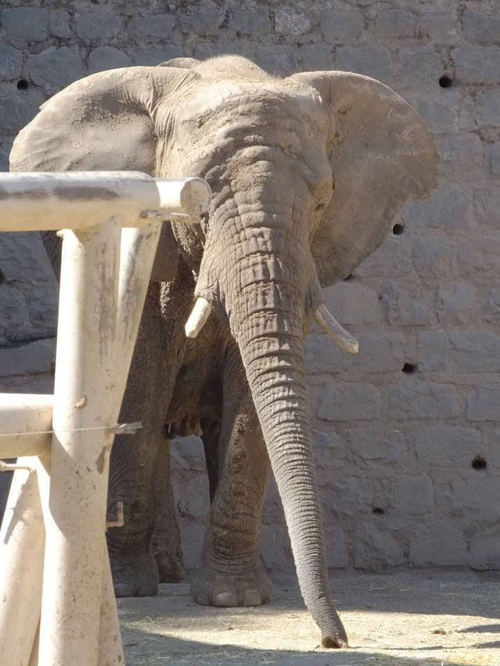 Die Wäsche ging in die Maschine und ich wollte zum Cerro San Cristobal. Der Hügel liegt gleich in der Nähe. ich suchte nach ’nem Aufstieg aber fand den Zoo. Erst überlegte ich, ging dann doch rein (CLP 3.000). Dort war’s dann auch ganz nett. Viele kleine und große Tiere. Endlich sah ich mal wieder eine Giraffe. Elefanten, Affen und sogar ein paar Enten und Schwäne aus Europe hatte man eingesammelt. Die Pinguine schwammen in der Hitze wild herum, ansonsten hatten sich viele Tiere in ihre schattigen Höllen verzogen.