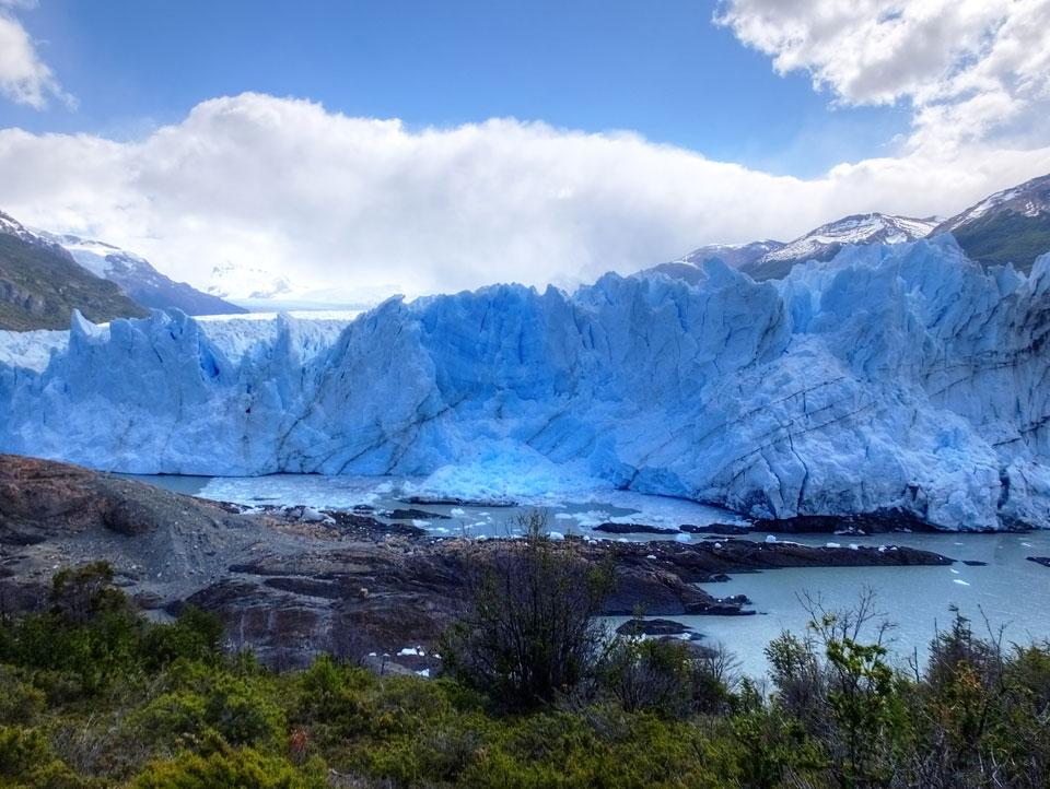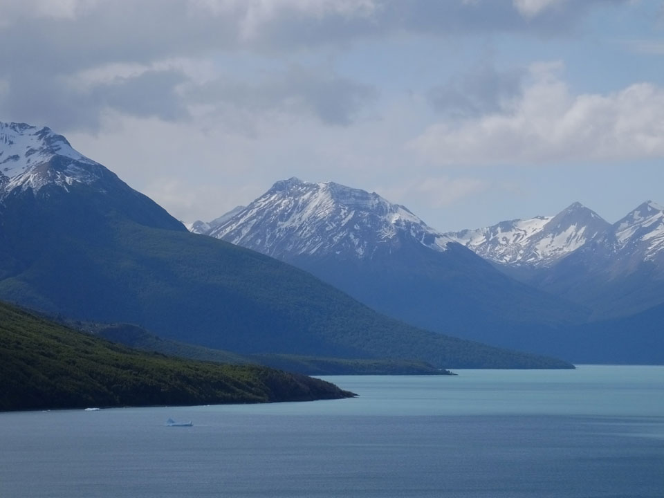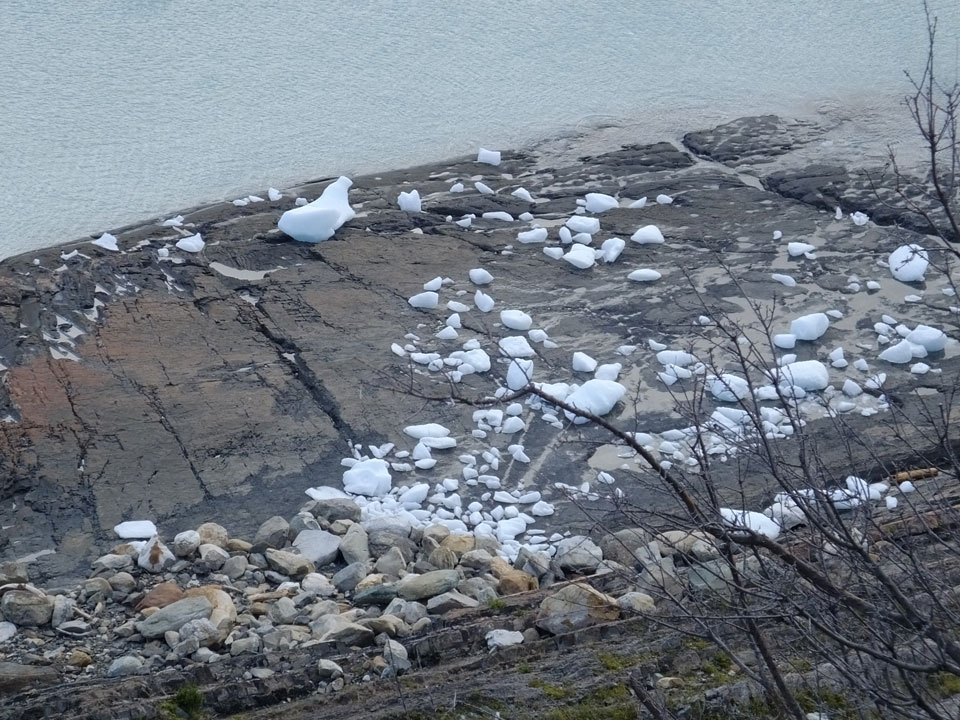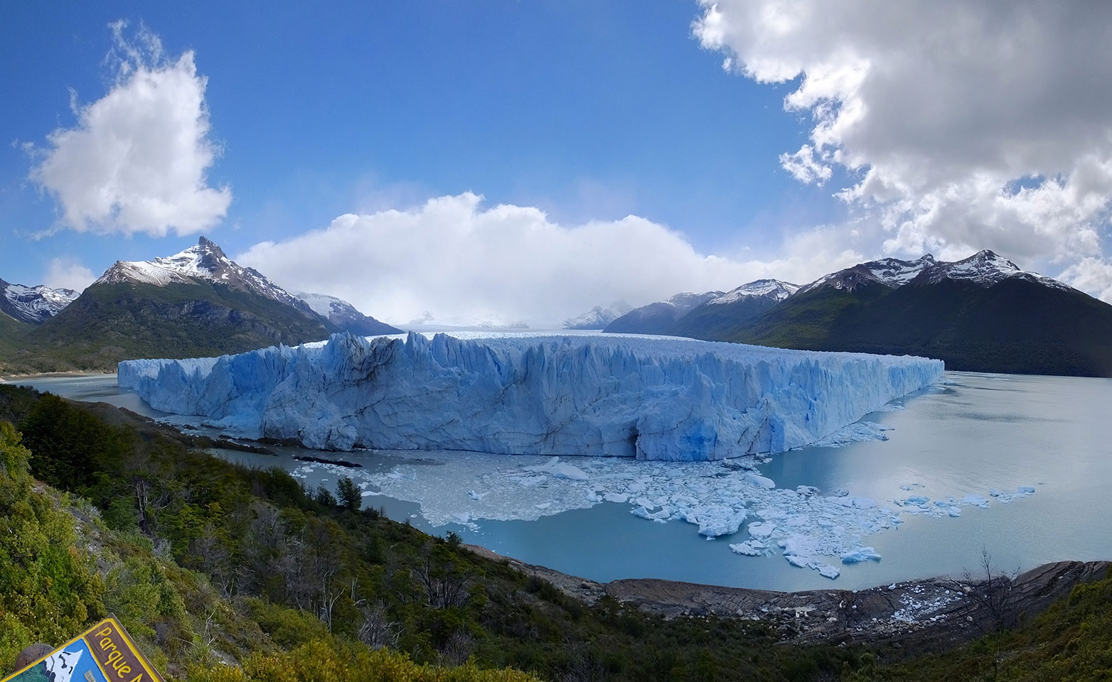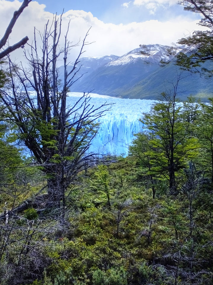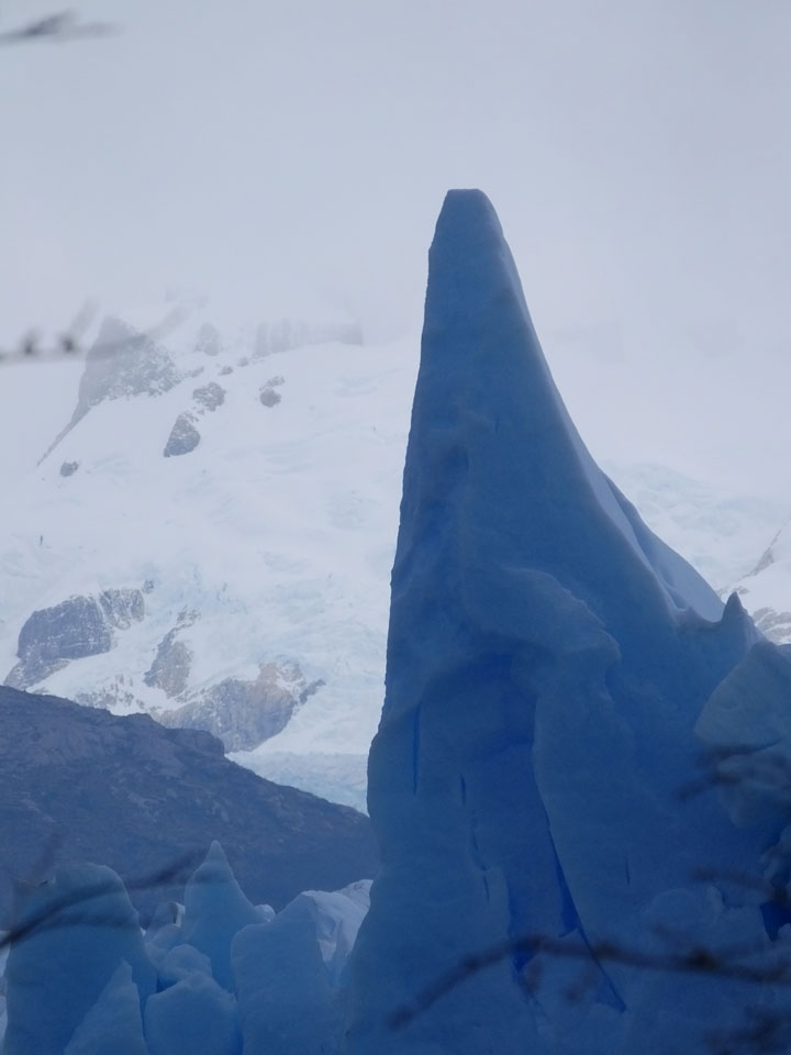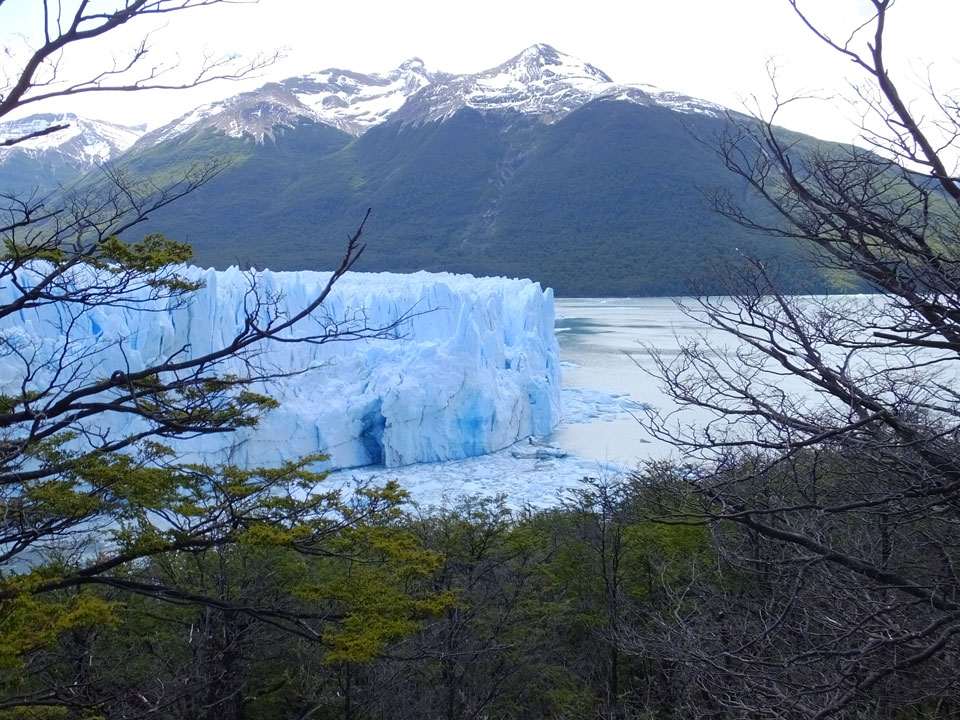 Dann 13:30 war das alles irgendwie geklärt und ich schwang mich runter zum Busbahnhof für den Start zum Perito Moreno Ausflug. Viele Israelis und Franzosen, ein Platz auf der linken Seite, wie empfohlen. Entlang am Lago Argentino ging’s zum Gletscher-Park. Da auch nochmal 215 ARS Eintritt. Wie gesagt: 1 zu 10 zum EUR nach offiziellem Kurs – ich bekomme hier nur 1 zu 11 zum Dollar aber das macht alles eben um die 30% günstiger.