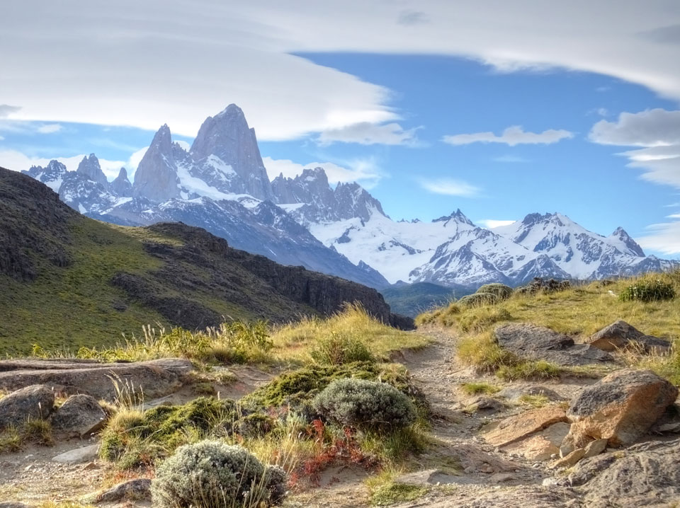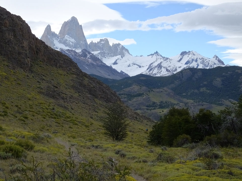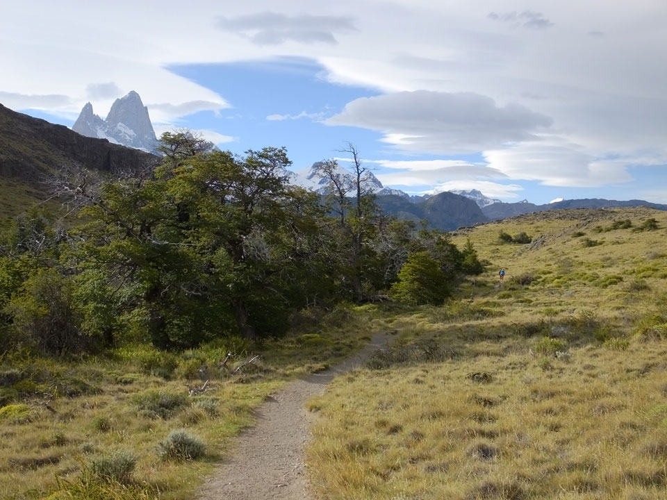 El Chalten ist eine kaum 30 Jahre alte Stadt. Als wird dort ankamen, wurden wir von einer Park-rangerin etwas aufgeklärt. Kein Müll, welche Treks, usw.. Der Blick auf den Fitz Roy war jetzt schon fantastisch! Der Ort ist echt genial gelegen und das perfekte Wetter heute brachte mich in Hochstimmung.